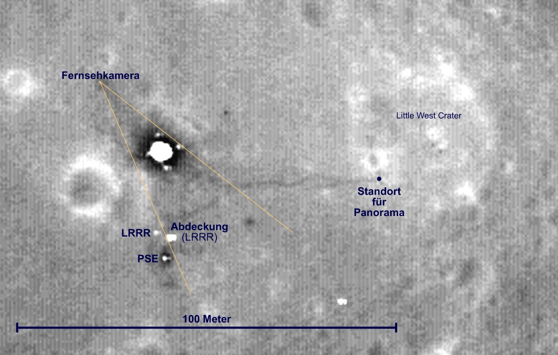 LMLunar Module aus auf der 7:30-Uhr-Position befinde und das auf dem Foto hier (AS11-40-5931) ist genau diese Position. Daher meine ich bei sicher die Panorama-Bildserie, die mit AS11-40-5930 beginnt und bei AS11-40-5941 endet.
