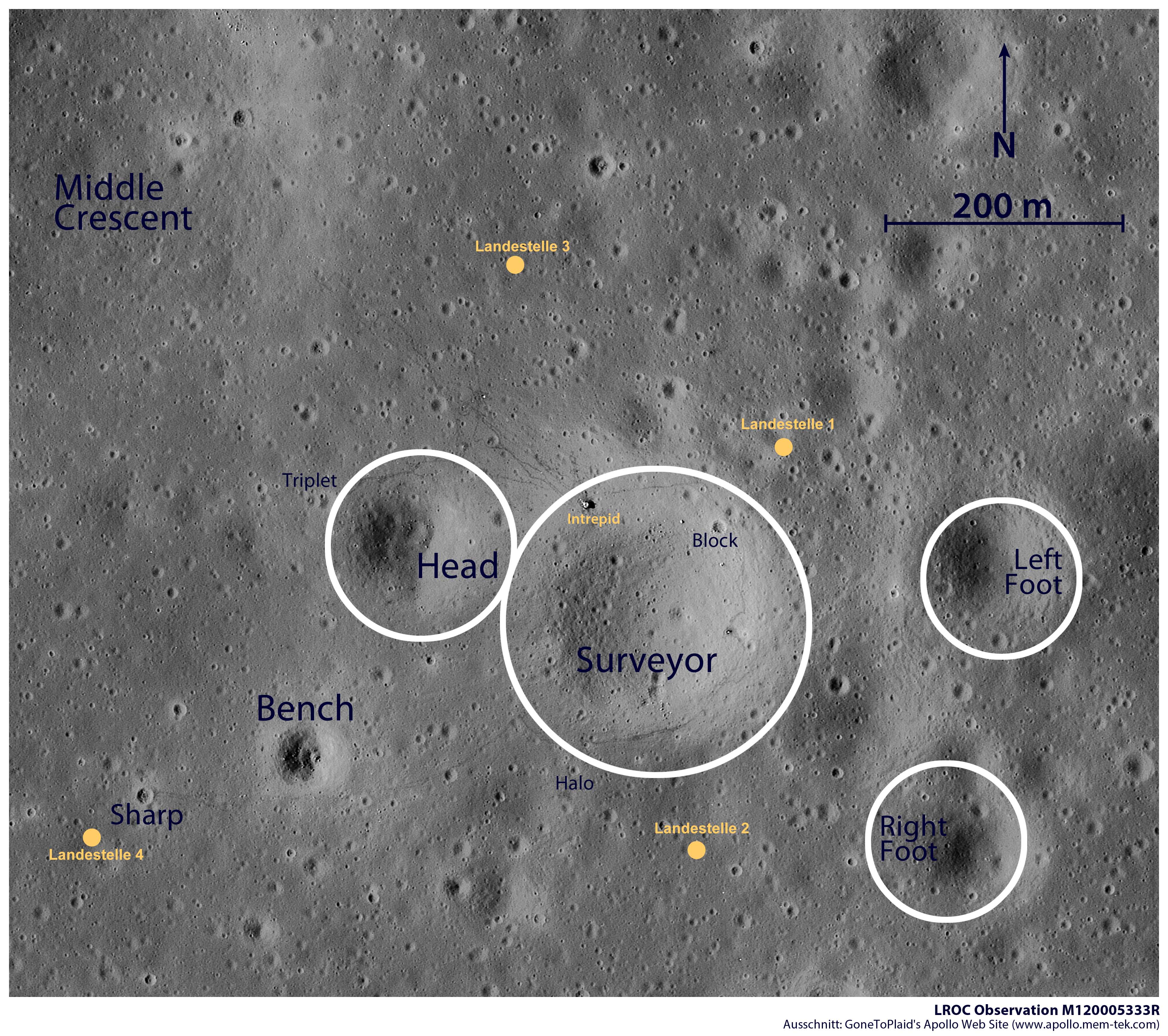 NASANational Aeronautics and Space Administration am mit, zwei Krater auf dem Mars haben zu Ehren von Apollo 12 die Namen Yankee Clipper (CSM