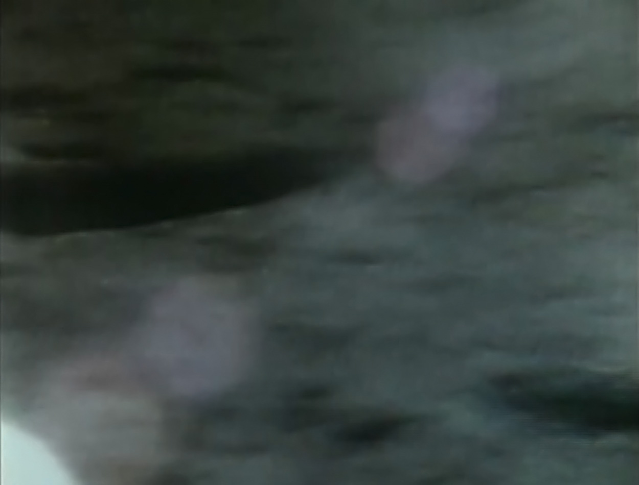 Bean: Nein, da ist nichts. Die Oberfläche unter dem … Das ist interessant, die Oberfläche unter dem Triebwerk ist sauber. Der lockere Boden, wie es ihn sonst überall gibt, ist weg. Dann liegen da etliche kleine runde Dreckklumpen, wenn man das so sagen kann, die strahlenförmig von unterhalb der Triebwerksglocke weggerollt sind. Ich mache ein paar Bilder davon (nicht zu verstehen) gute Aufnahme, weil die Glocke etwa 8 Zoll (20,3 cm) über dem Boden ist.