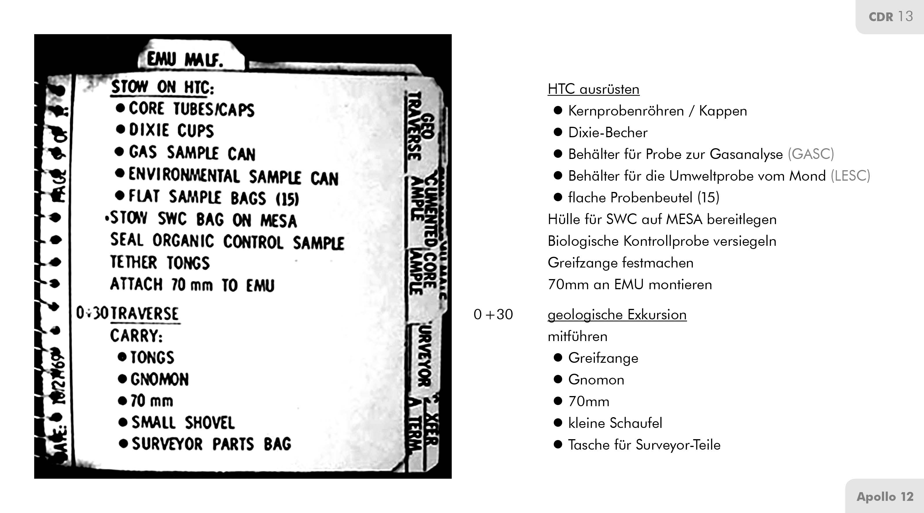 Obwohl in keiner Checkliste davon die Rede ist, eine Karte mit nach draußen zu nehmen, haben sie eine dabei. Wie Ed Mitchell auf dem Foto AS14-64-9089 bei Apollo 14. Pete meint, dass er sie wahrscheinlich auf dem HTC