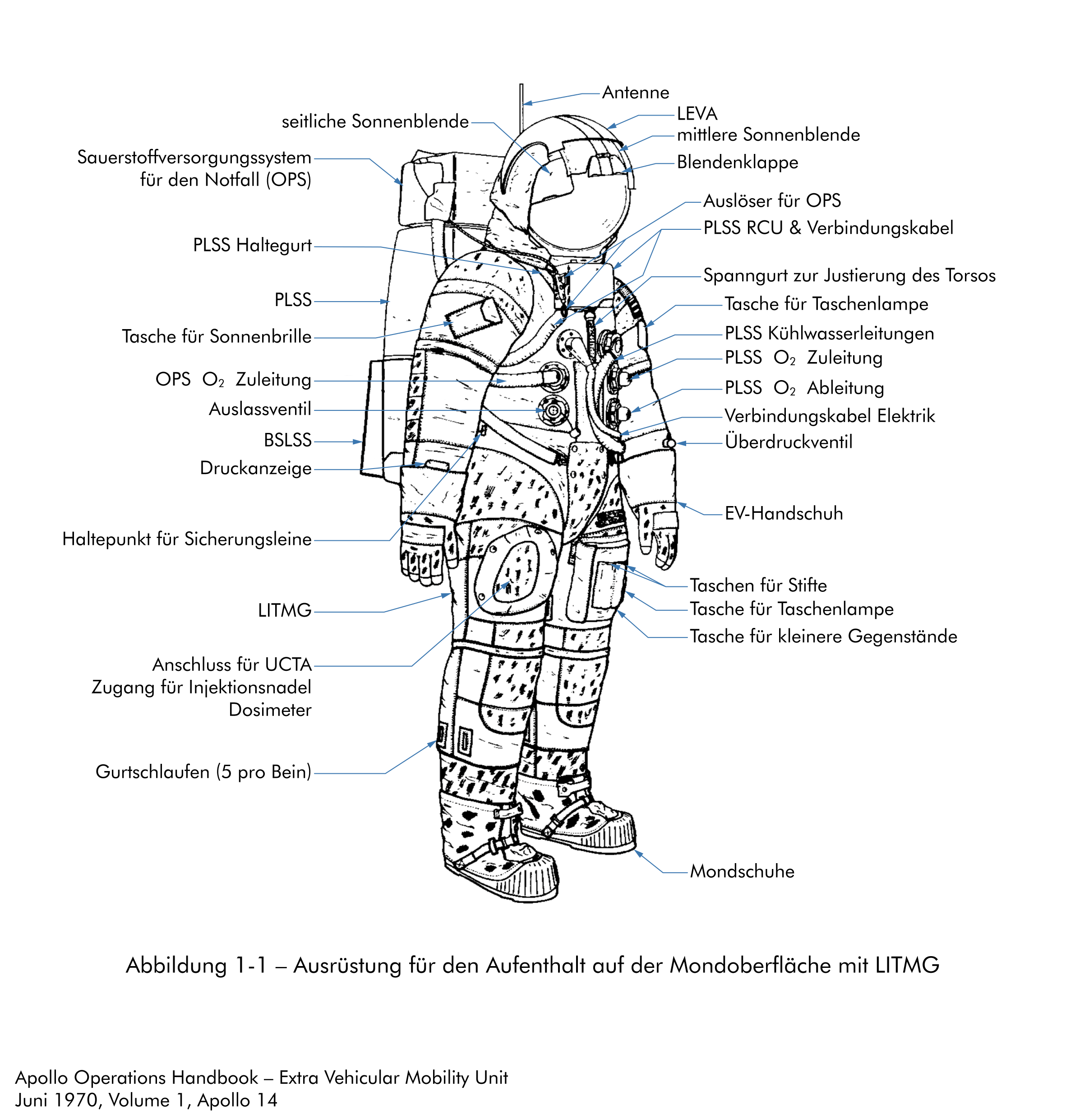 EMUExtravehicular Mobility Unit bei Apollo 14, Band 1 (Apollo Operations Handbook: Extravehicular Mobility Unit – Volume 1 – Apollo 14).