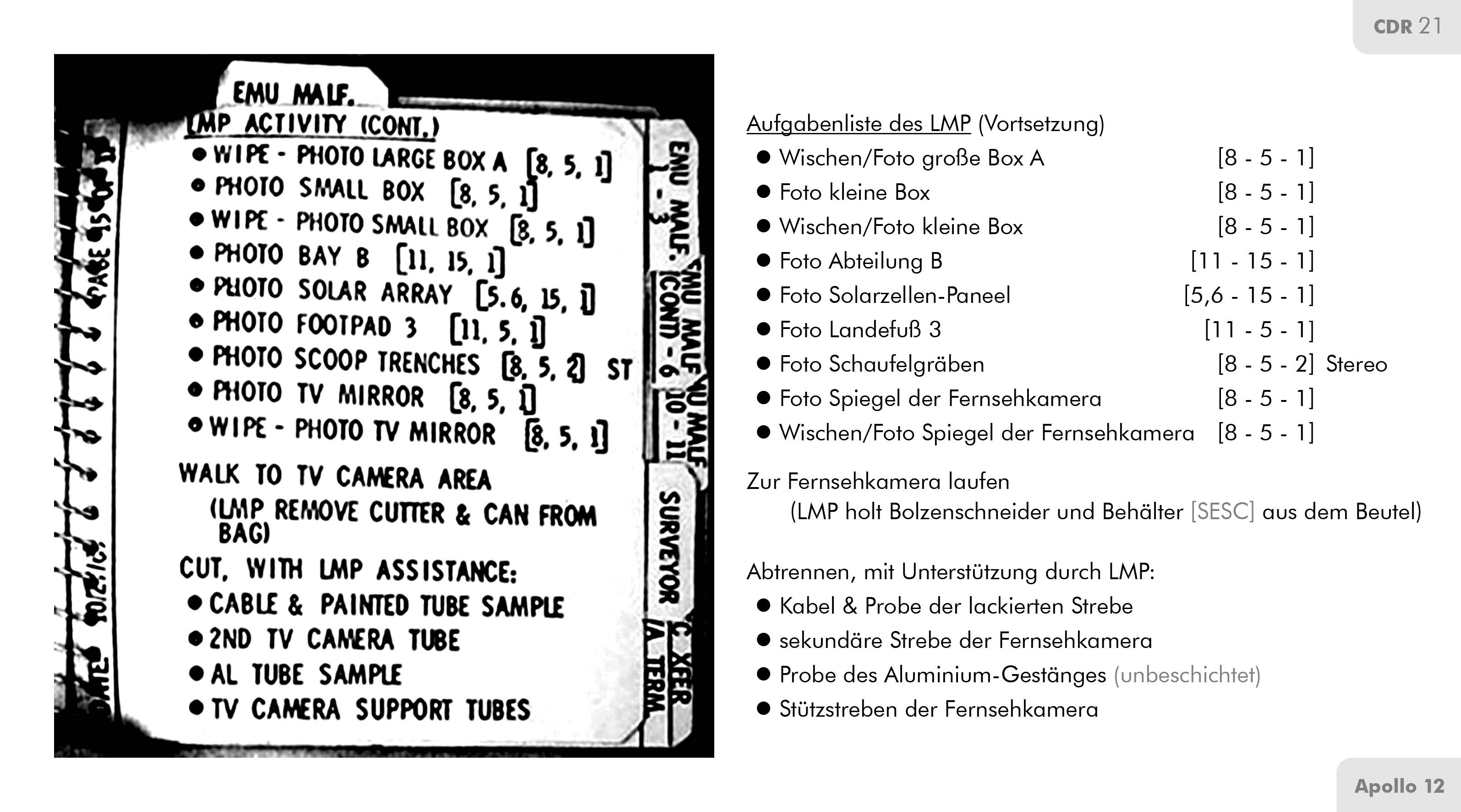 LMPLunar Module Pilot-Kamera. Darum hat Pete bei den Tausch vorgeschlagen. Al wollte noch die restlichen Bilder verschießen und möchte nun Magazin 49 von der CDR