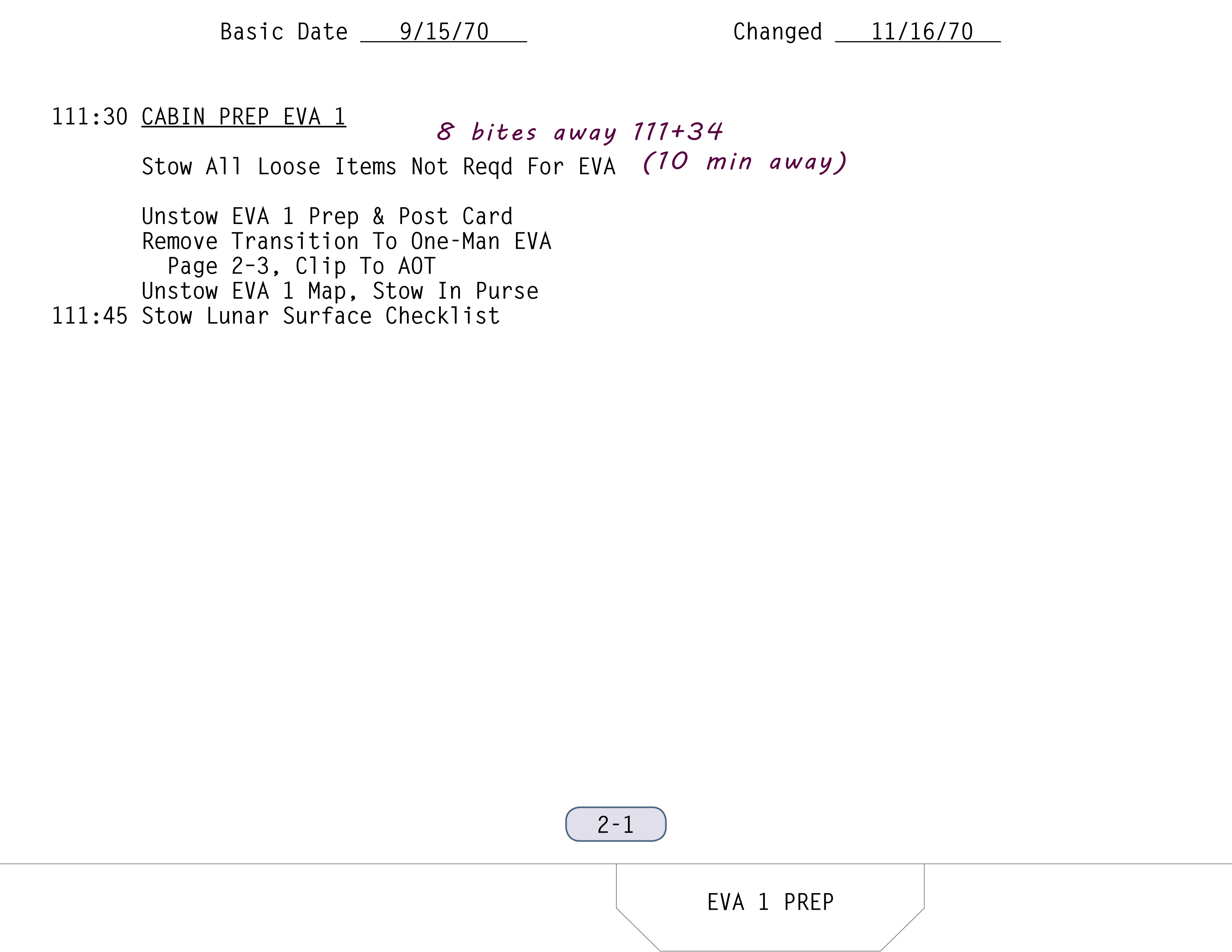 Shepard (Technische Nachbesprechung, ): Die Stichwortkarte zur Vorbereitung auf die EVA