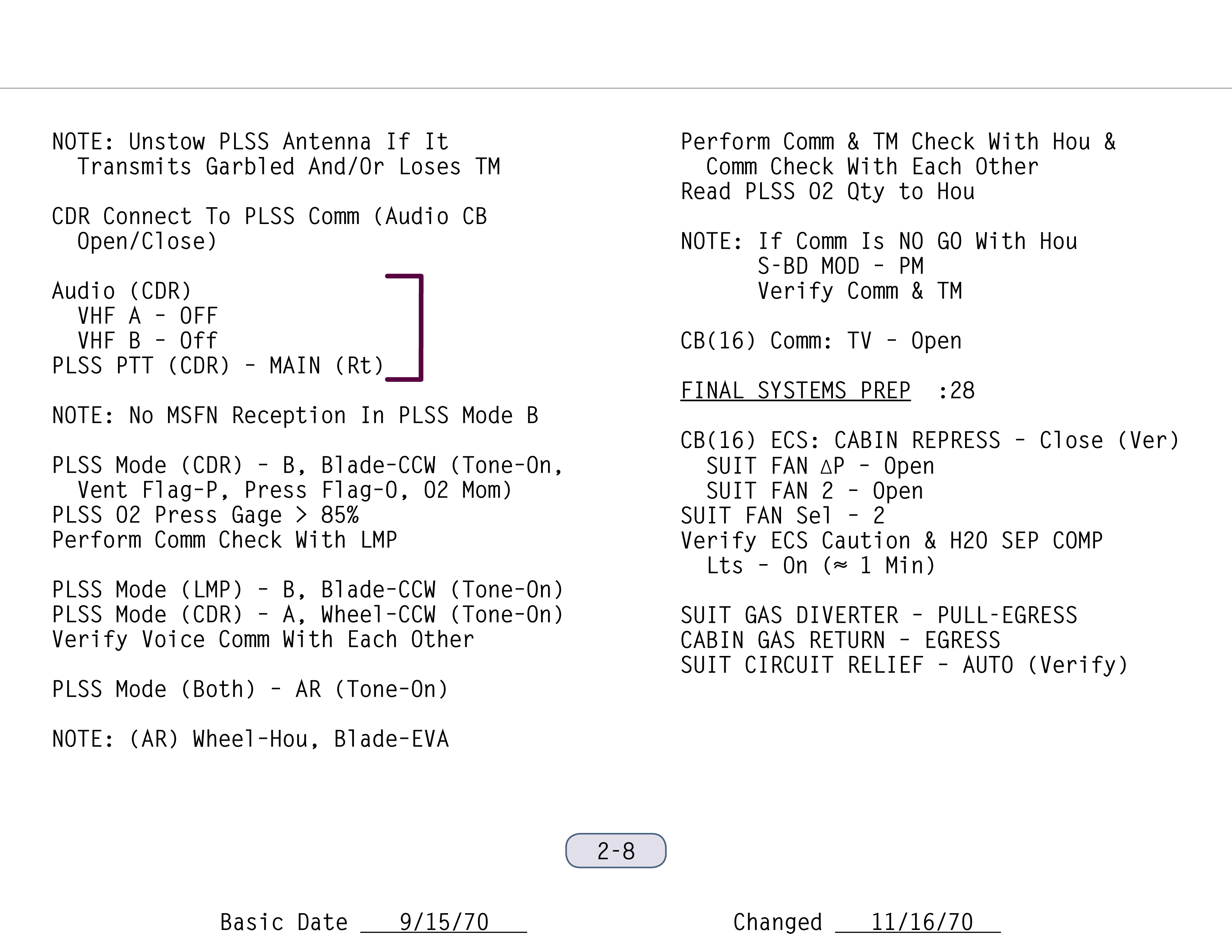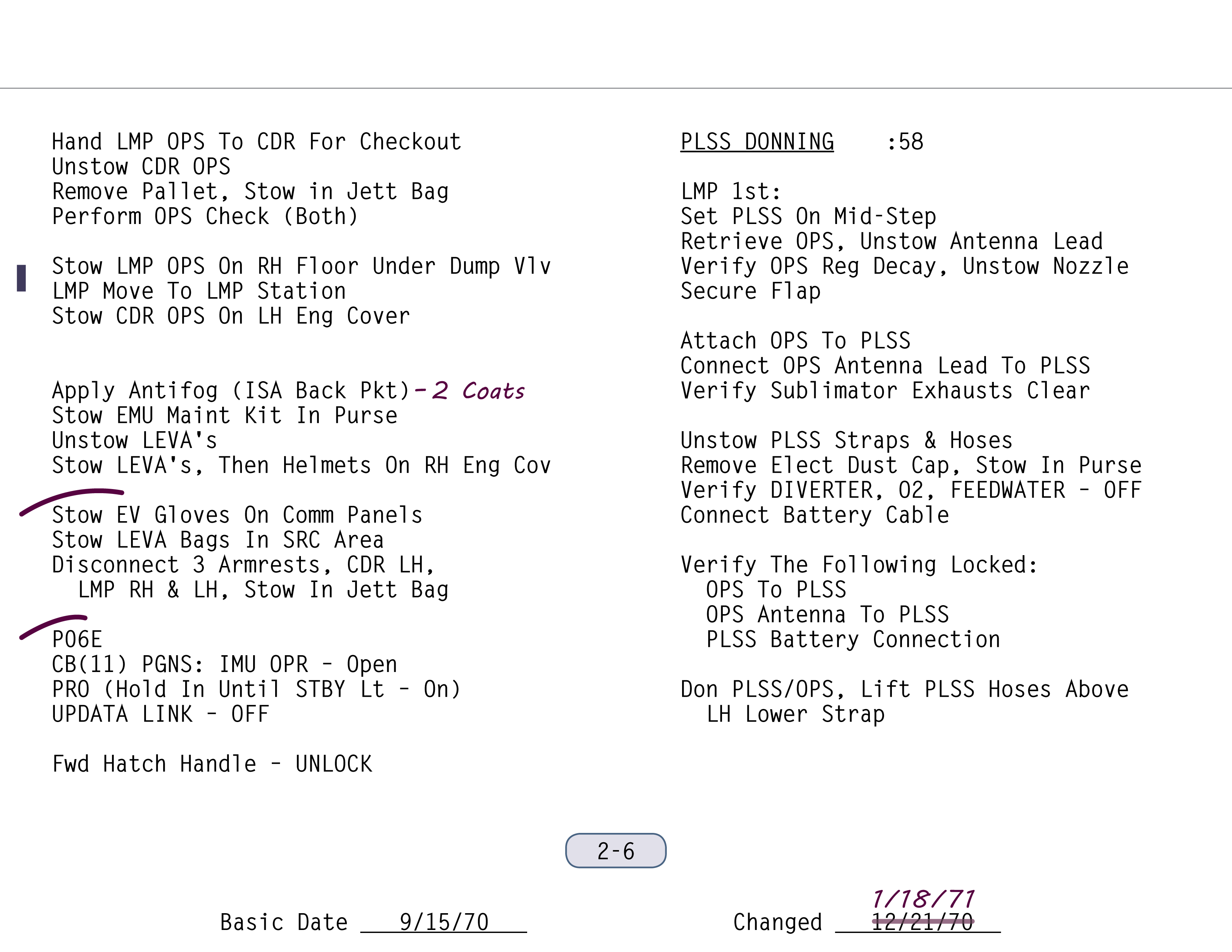 OPROperate (Paneel 11) zu öffnen, gehörte zur Checkliste für die Mondoberfläche (Apollo 14 LM Lunar Surface Checklist). Dann ging es direkt weiter mit der Vorbereitung auf EVA-1