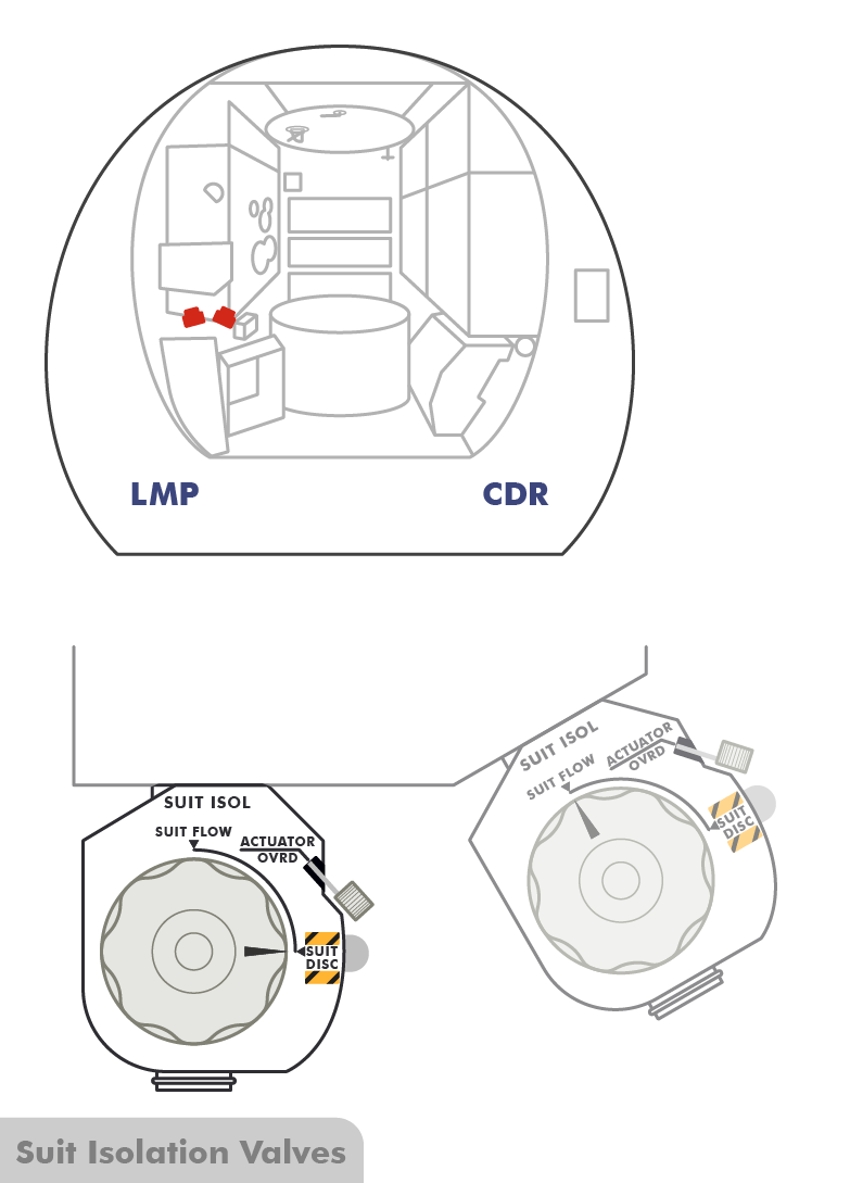 Sie öffnen das Dekompressionsventil, senken den Kabinendruck bis auf 3,5 psi (0,241 bar), schließen es wieder und beobachten, wie Anzug und Versorgungskreisläufe auf die Druckveränderung reagieren. Verhält sich alles normal, wird das Ventil erneut geöffnet, bis die Kabine vollständig entlüftet ist. Das zweite Öffnen des Dekompressionsventils markiert den offiziellen Start der EVA