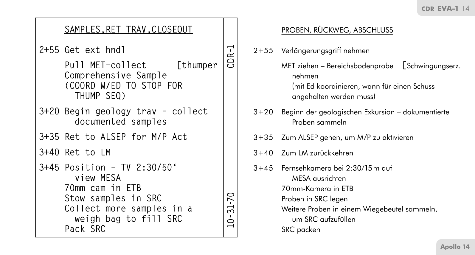EVAExtravehicular Activity, um die Kernproben zu nehmen. Houston möchte hier sichergehen, dass er mitgenommen wird, damit sie nicht noch einmal zurücklaufen und ihn holen müssen.