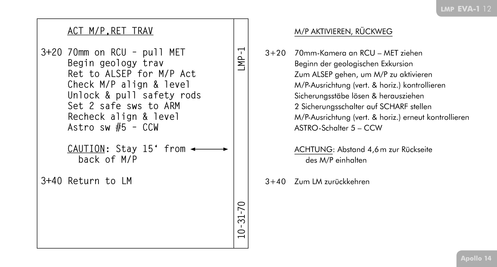 ASEActive Seismic Experiment zu deaktivieren. Al hatte den Schalter bei gegen den Uhrzeigersinn gedreht (Checkliste bei ), damit Ed das Stoßwellen-/Geophon-Experiment (T/G