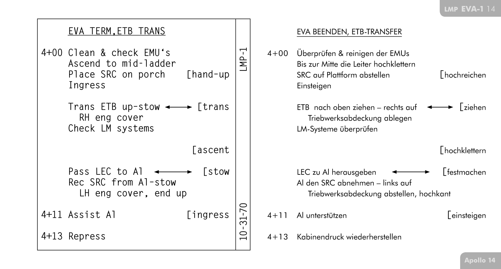 EVAExtravehicular Activity vor der (Kabinen-)Dekompression bei steht (und ebenfalls auf SUR 2-10). Al kann einfach weitermachen und sich wieder an das LM
