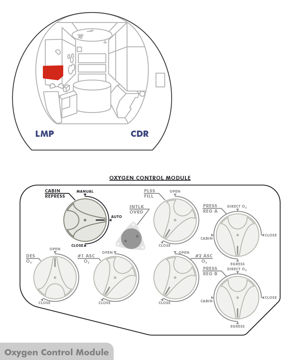 Shepard: (sieht vielleicht das Ventil hinter Ed nicht richtig) Ach, Mist. Kannst du etwas Platz machen? Dann kann ich … Alles klar. (Pause) (ECS-Paneel)