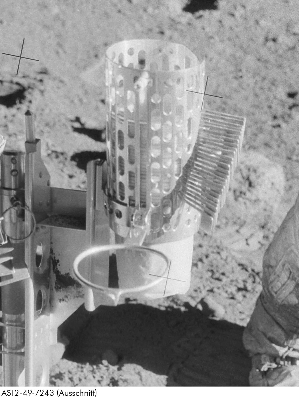 LMLunar Module zurückkehren, zeigt die Fernsehkamera ein unverändertes Bild. Lediglich die Schatten verkürzen sich leicht, weil die Sonne 0,5° pro Stunde steigt.