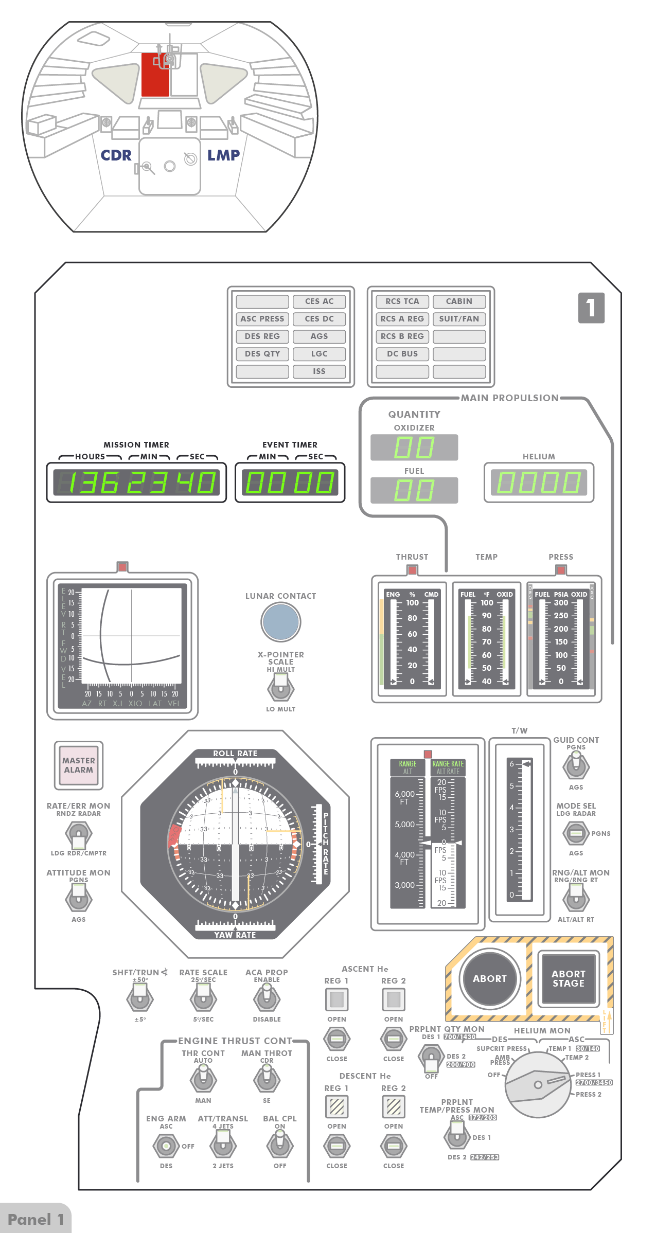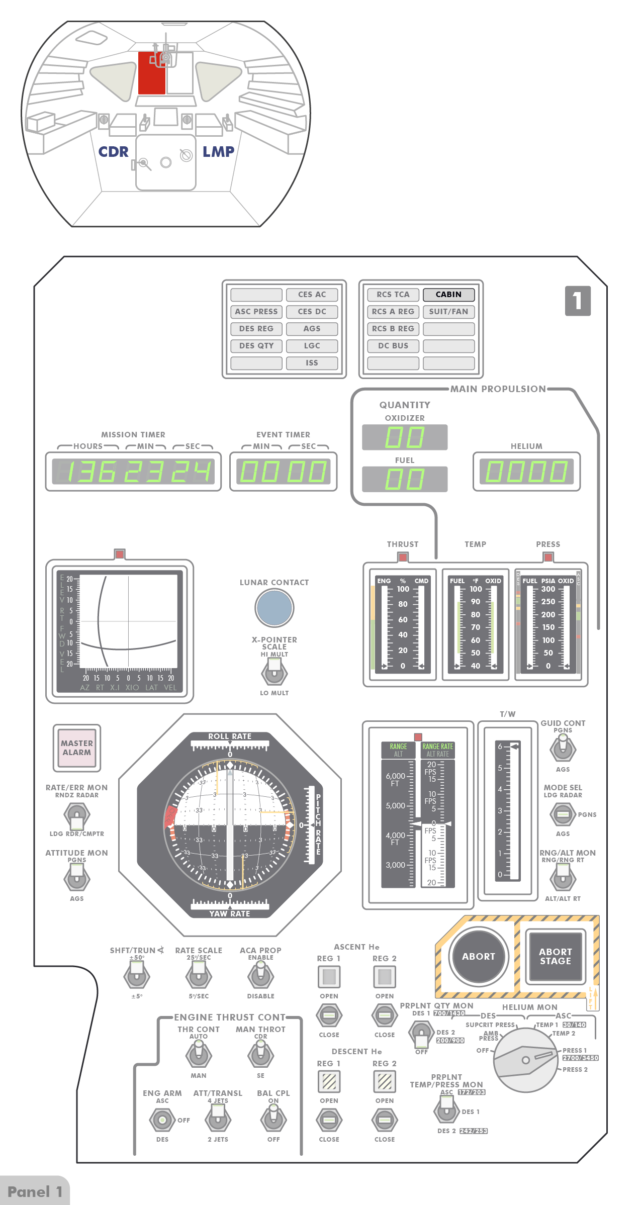 Shepard: Okay.Warnleuchte KABINE ist Aus. (Paneel 1)