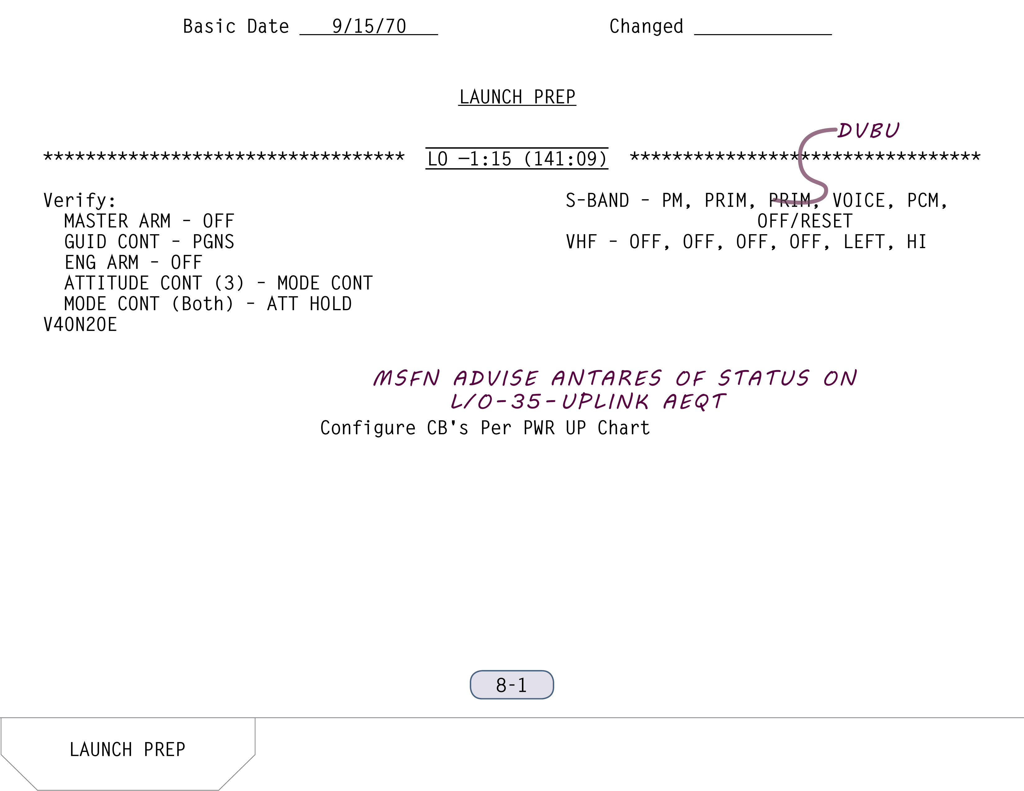 McCandless: Verstanden, Antares. Das Team Maroon hat jetzt übernommen. Wir möchten gerne die beim Start vorgesehene COMM