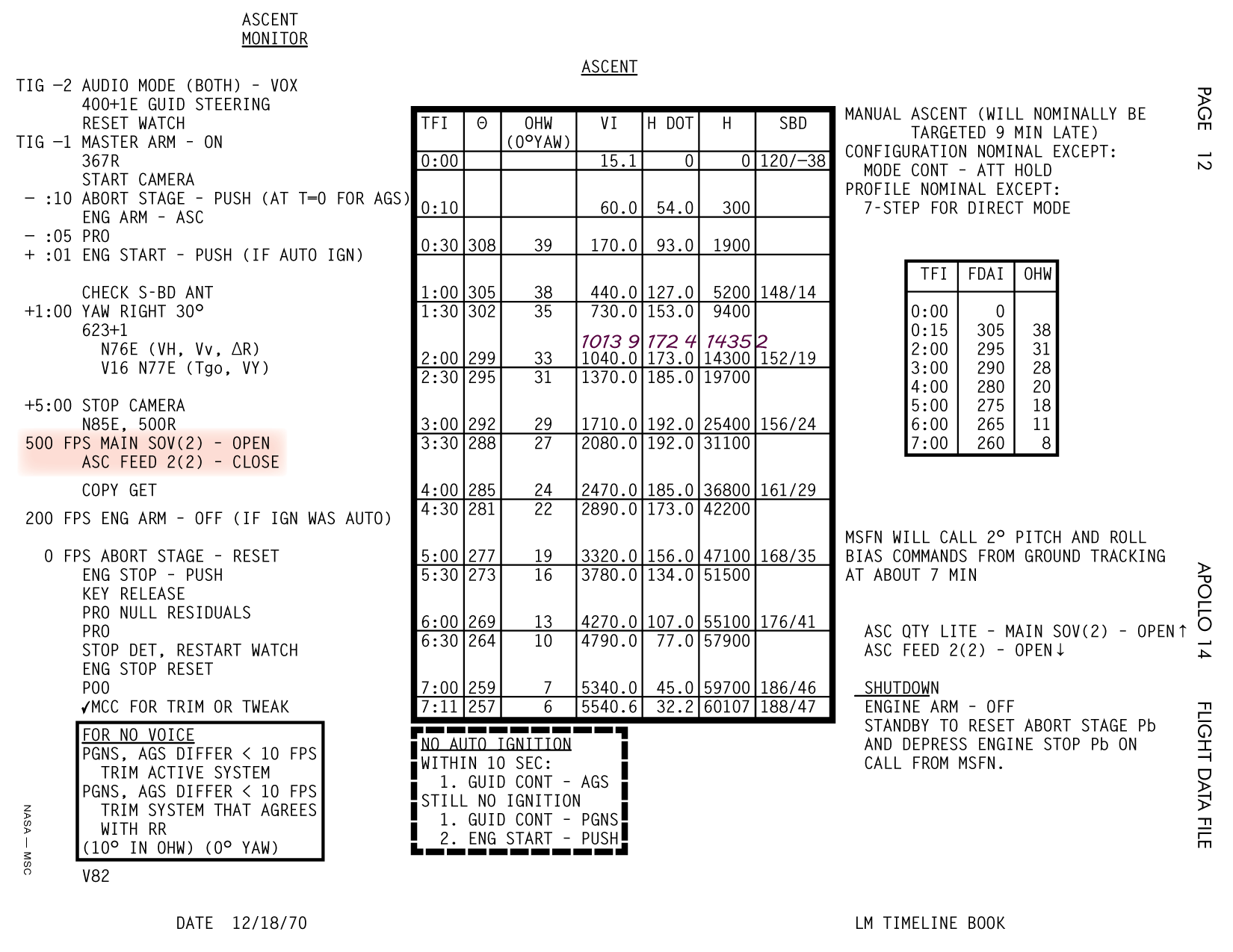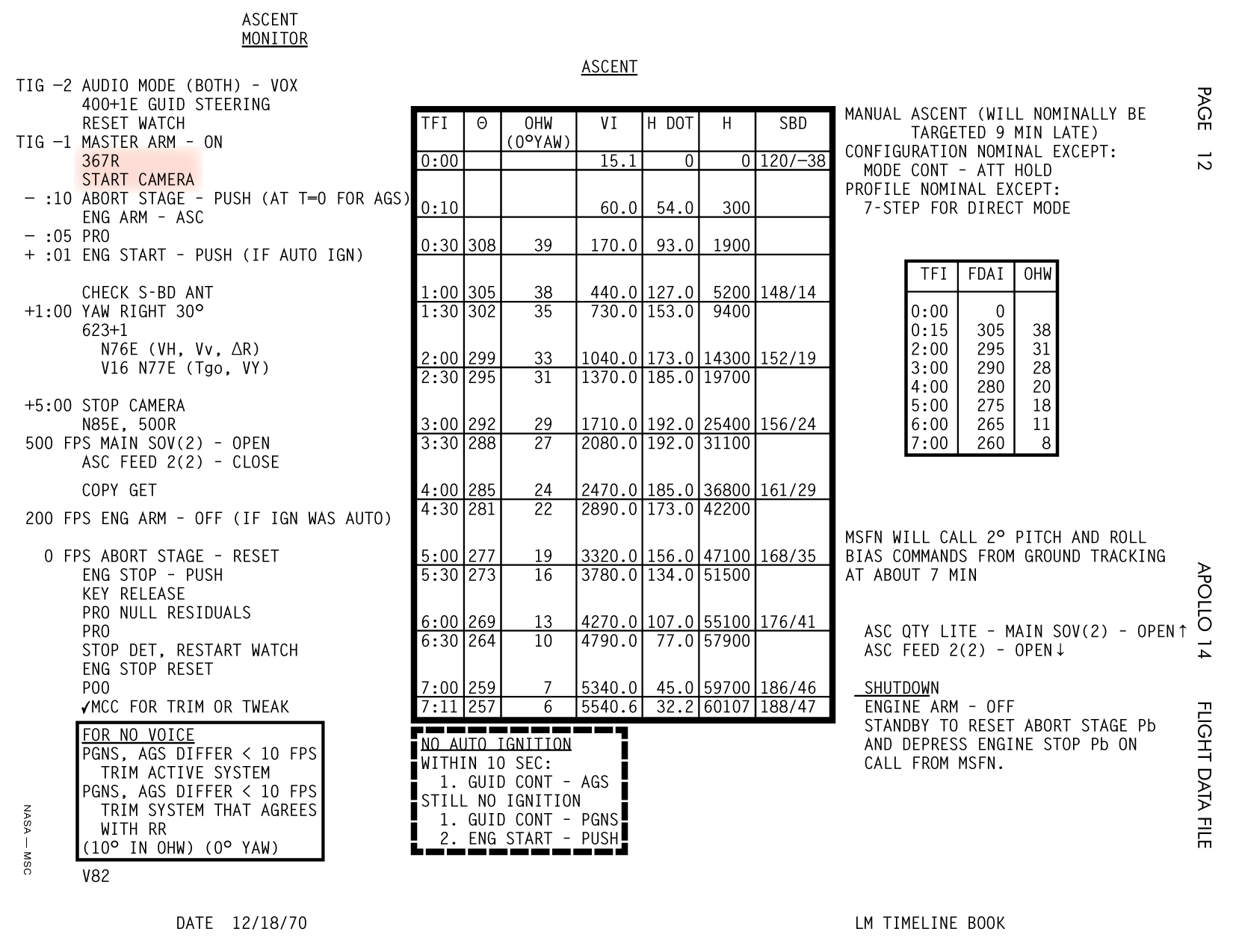 HHeight (altitude) mit vorausberechneten Werten in der Tabelle auf Seite 12 im Zeitplan für das LM