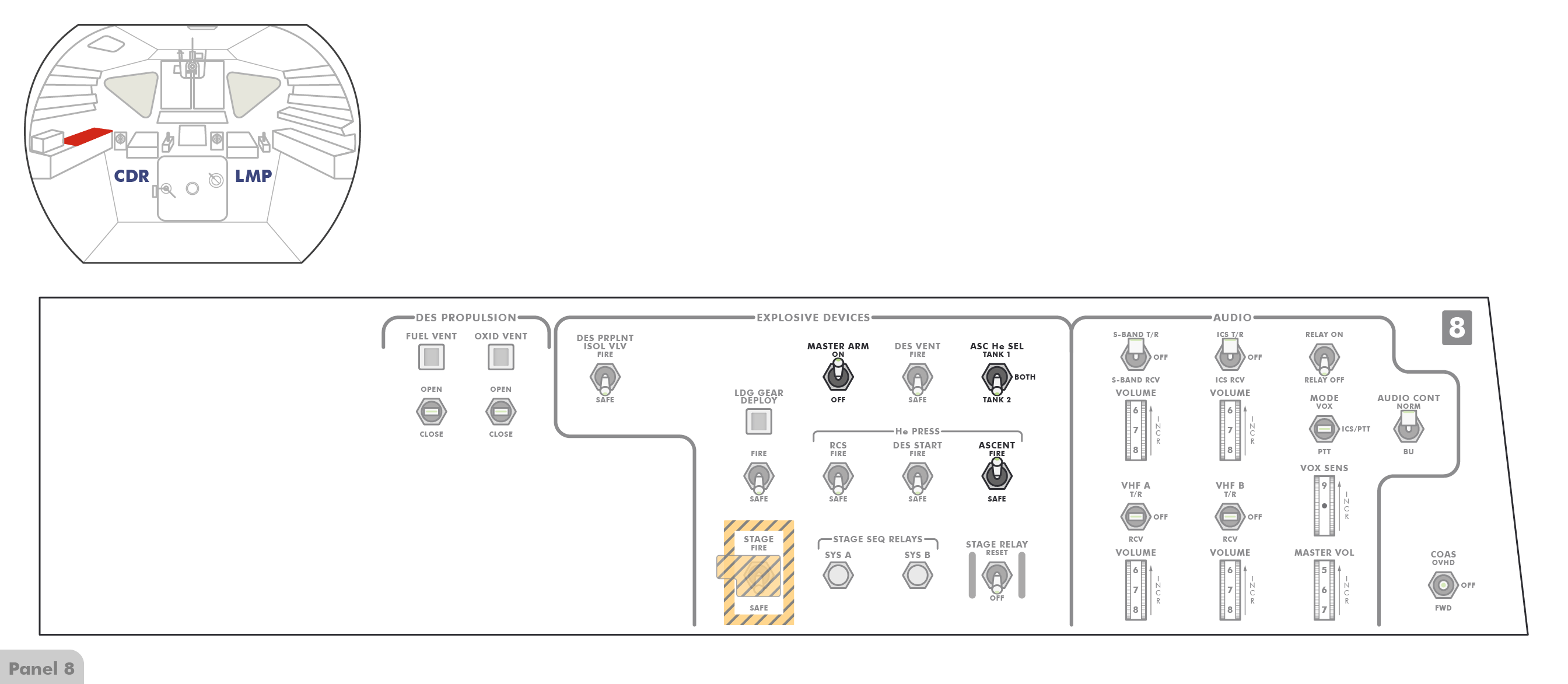 ASCAscent Stage FEEDs – Geschlossen (Paneel 2). (Pause) 350 (Fuß/Sekunde bzw. 107 m/s). 300 (91). 250 (76). 200 (61). 150 (46). 100 (30). 80 (24). 60 (18). 50 (15). 40 (12). 30 (9). 10 (3).