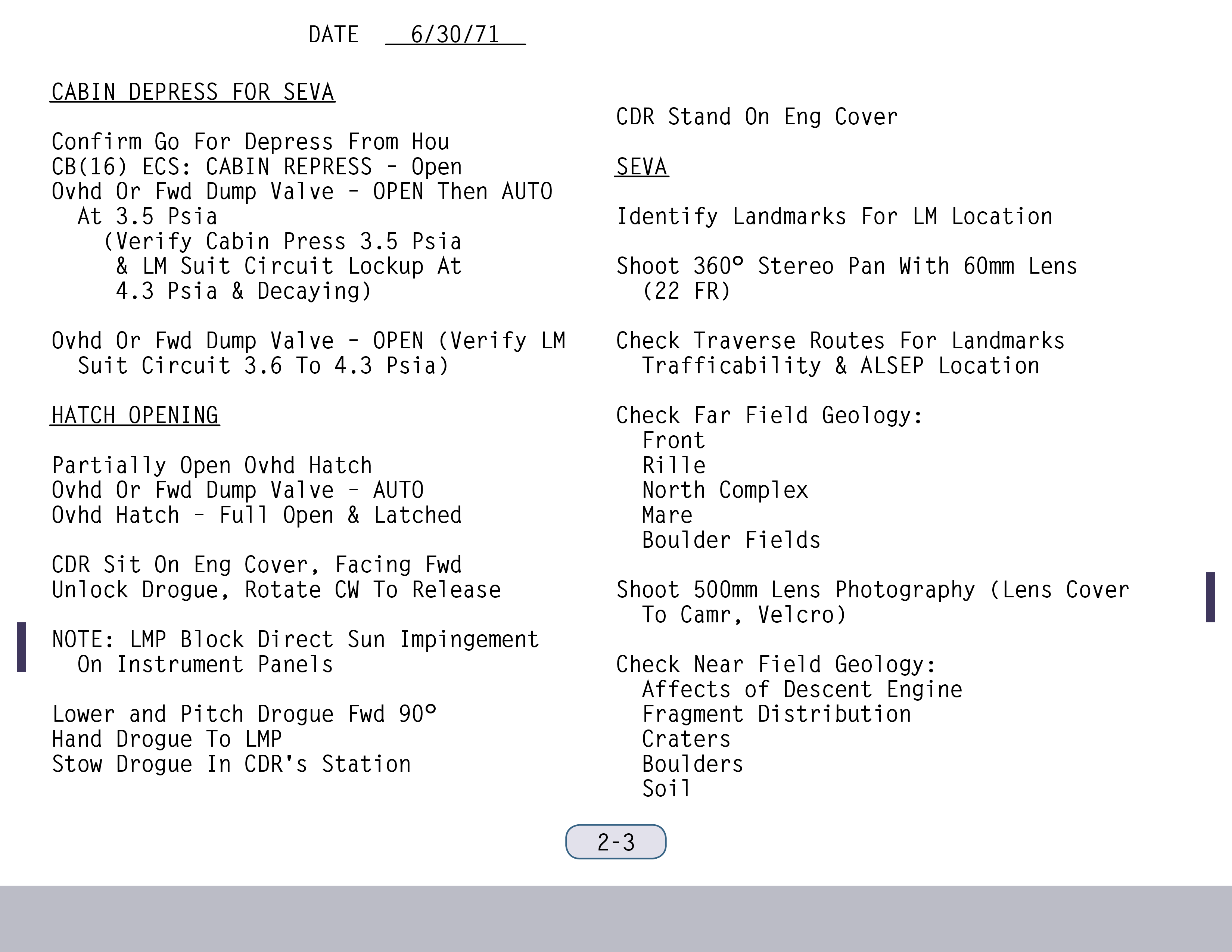 SMService Module). Während dieser Funkpause bereiten Dave und Jim sich, die Kabine und ihre Ausrüstung auf die bevorstehende SEVA