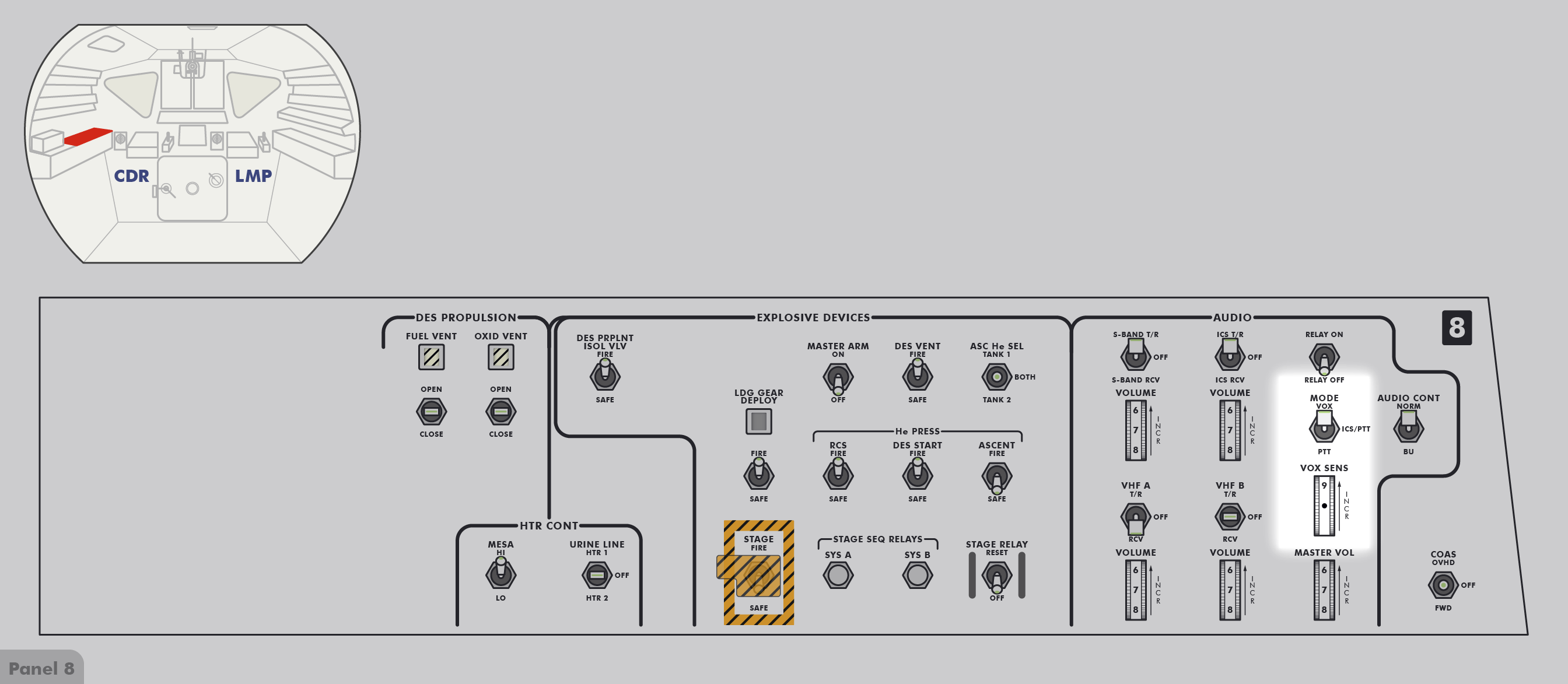 CapComCapsule Communicator. Die dazugekommenen Instrumente und Kameras in der SIM