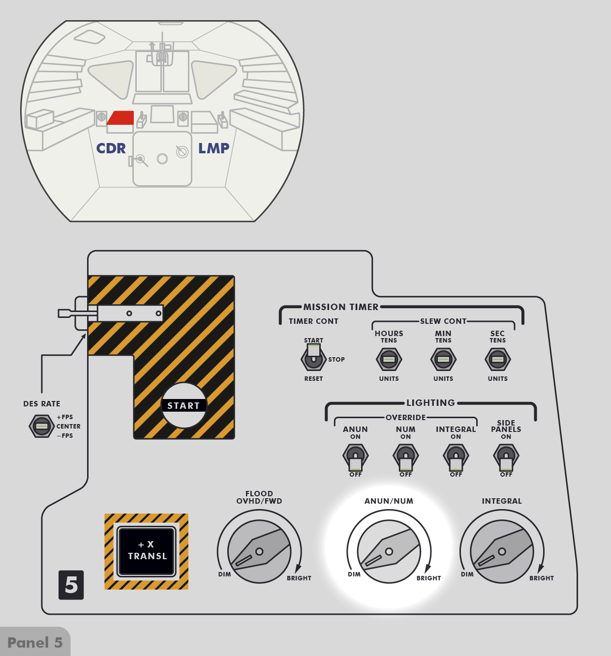 LMLunar Module-Anzugkreislauf ungefähr bei 4,5 (psia bzw.0,31 bar). (Pause) Und ist … (Pause) stabil. (Pause) (Paneel 2)