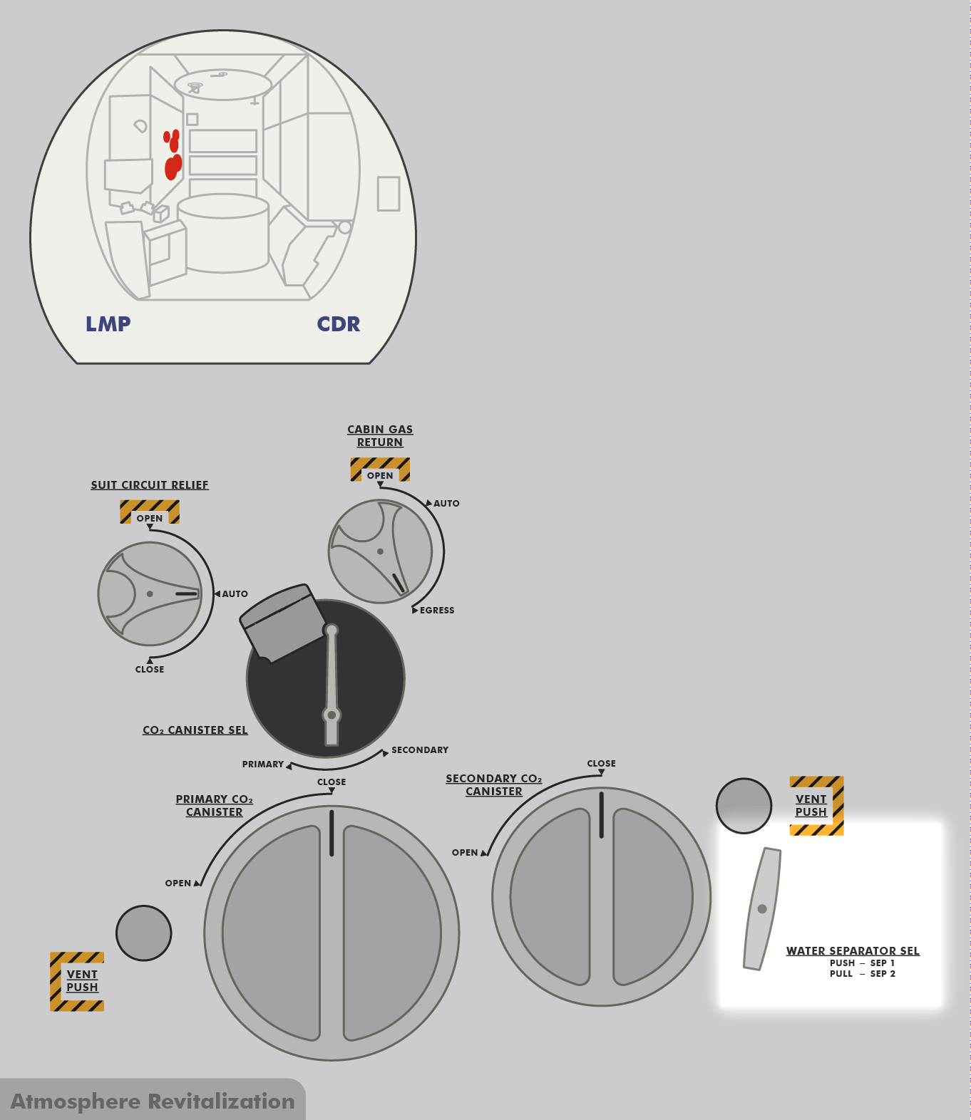 ECSEnvironmental Control System kompensiert wird. Jetzt kann das Dekompressionsventil an der vorderen Luke geöffnet werden.