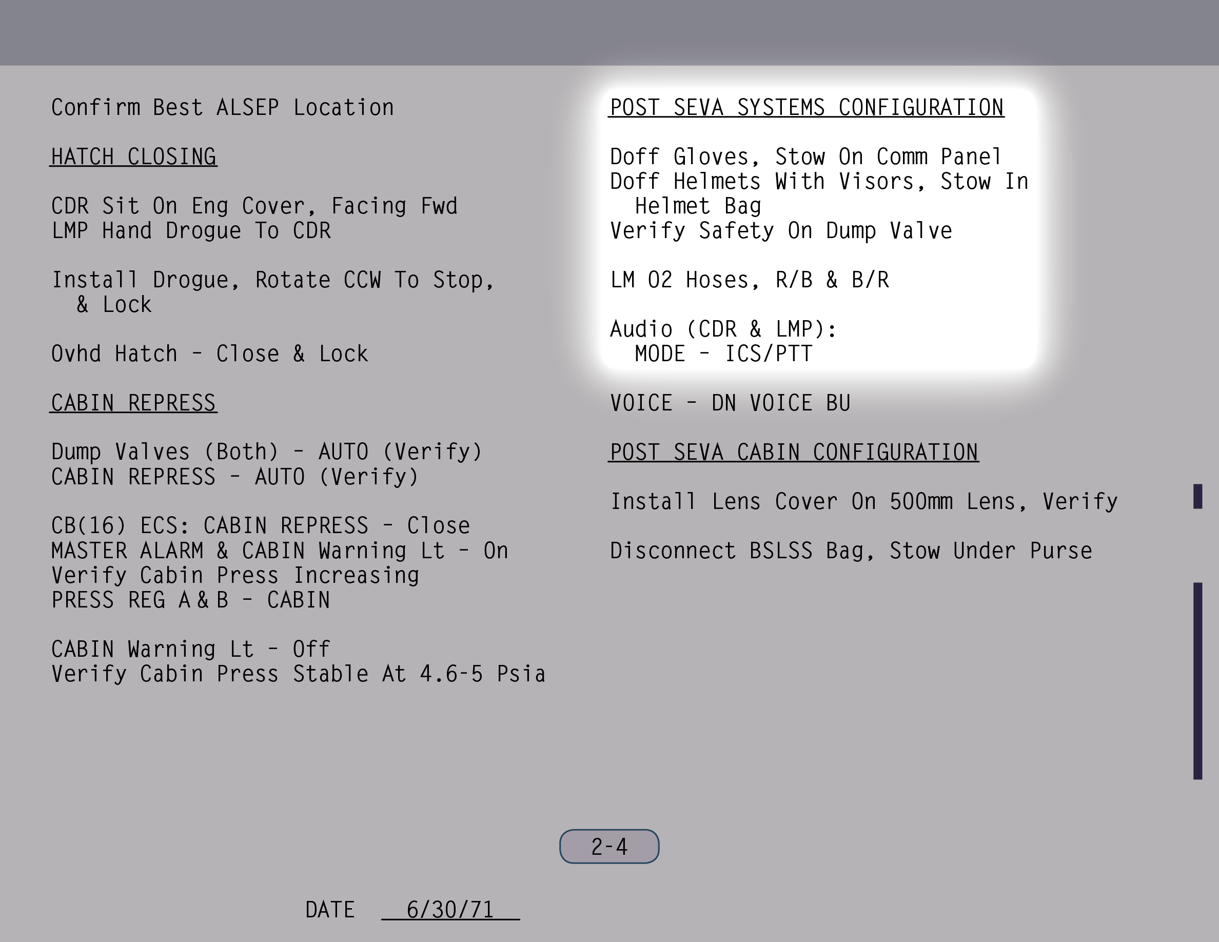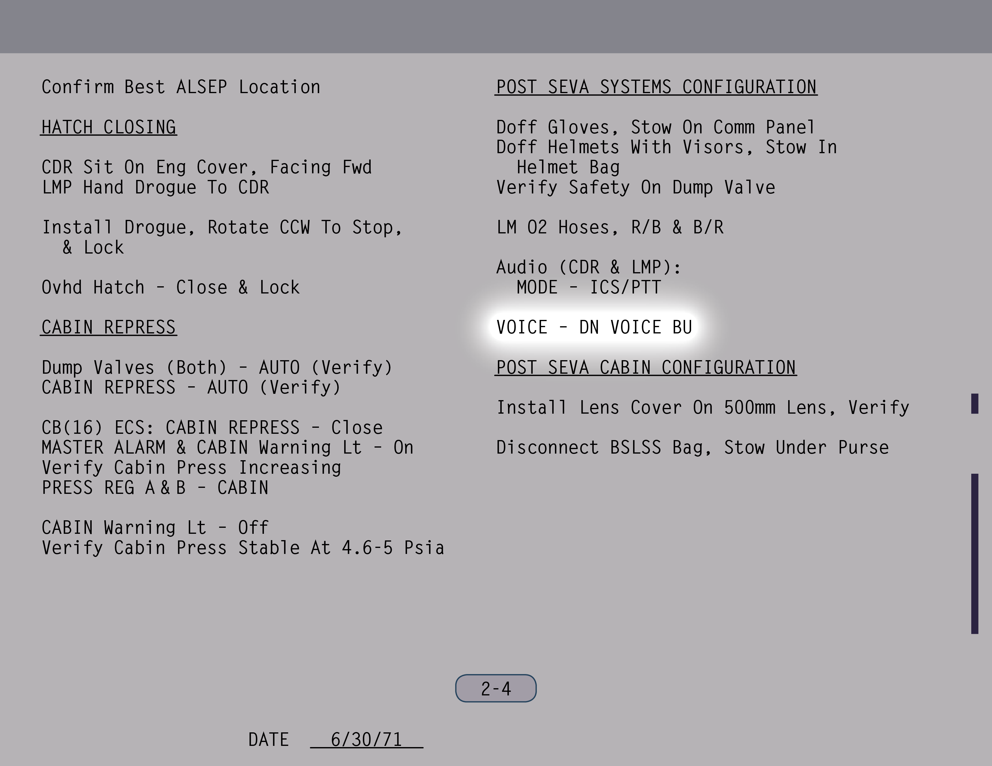 SEVAStand-Up Extravehicular Activity): Ich konnte nicht genau sagen, warum das LM