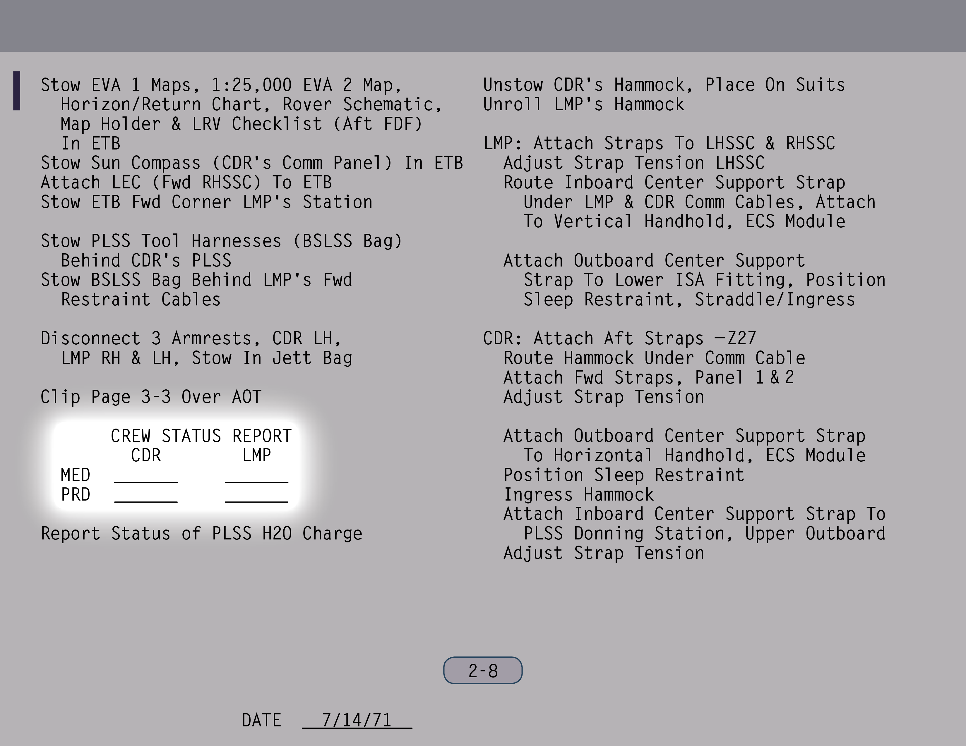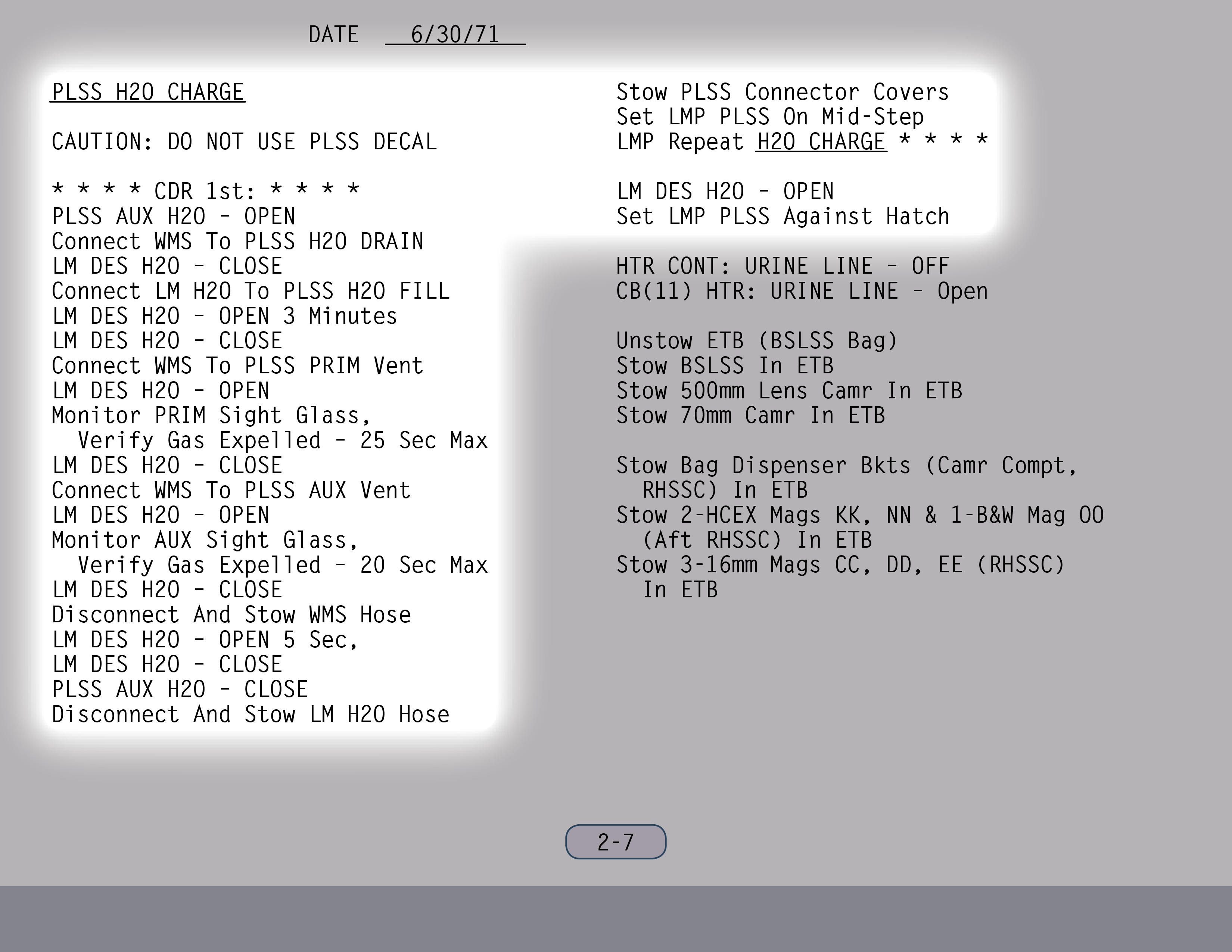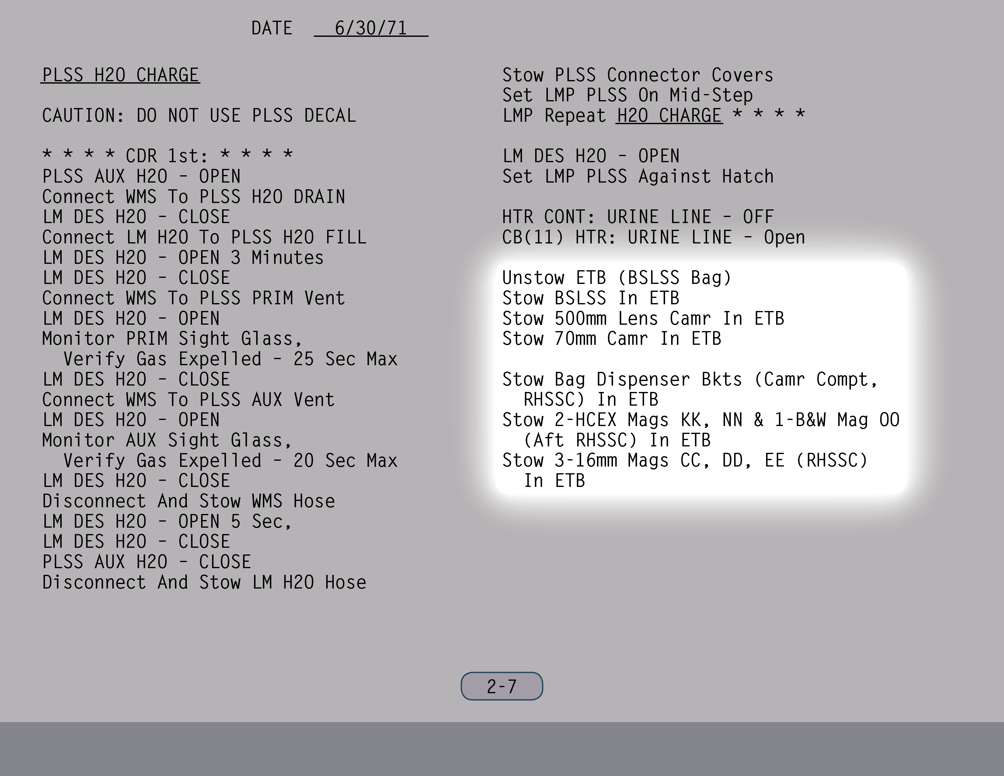 PLSSPortable Life Support System sollte statt maximal nun bis zu sogar arbeiten, soweit ich mich erinnere. Und wir versuchten sogar, noch mehr herauszuholen. Wir wollten also bei unserer Mission zwei Dinge: A) die Zeit im Anzug verlängern und B) mehr EVAs