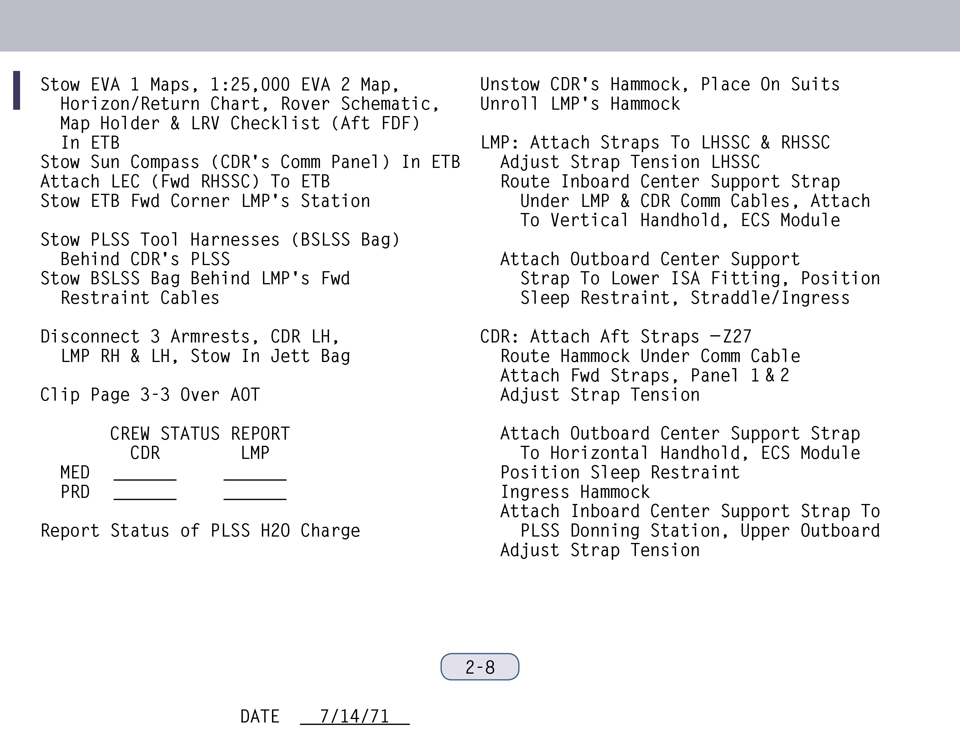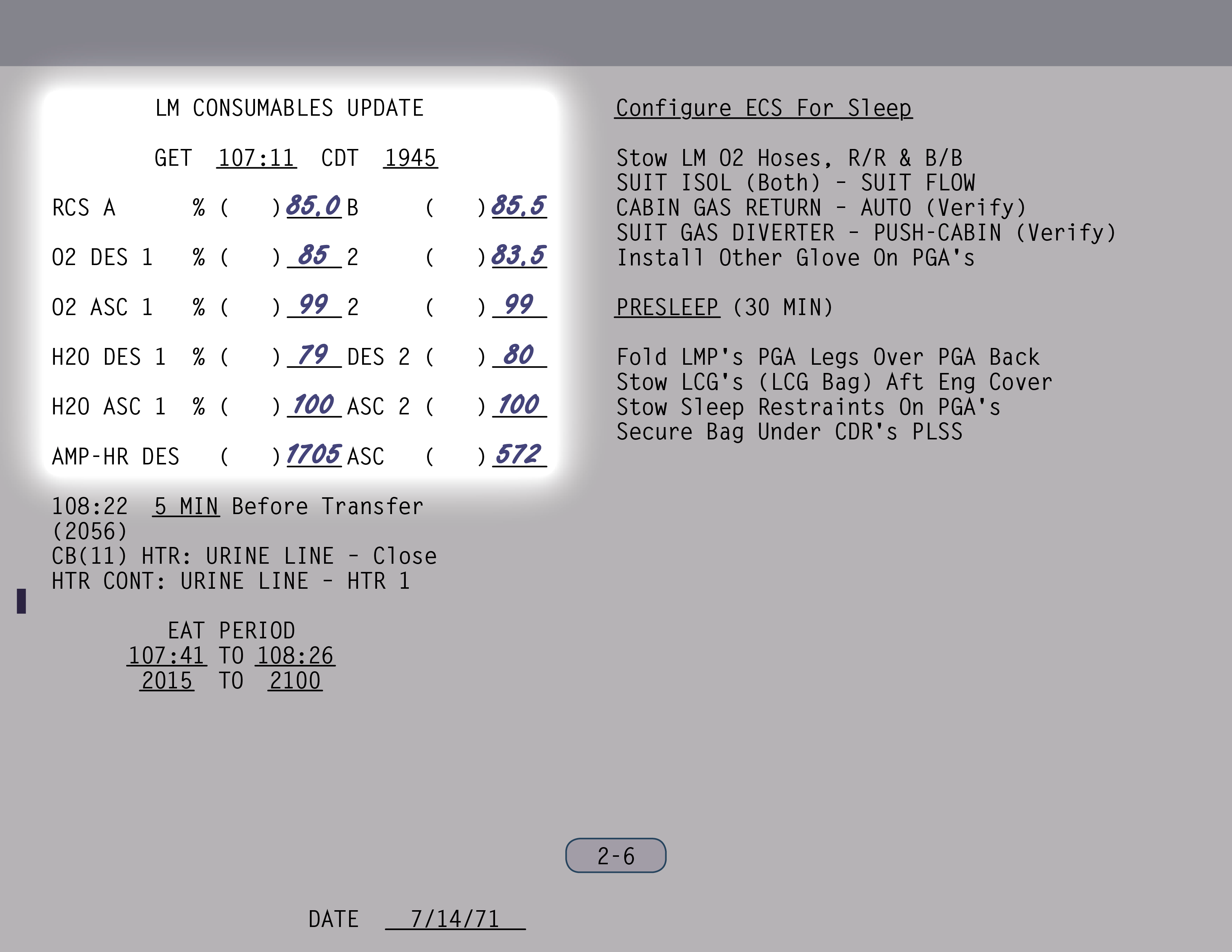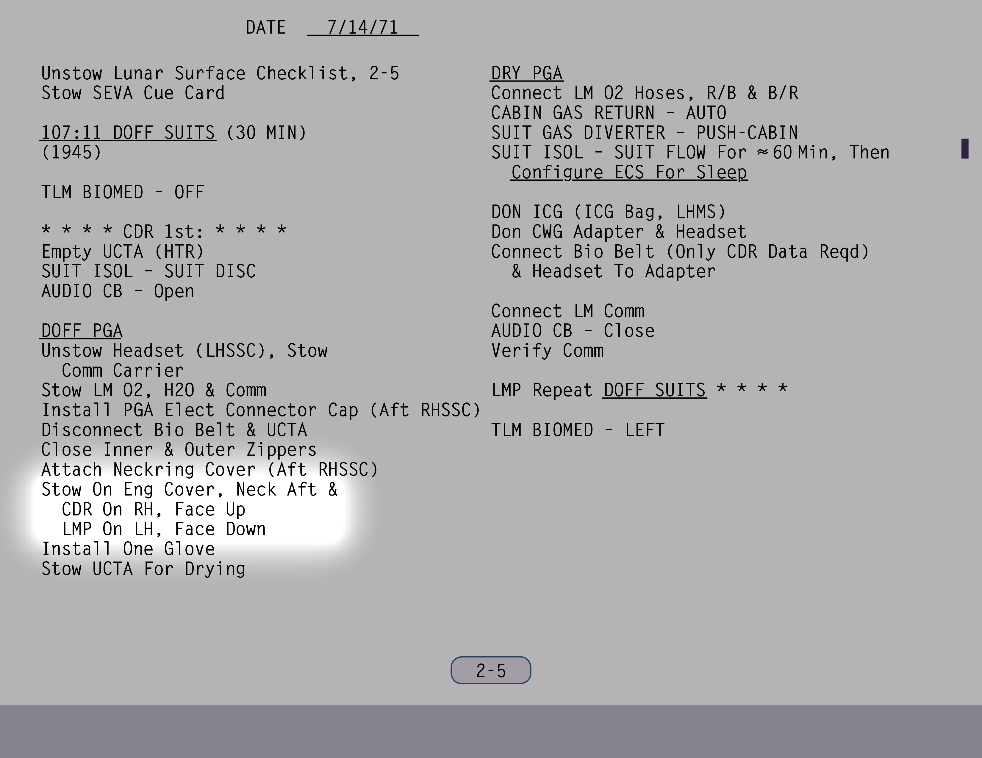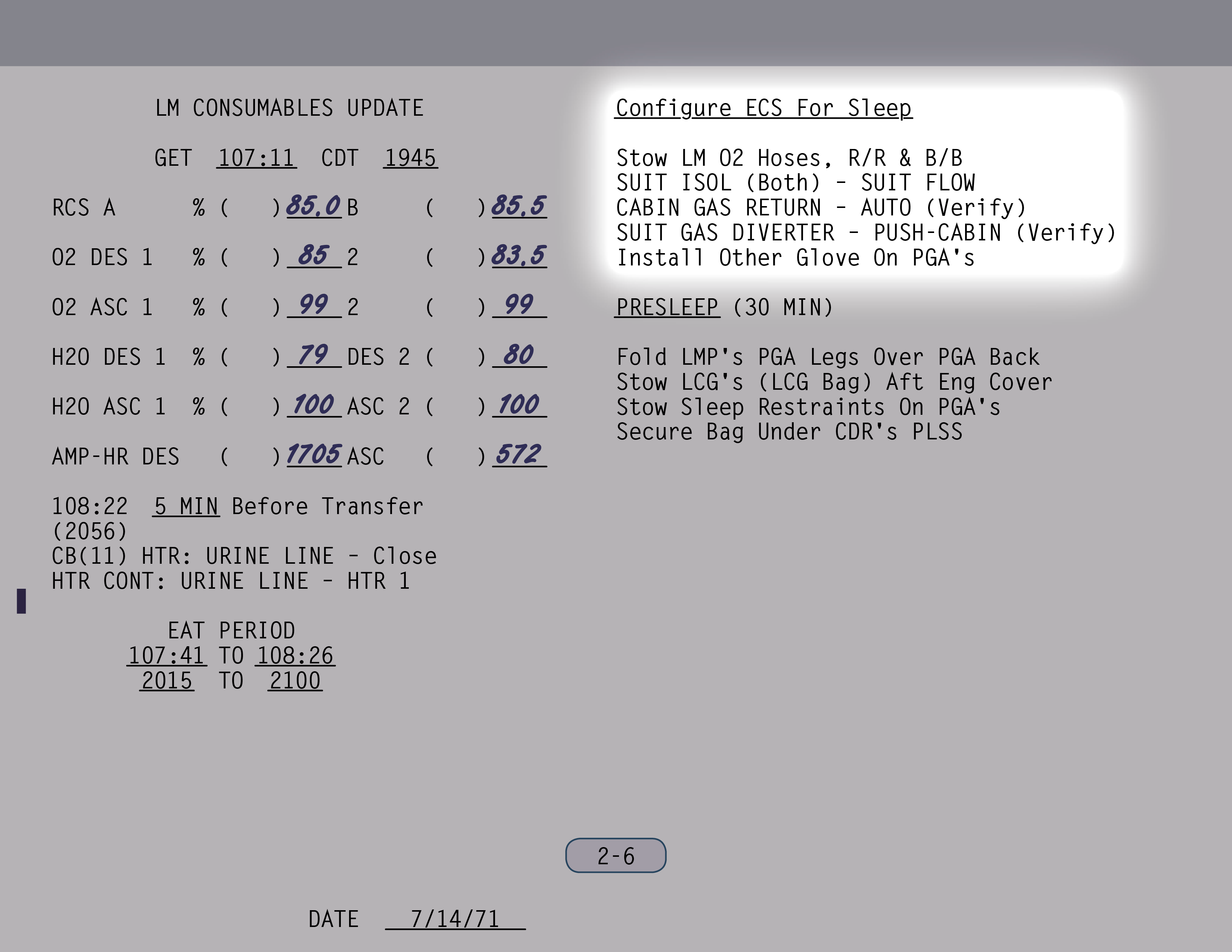 PLSSPortable Life Support System sollte statt maximal nun bis zu sogar arbeiten, soweit ich mich erinnere. Und wir versuchten sogar, noch mehr herauszuholen. Wir wollten also bei unserer Mission zwei Dinge: A) die Zeit im Anzug verlängern und B) mehr EVAs