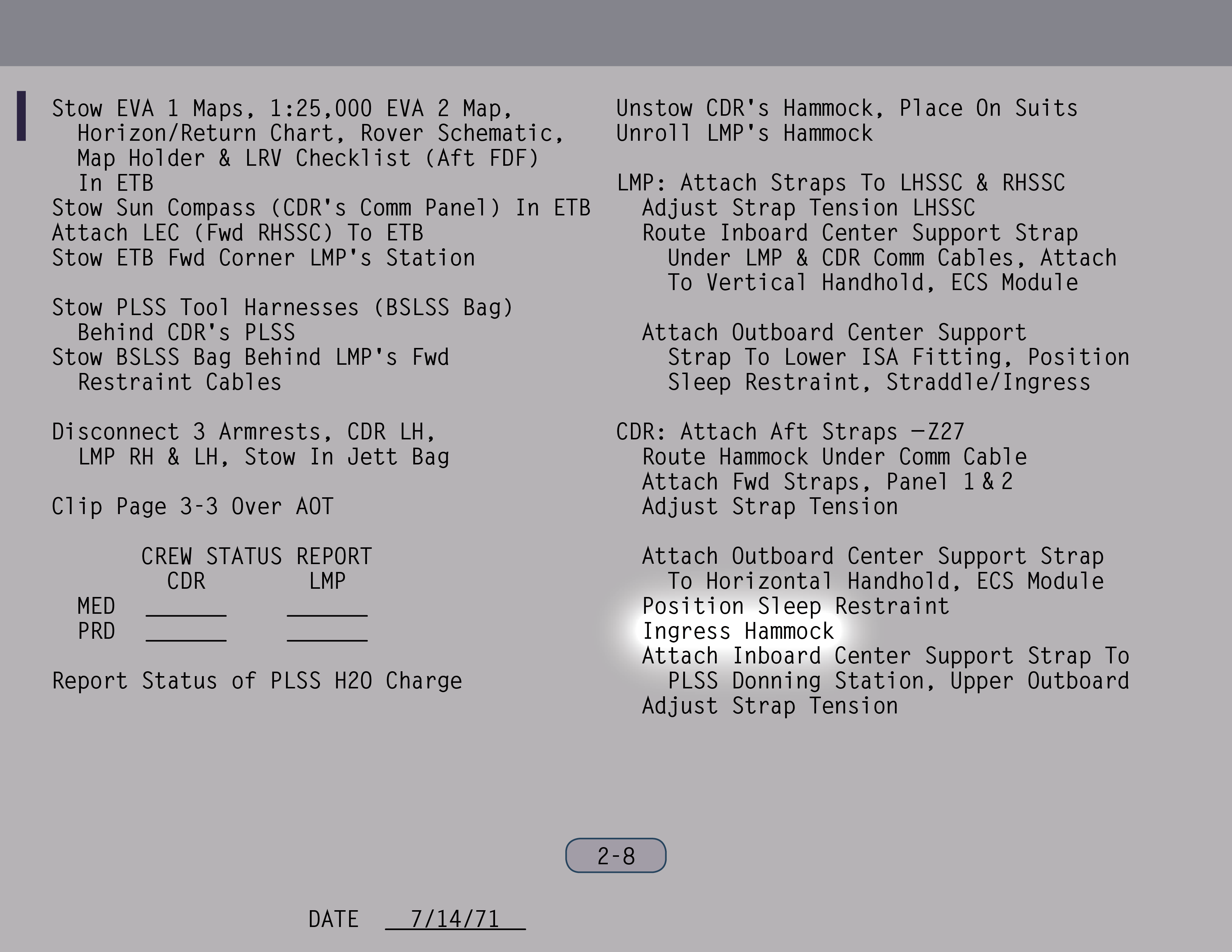 MITMassachusetts Institute of Technology meine Diplomarbeit zu dem Thema geschrieben hatte. Aber nachdem ich (Gemini) VIII zugeteilt wurde, sollte Rusty Schweickart diese Aufgbe übernehmen. Und ich fand dieses Buch, in dem ich für Rusty alles zusammengestellt hatte, wie es läuft beim MIT