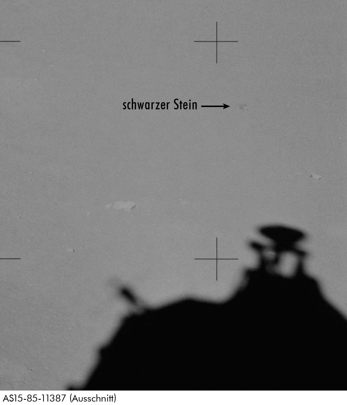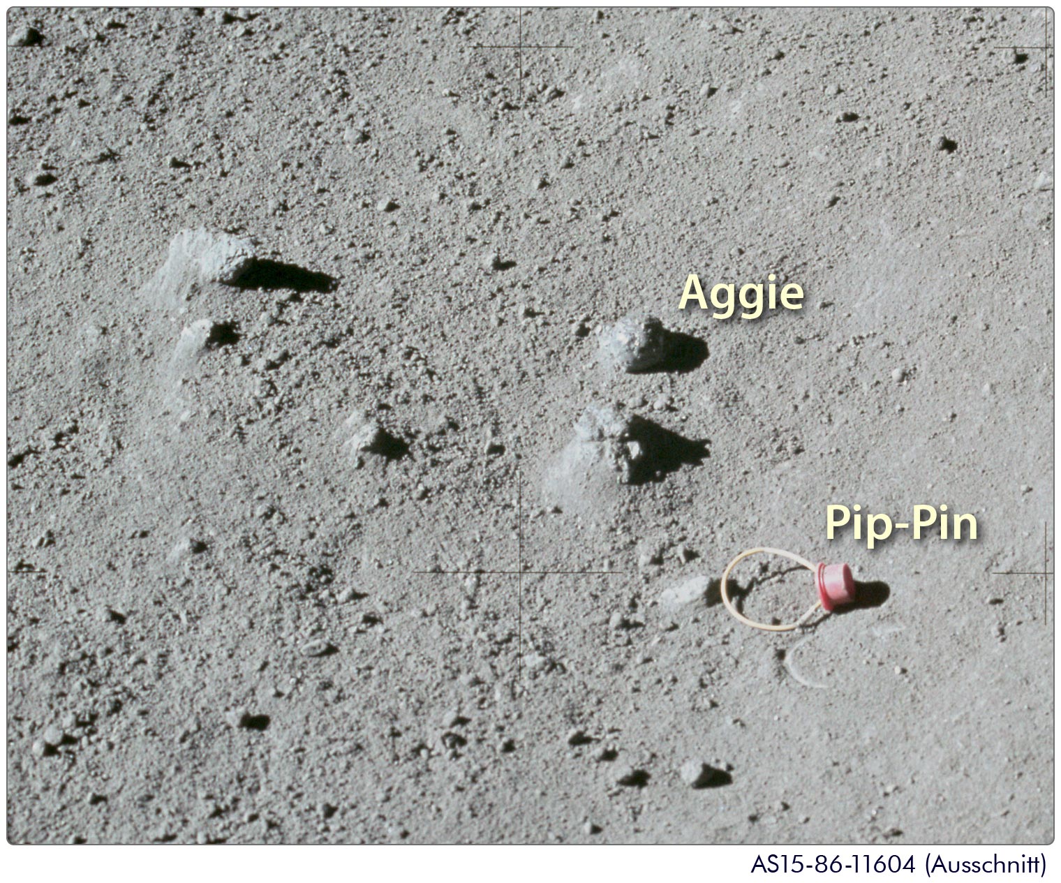 Scott: Diese Frage kam natürlich aus dem Nebenraum, von Jim Lovell, er war bei unserer Mission der Sprecher im Nebenraum. Die Leute hörten, wie ich mit Joe über Krater sprach, und über seinen Kopfhörer kam die Aufforderung: