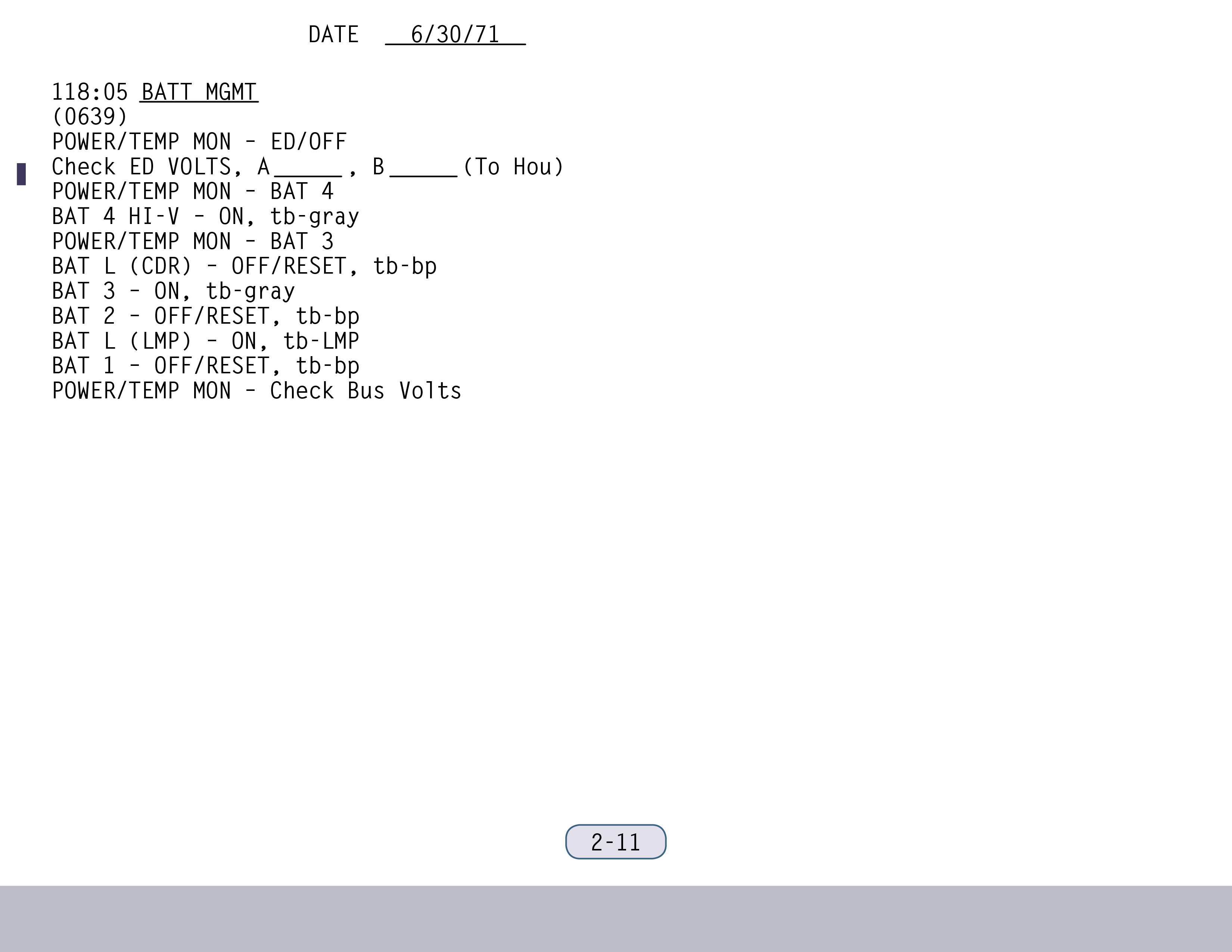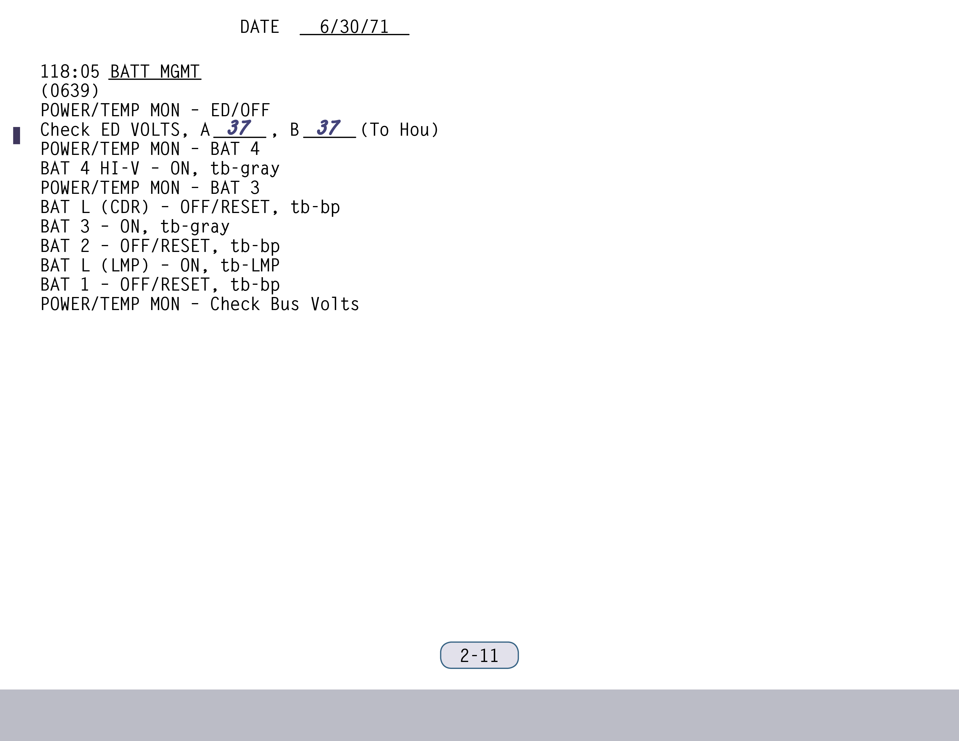 Allen: Falcon, was die Frage zum Batteriewechsel betrifft. Wir möchten darum bitten, den Wechsel zu dem Zeitpunkt durchzuführen, der in der Checkliste steht.