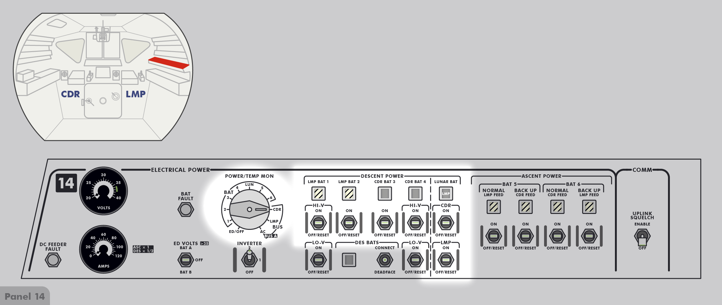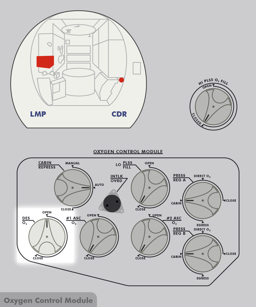 Irwin: Okay. Verstanden. Landestufe O2 ist Geschlossen. (ECS-Paneel)