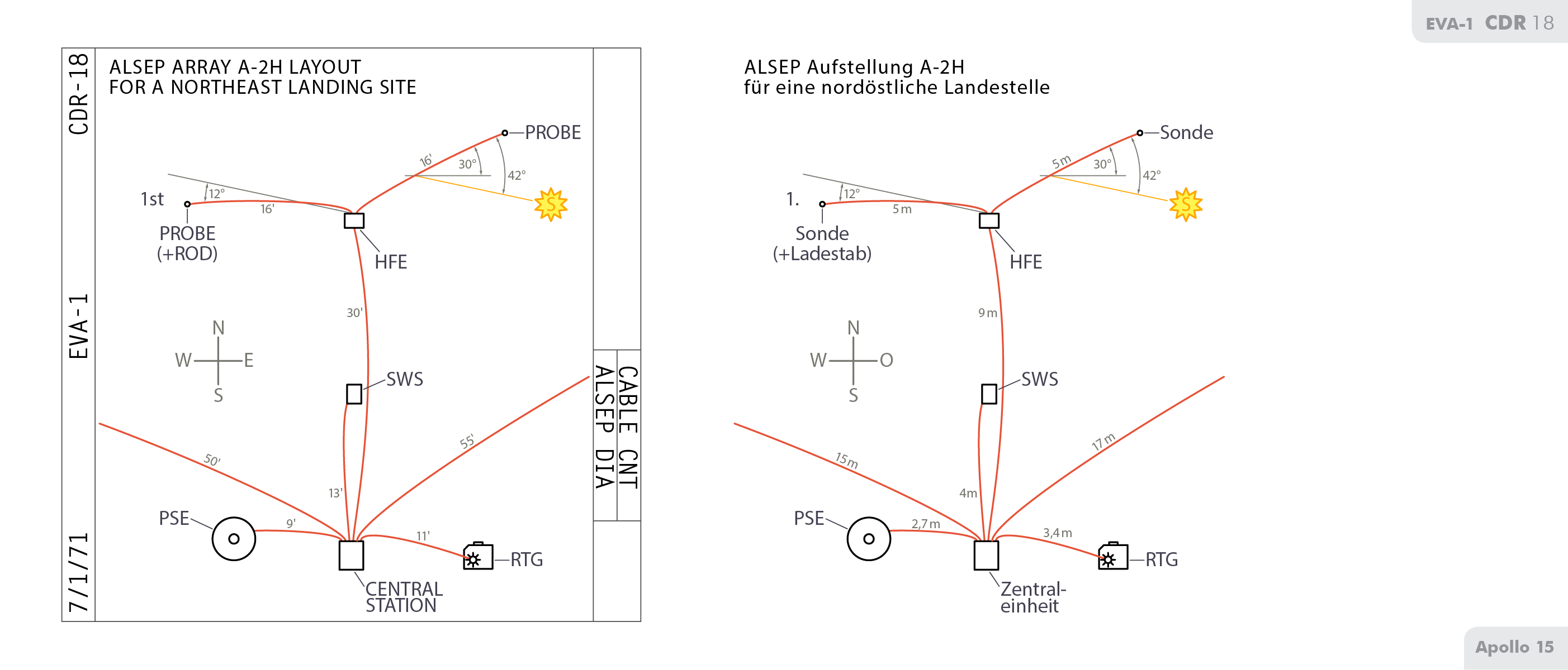 ALSEPApollo Lunar Surface Experiments Package auf CDR-18 und LMP-17/LMP-18 in den Manschetten‑Checklisten.