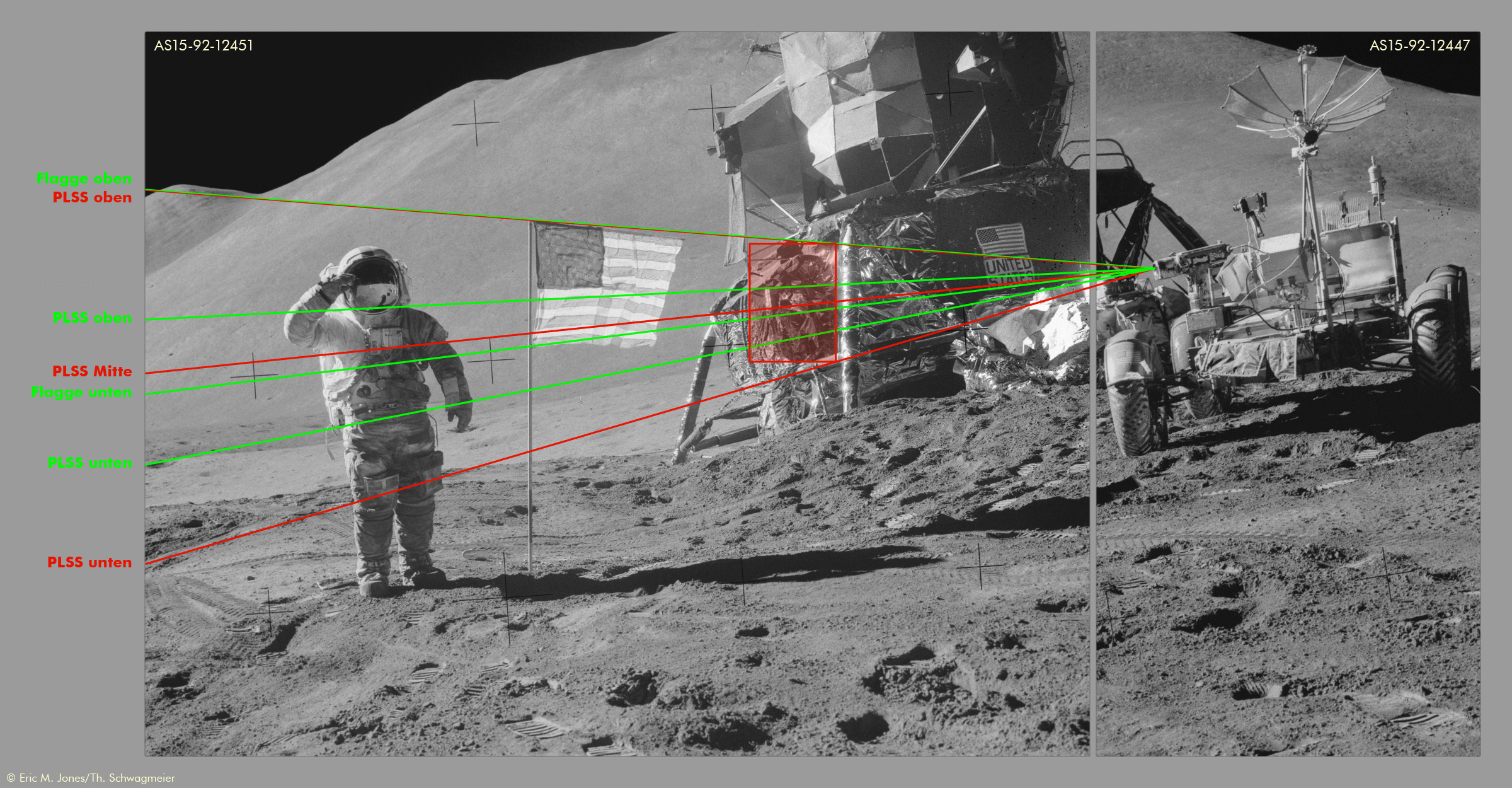 Scott: Ich steige gleich ein, Jim. Bin gerade dabei, Fernsehkamera und Antenne in Reiseposition zu bringen. (lange Pause)