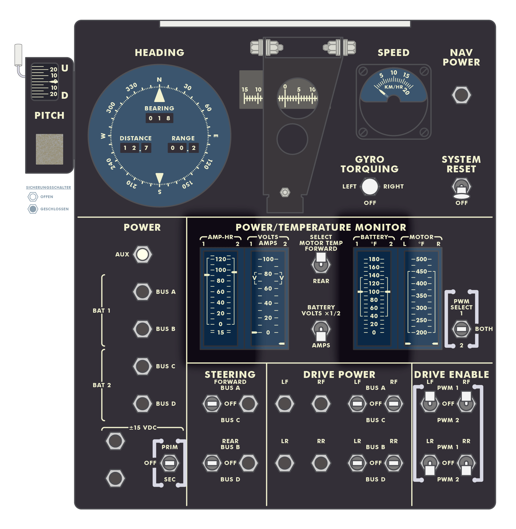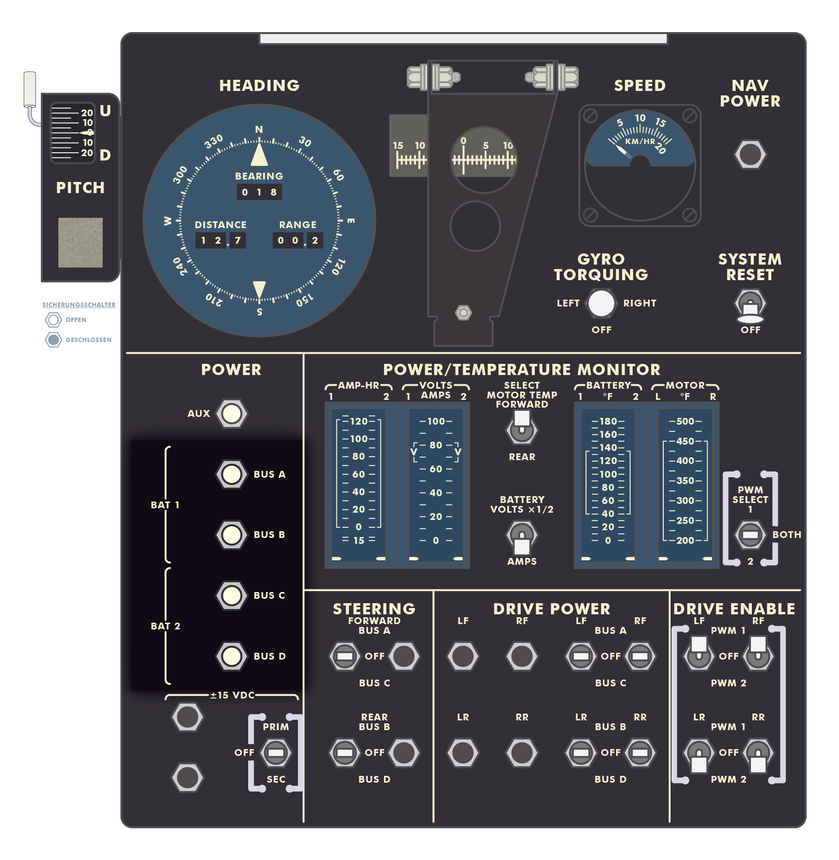 LRVLunar Roving Vehicle-Batterien sehr staubig sind, bitte abfegen, bevor du sie aufklappst.