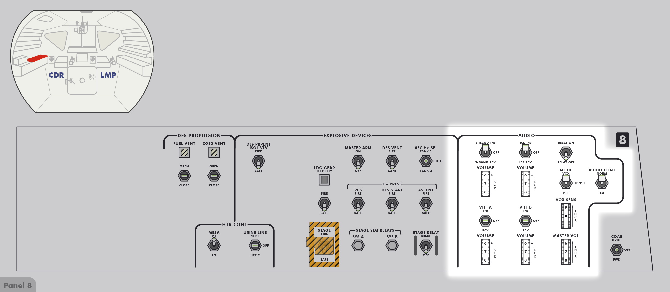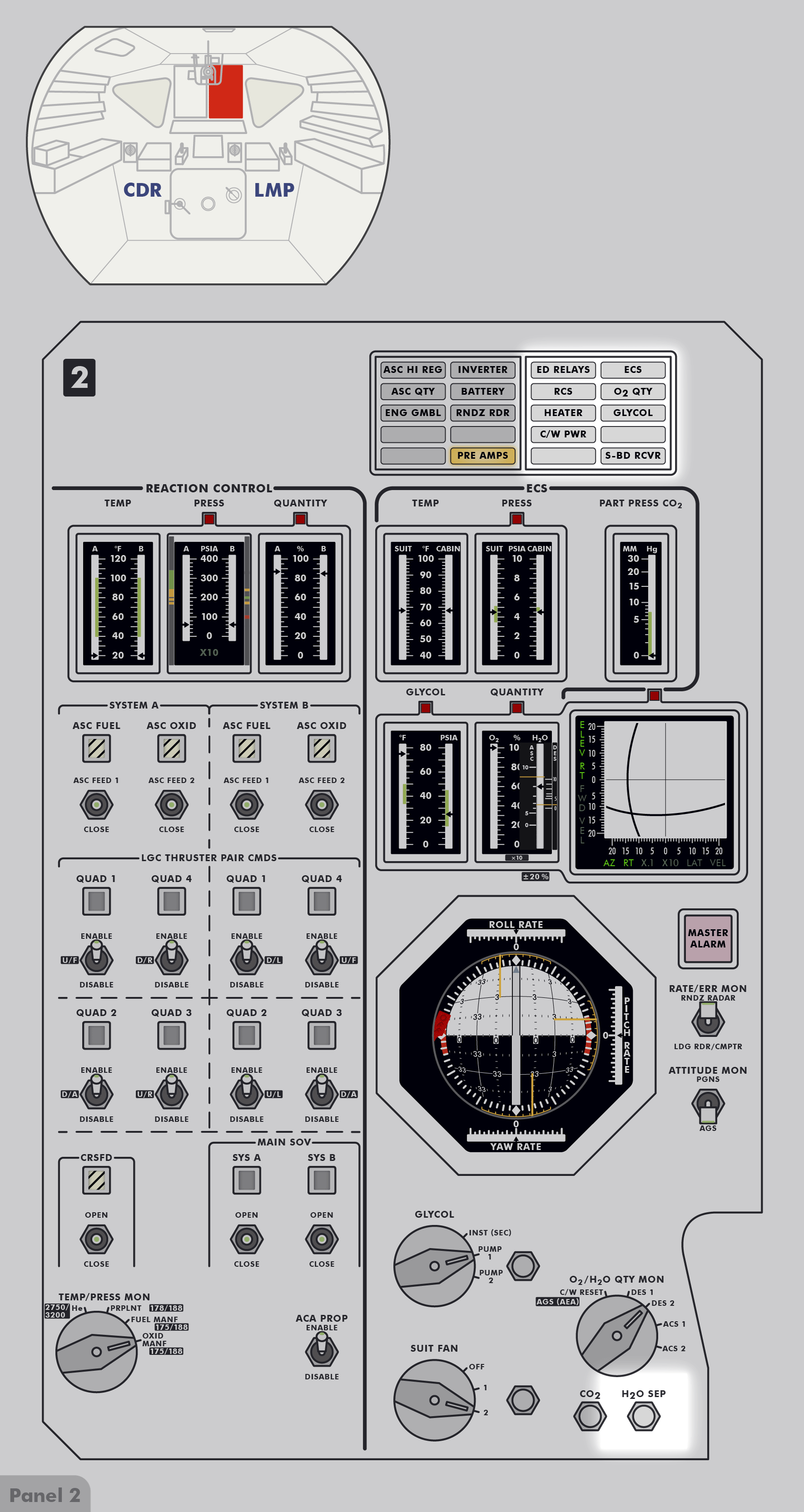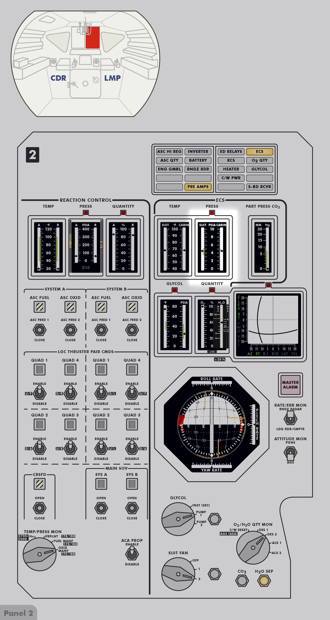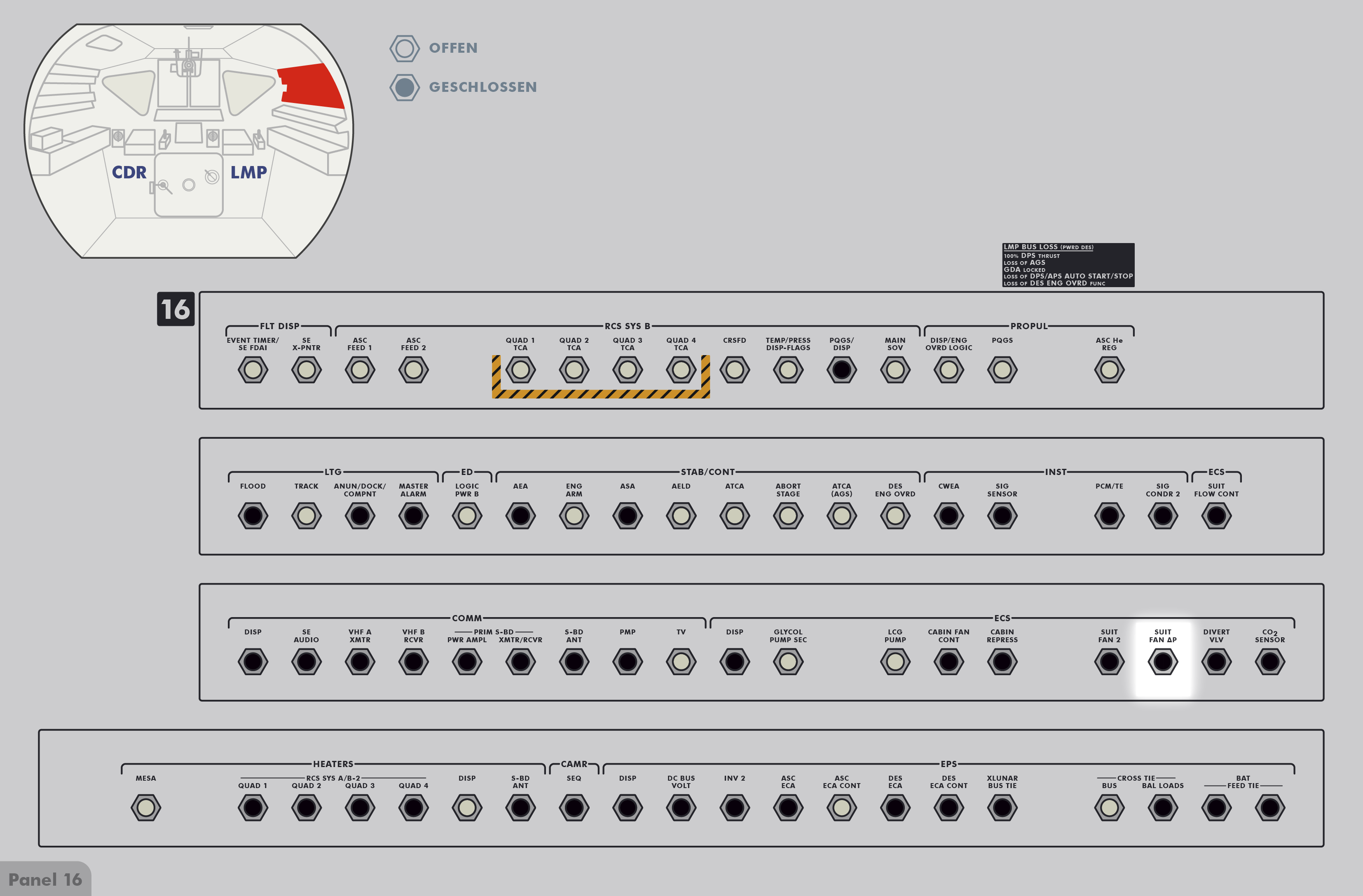 LMLunar Module-H2O anschließen. (SUR 8-1, ECS-Paneel, RCU-Ansicht [oben], RCU-Ansicht [unten])