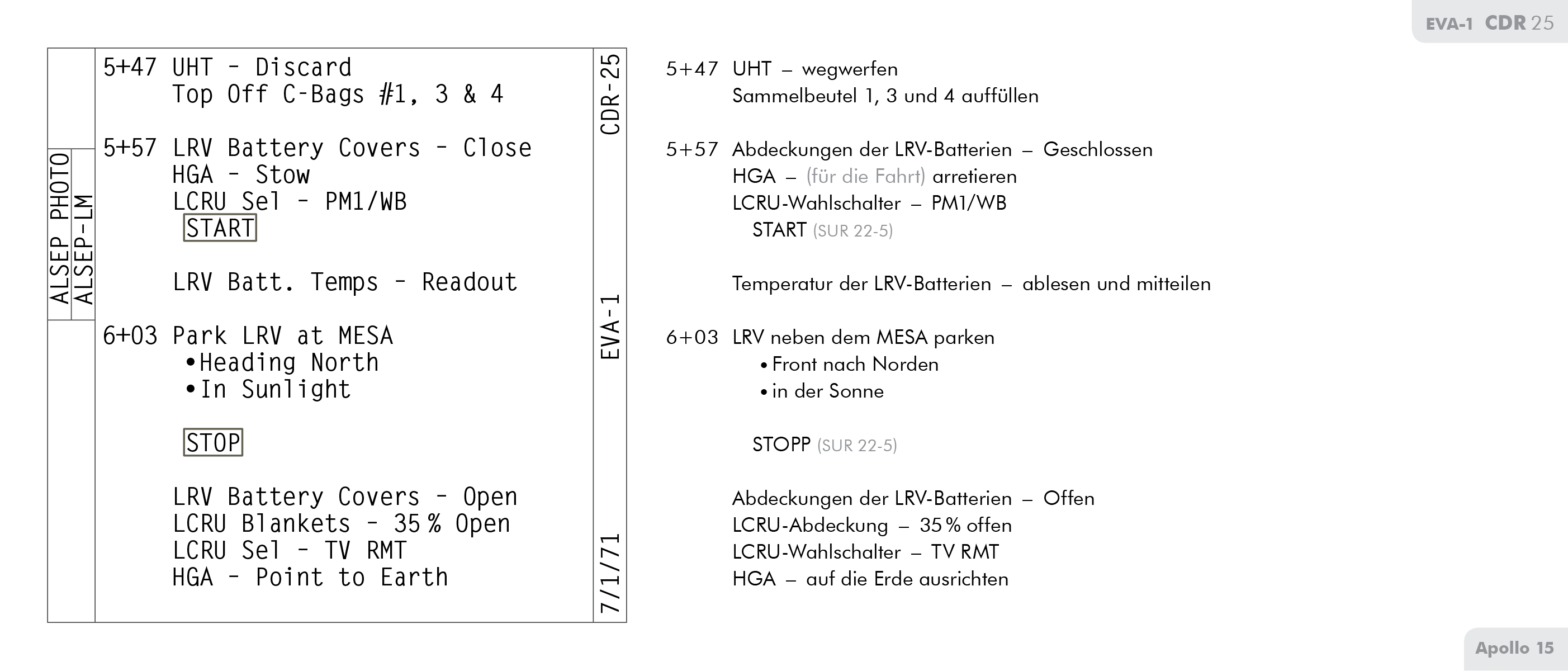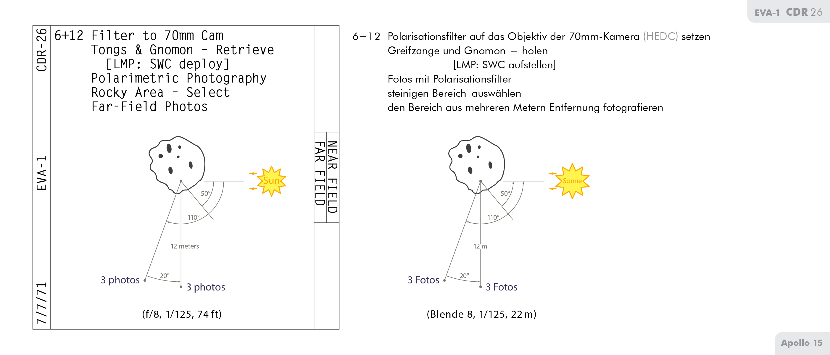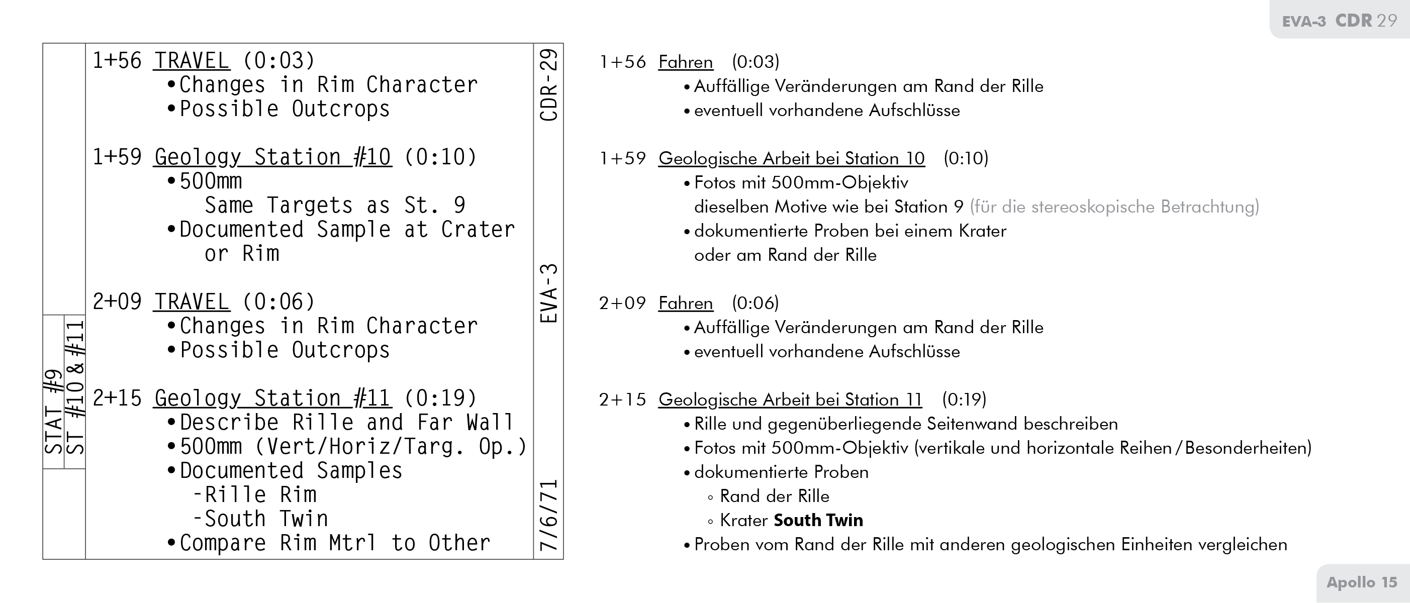 SEVAStand-Up Extravehicular Activity machte, als die Sonne um einiges tiefer stand. Einzelheiten dazu finden sich im Vorläufigen wissenschaftlichen Bericht zu Apollo 15 (Apollo 15 Preliminary Science Report) ab Seite 5-17.