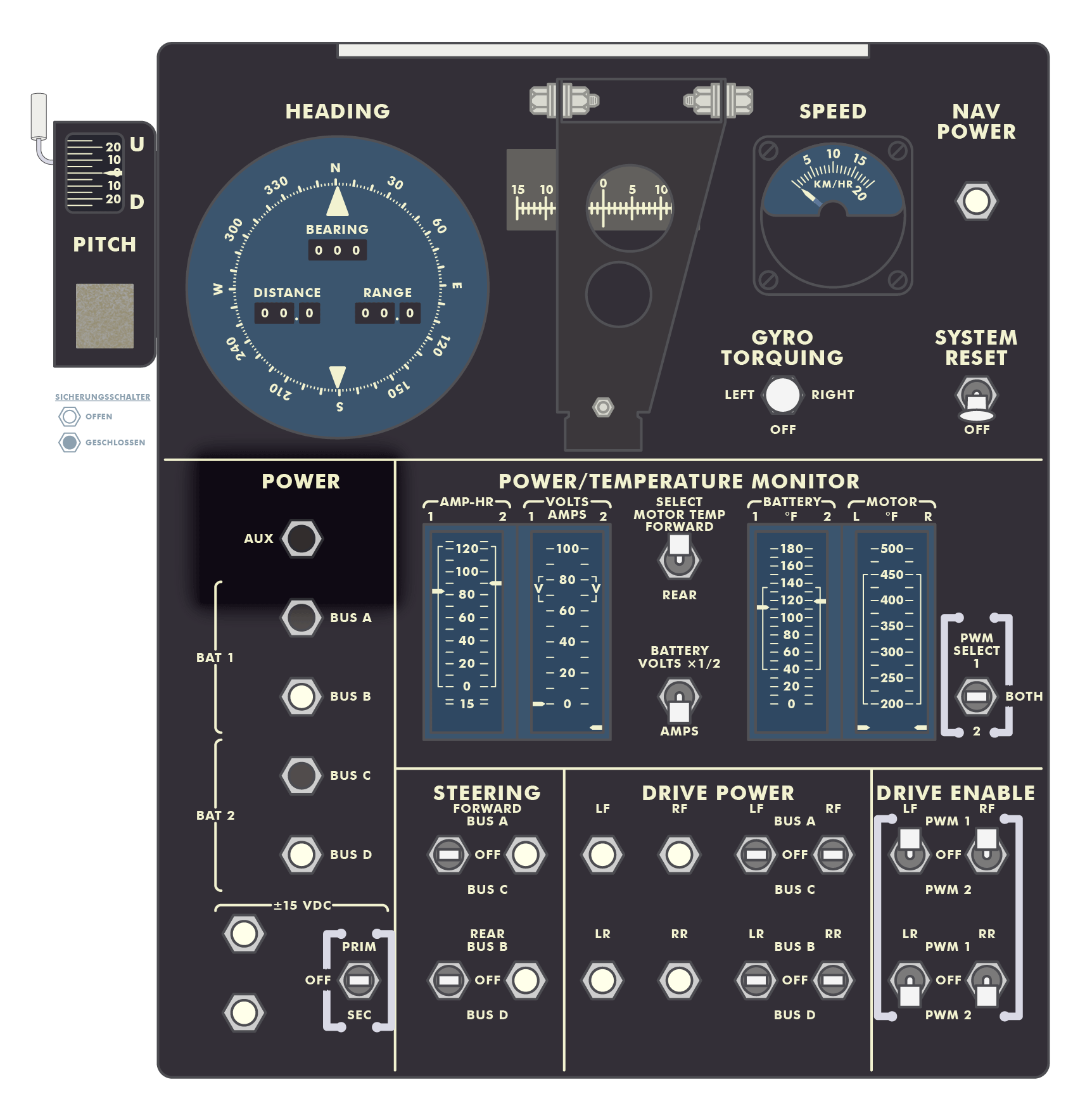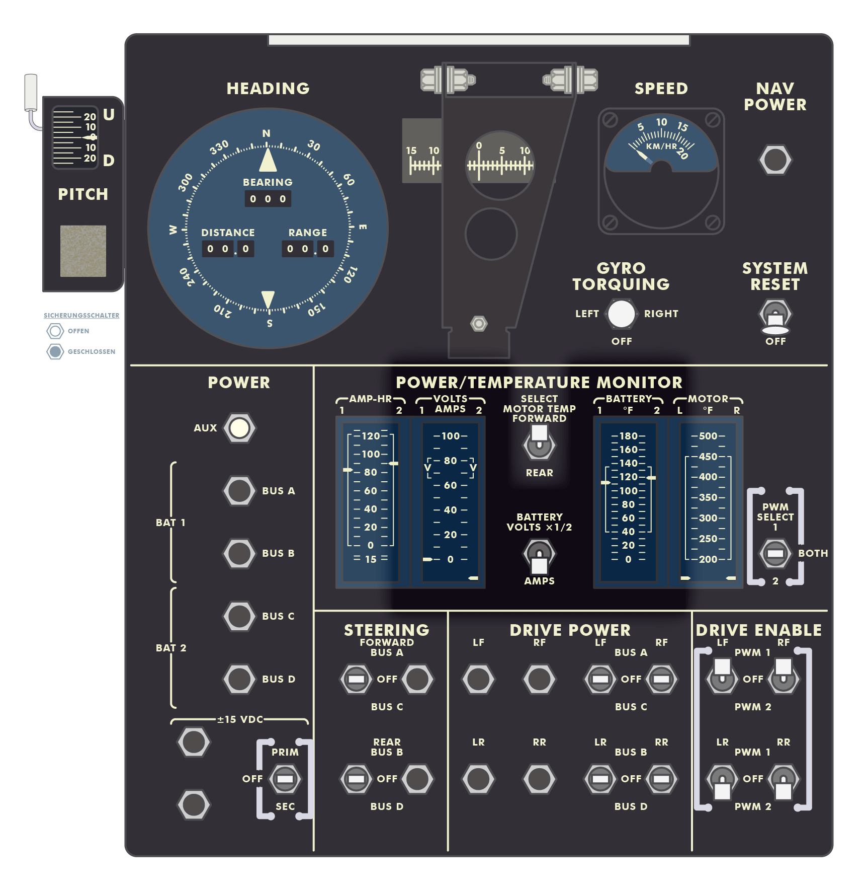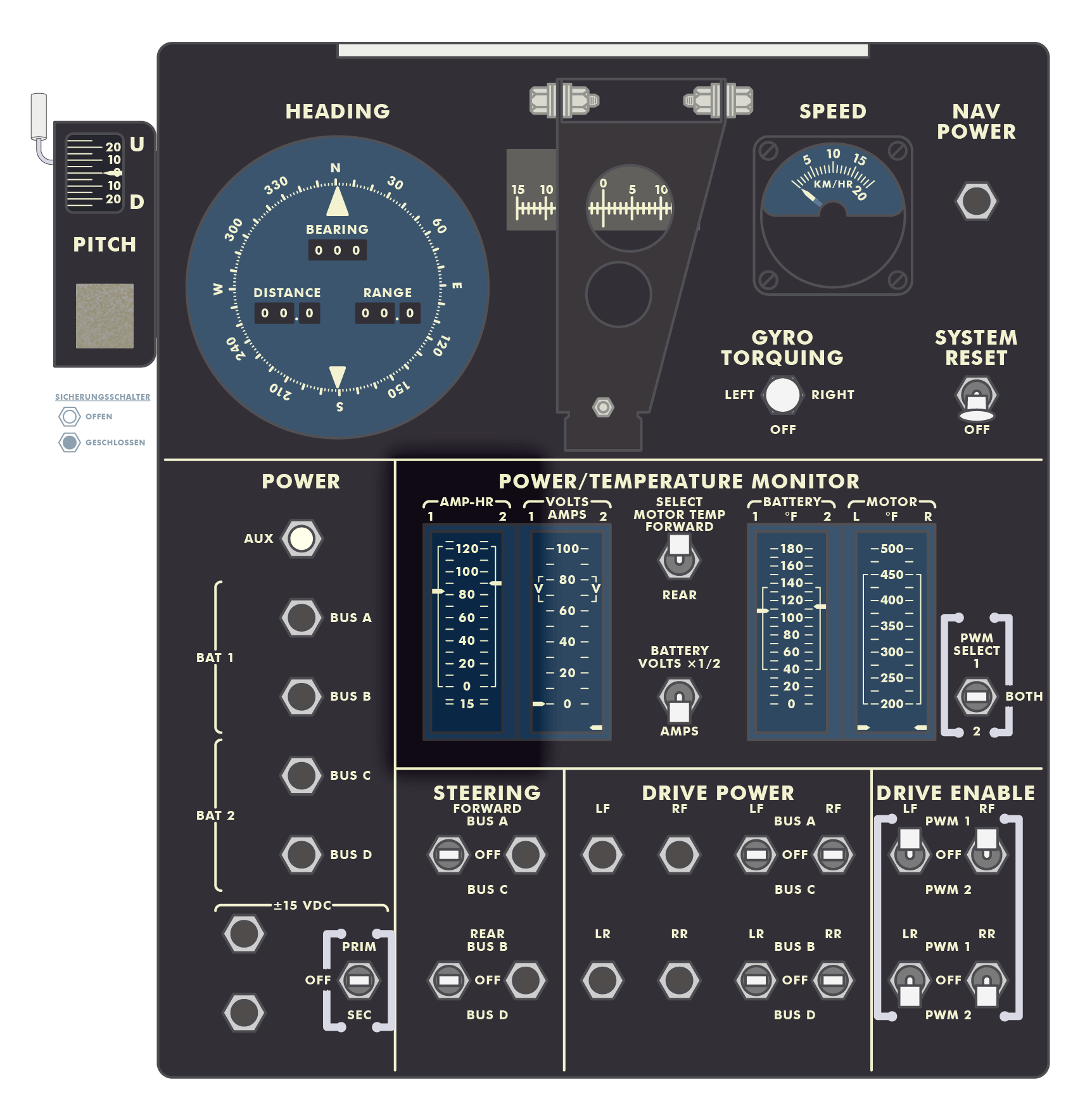 Scott: Ich versuche es. (lange Pause) (zählt beim Ertasten die Ventilhebel ab:) Kühlung. Sauerstoff. Wasser. Okay, hab es. So, jetzt …