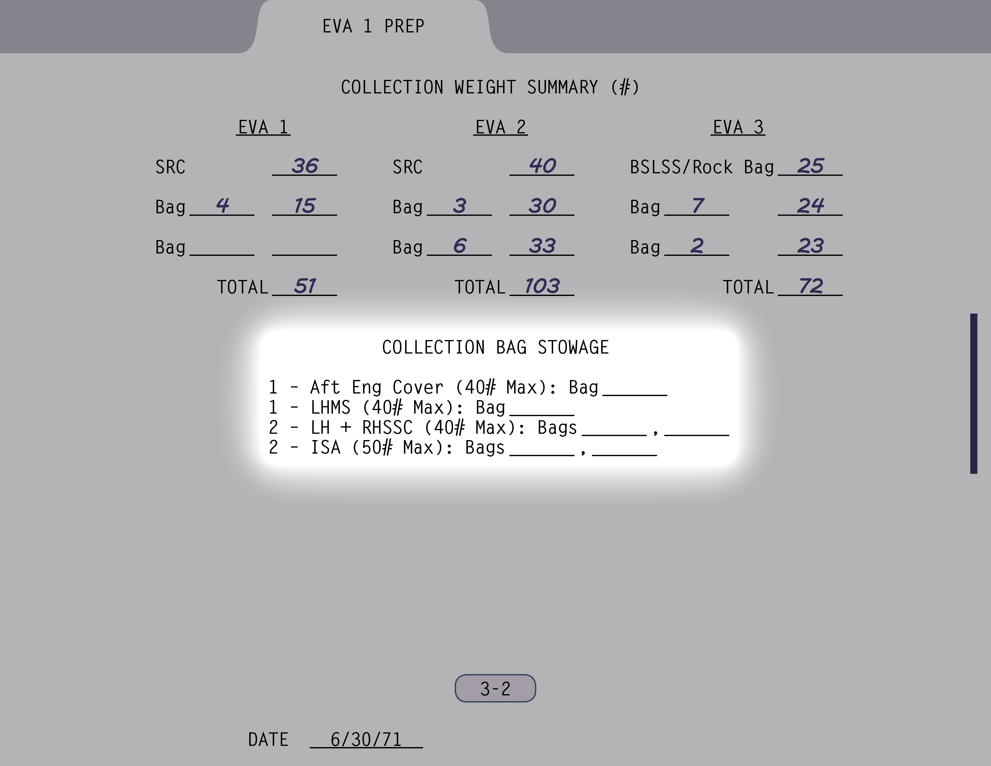 MCCMission Control Center) sagen lassen können, wo die Beutel hingehören. Dort gab es einen Plan, wovon ich aber nichts wusste.