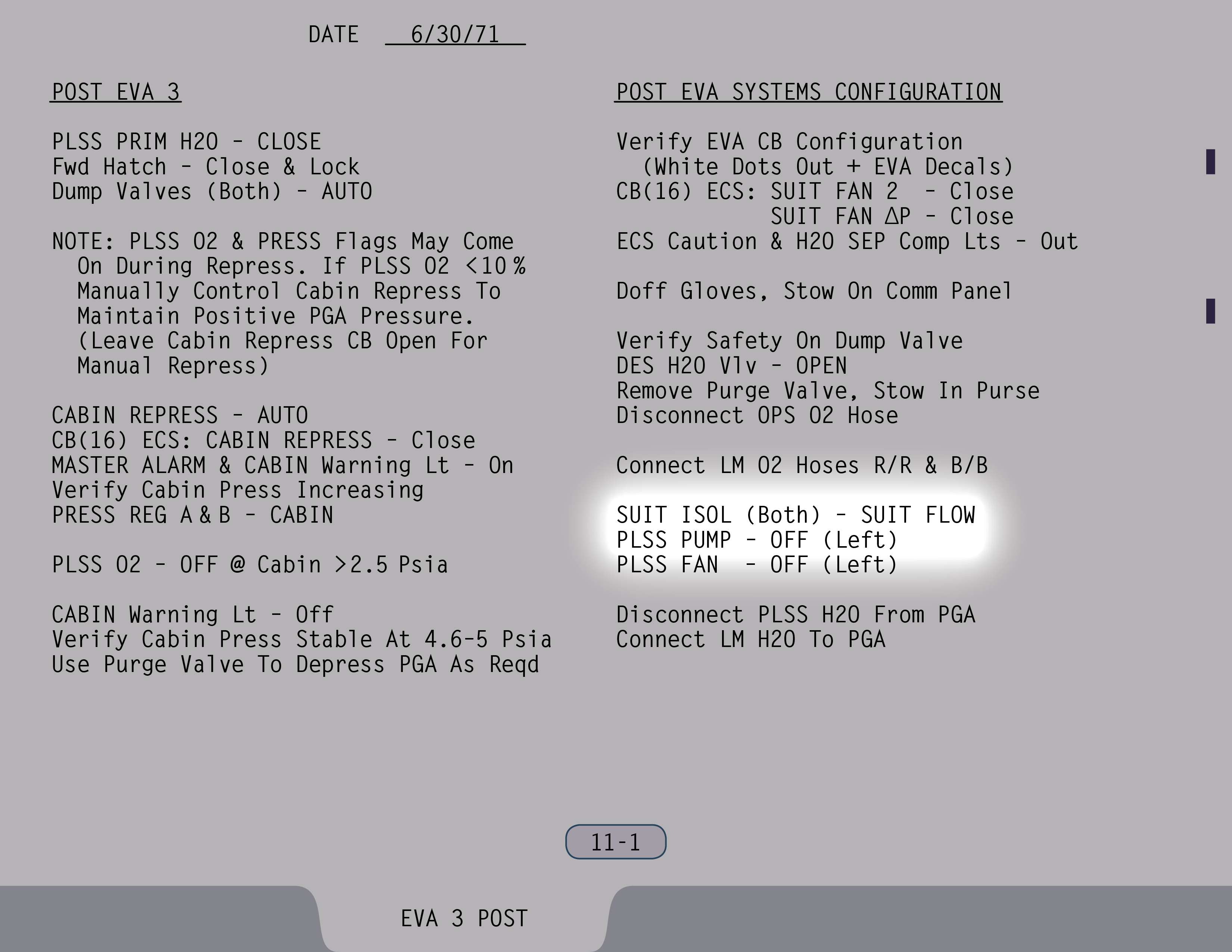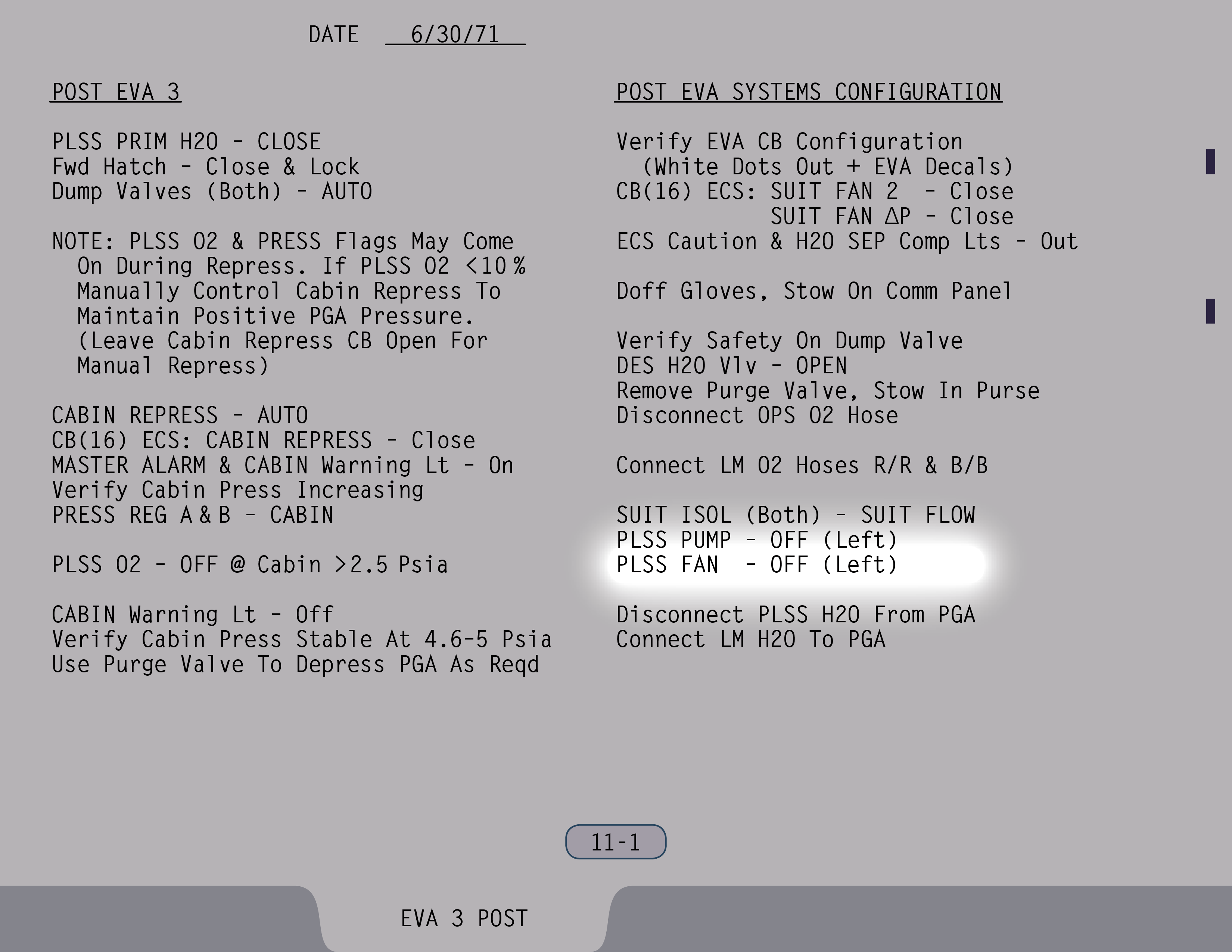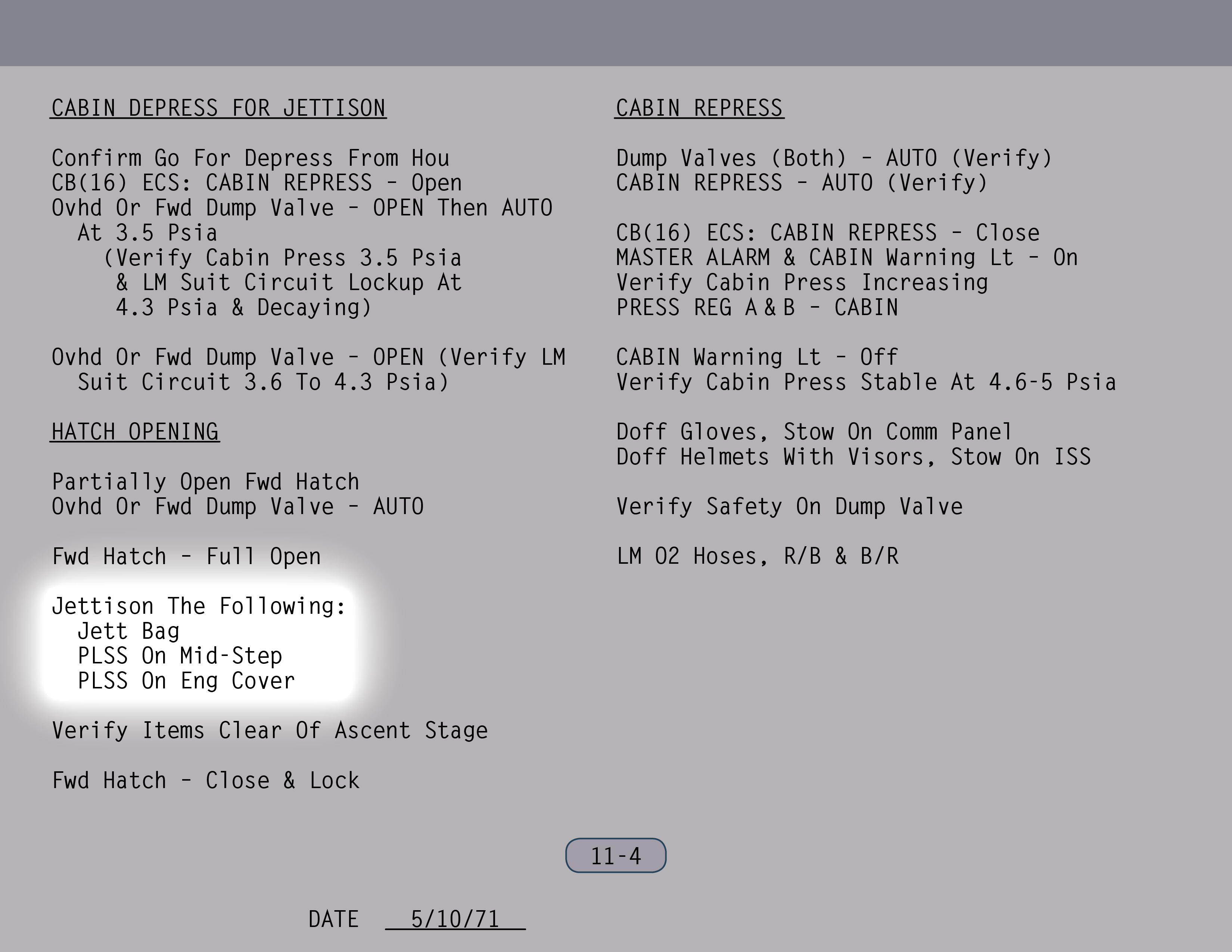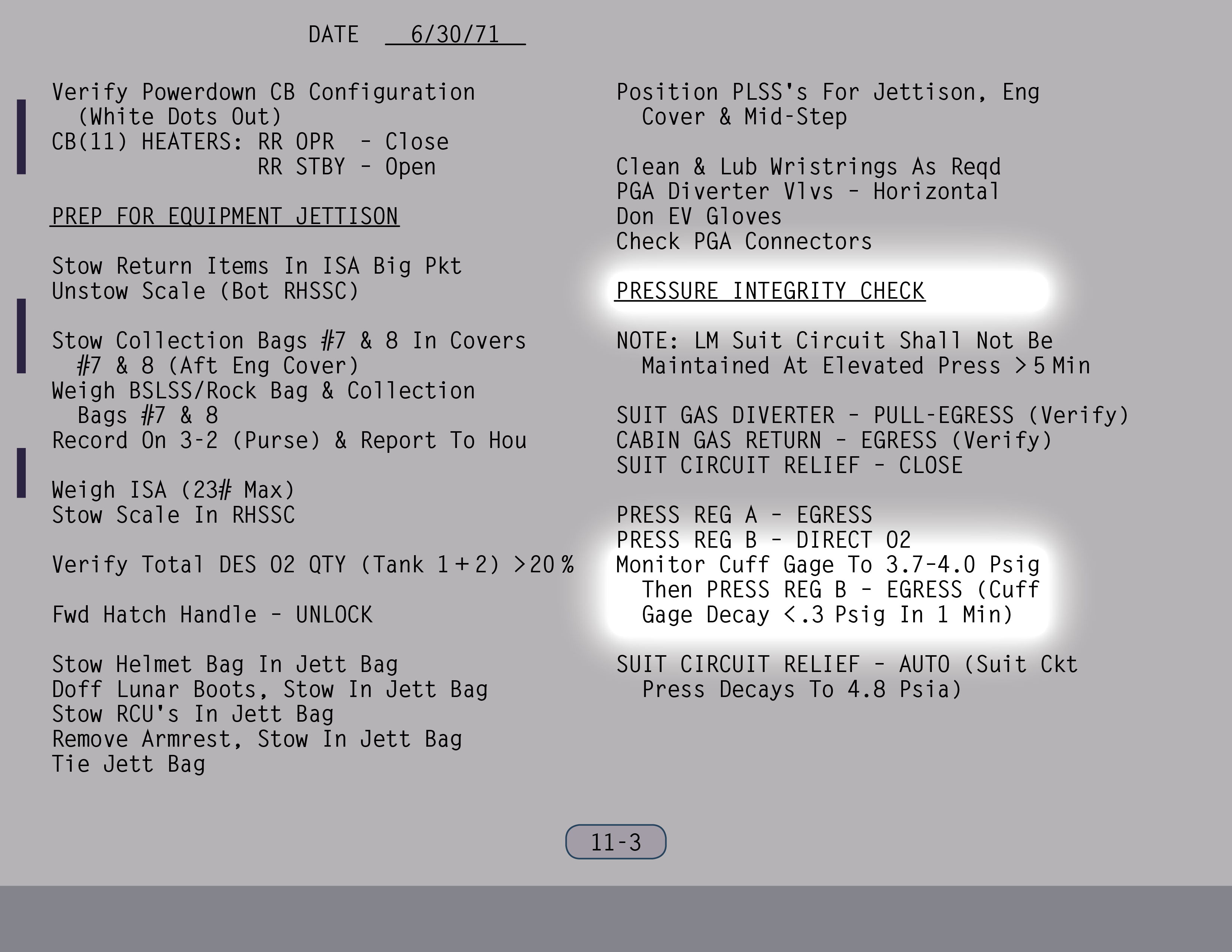 AUTOAutomatic (Ventilstellung). Ventil ist gesichert. (Pause) Die Auslassventile sollen sowieso rausgenommen werden. Ventil für Wasser aus Landestufentanks – Offen, wenn du hinkommst, Jim. (SUR 11-1)