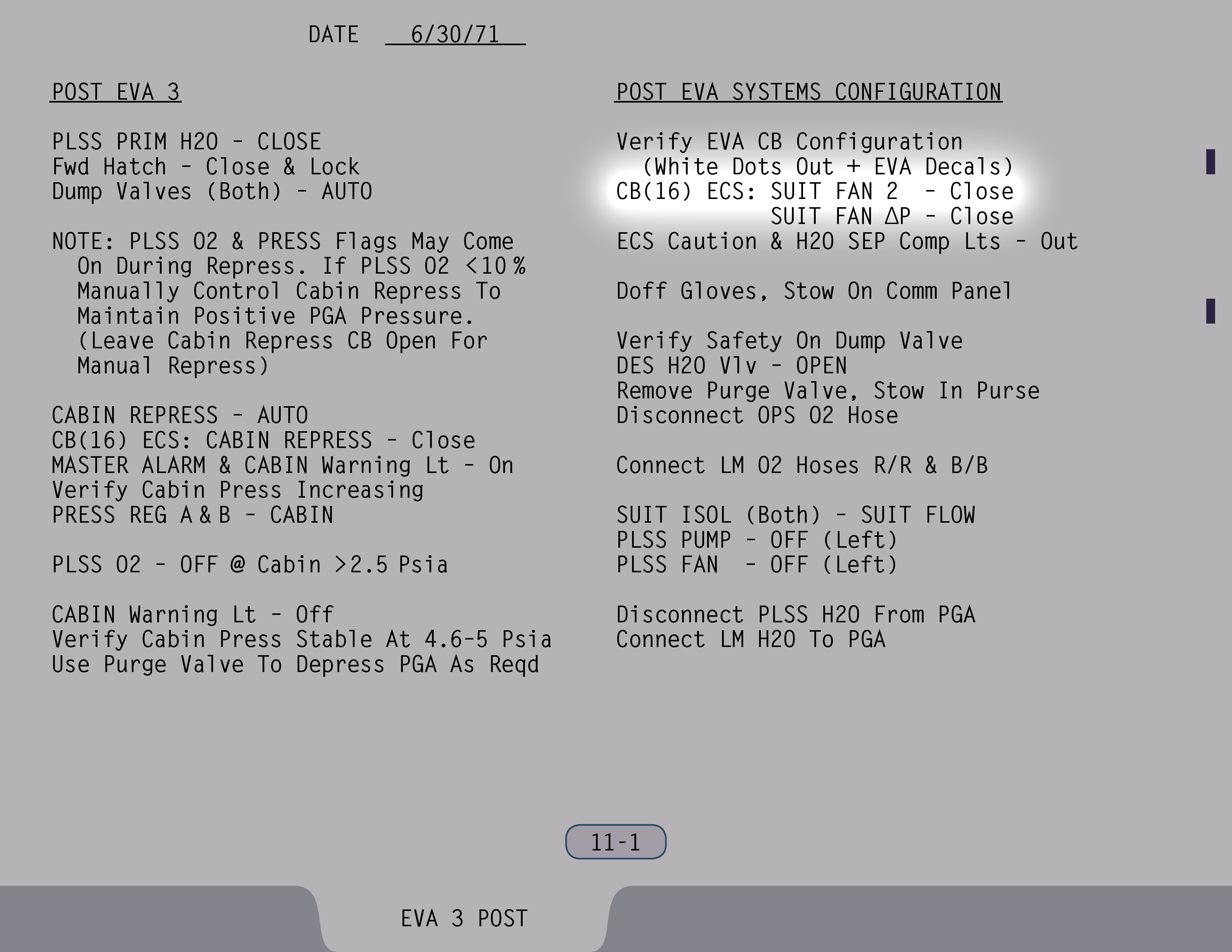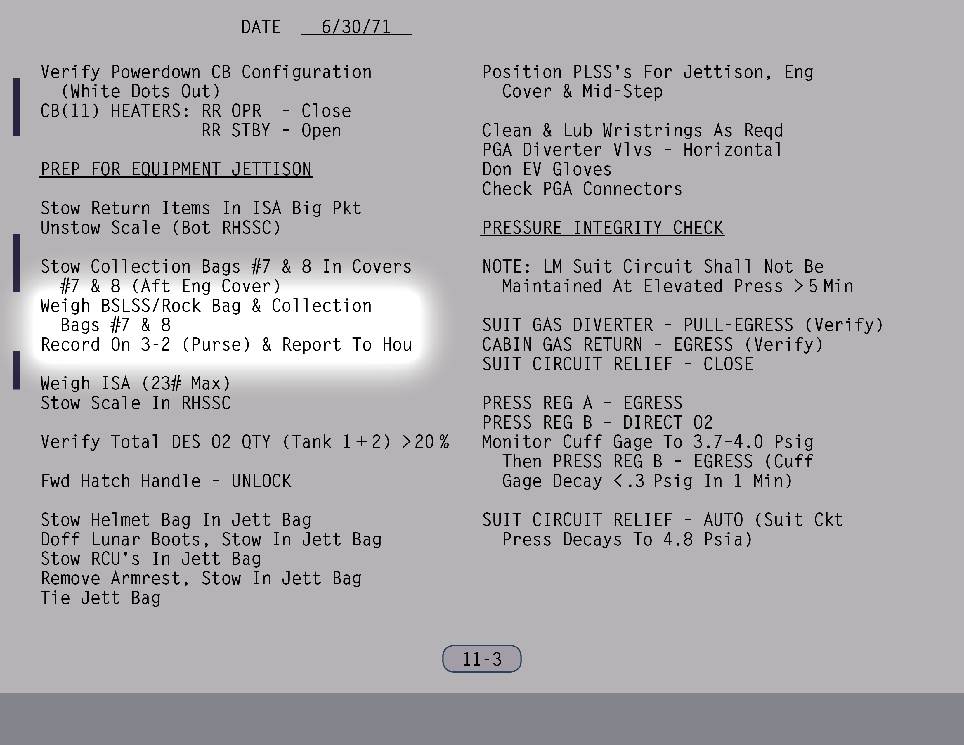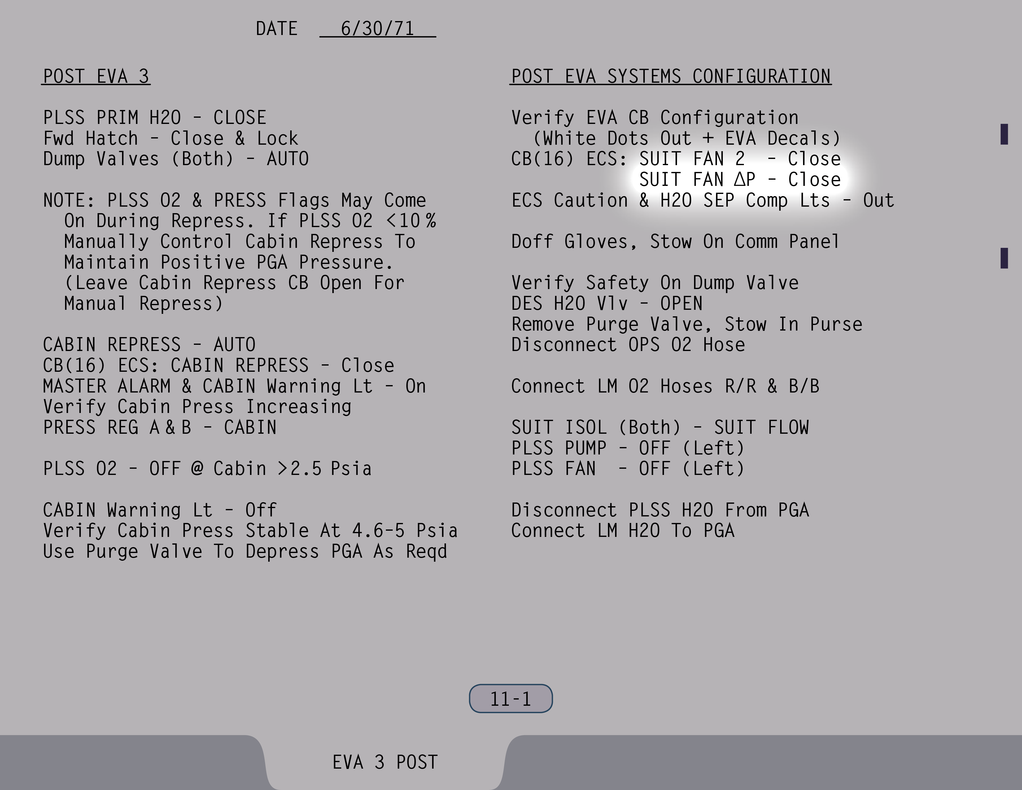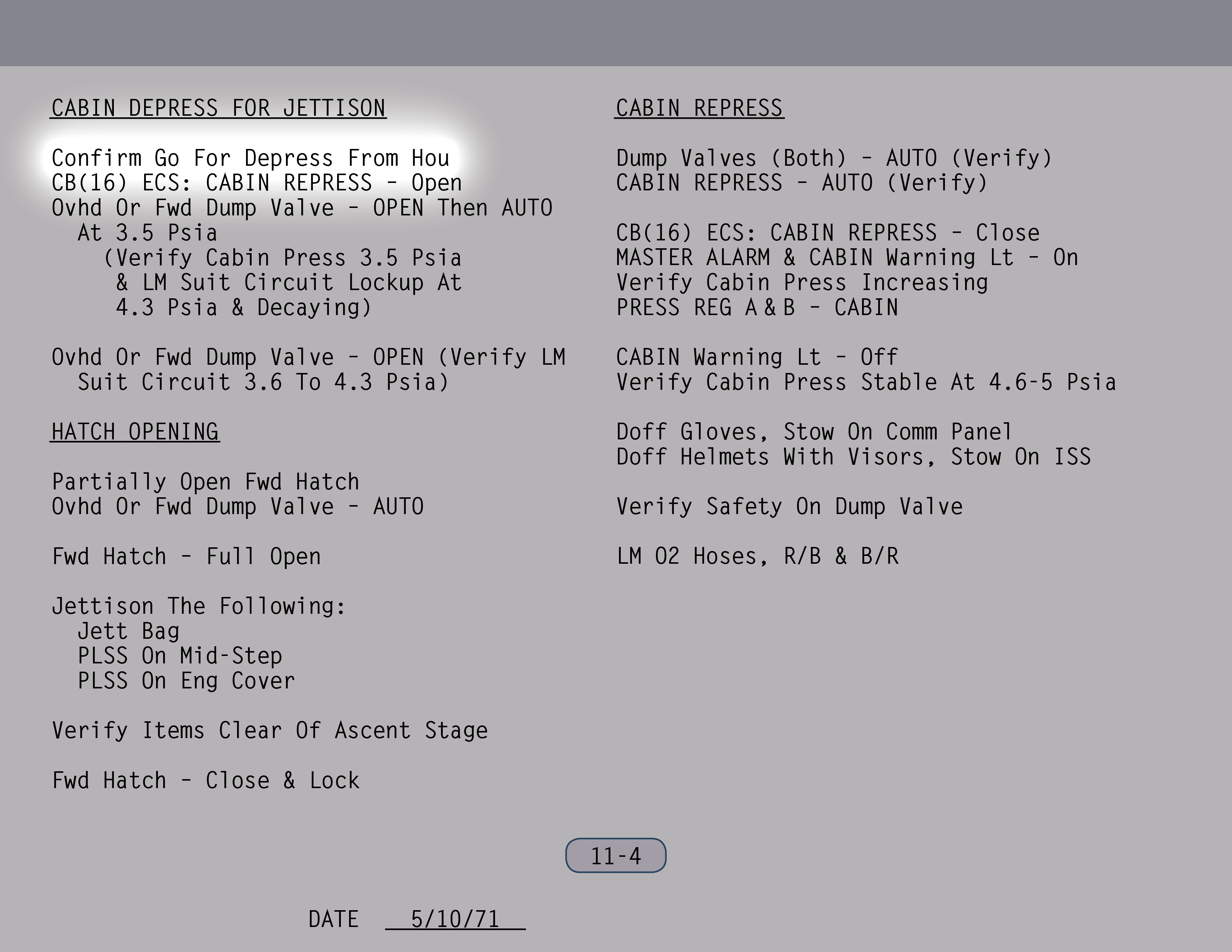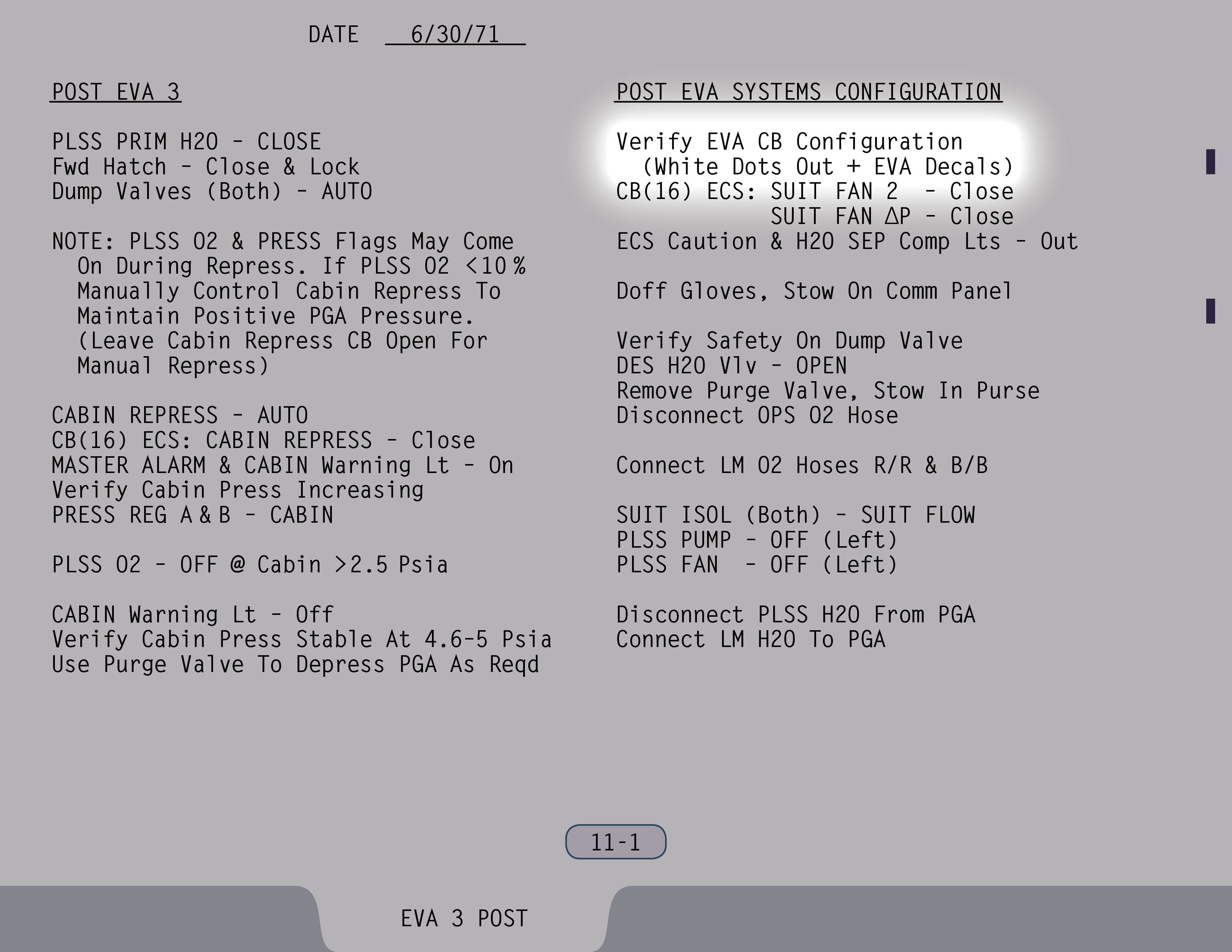 AUTOAutomatic (Ventilstellung). Ventil ist gesichert. (Pause) Die Auslassventile sollen sowieso rausgenommen werden. Ventil für Wasser aus Landestufentanks – Offen, wenn du hinkommst, Jim. (SUR 11-1)