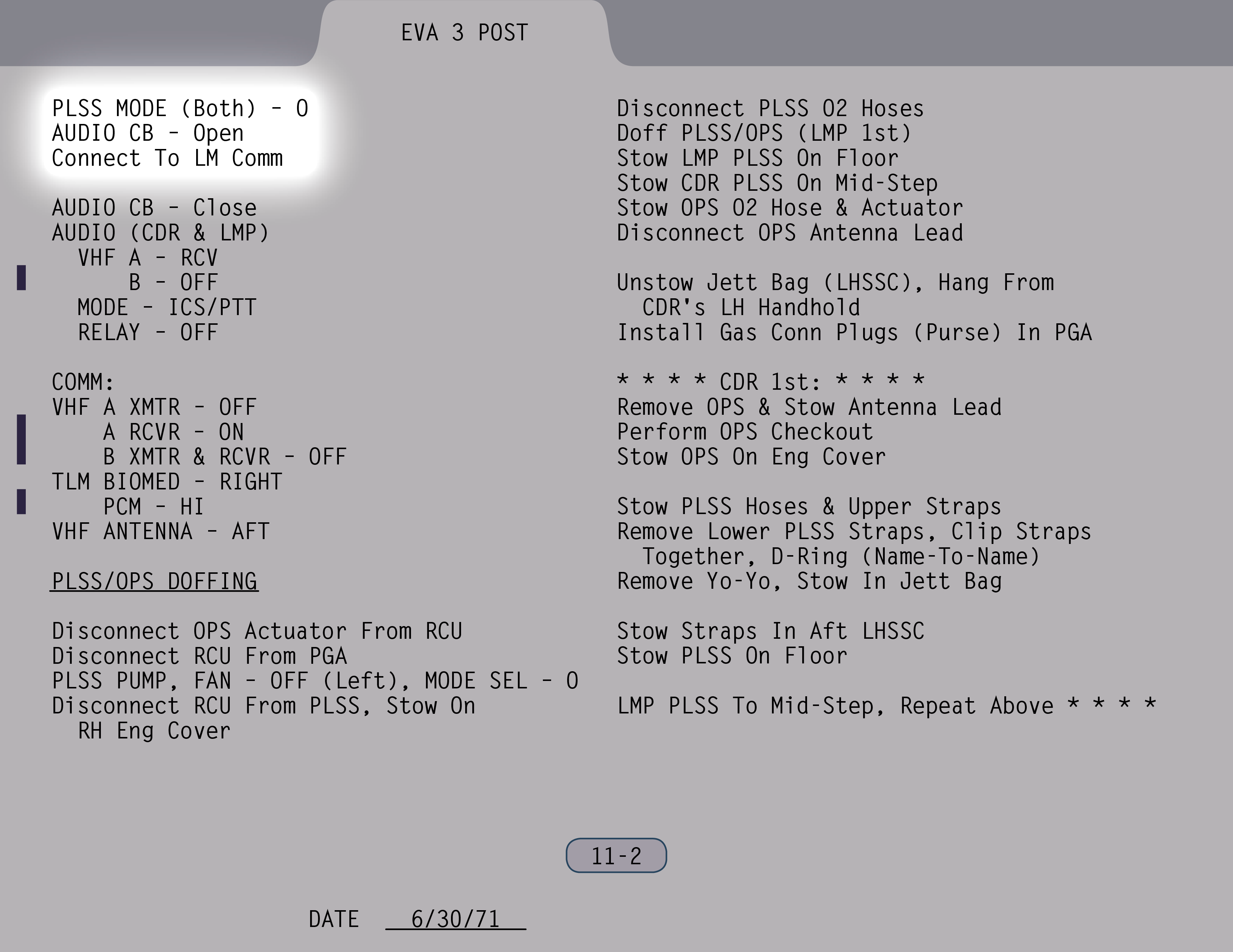 LMLunar Module-Kommunikationssystem anschließen (SUR 11-2).