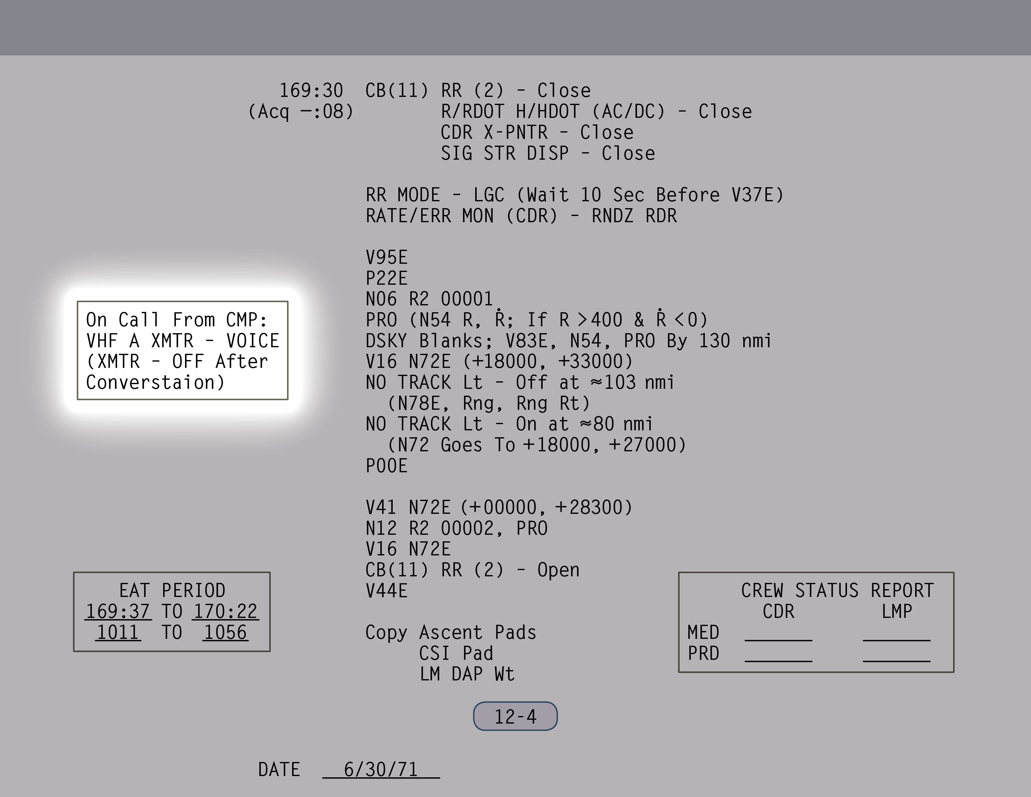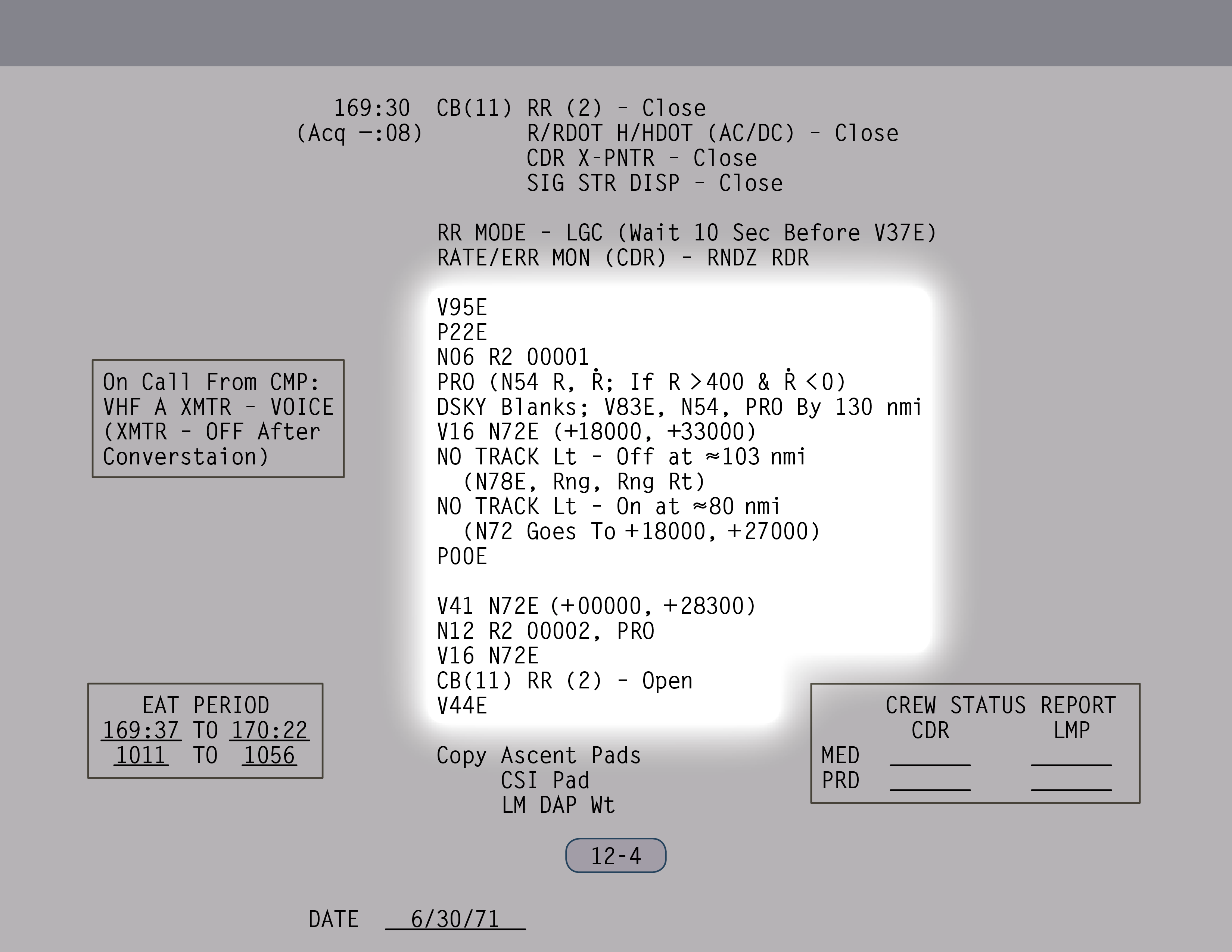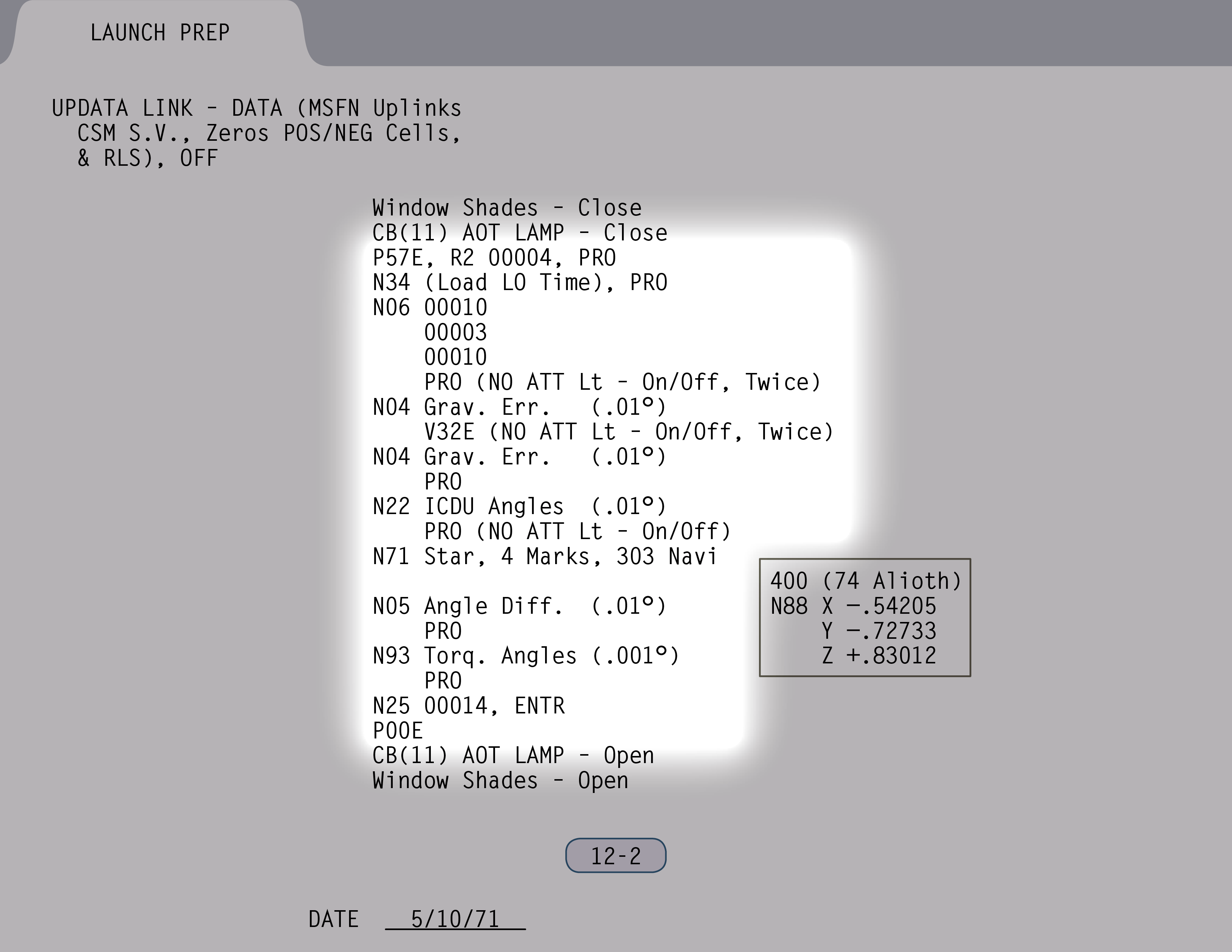 P-00Program Zero-Zero (AGC Idling) und Daten. Habt ihr. (Paneel 12)