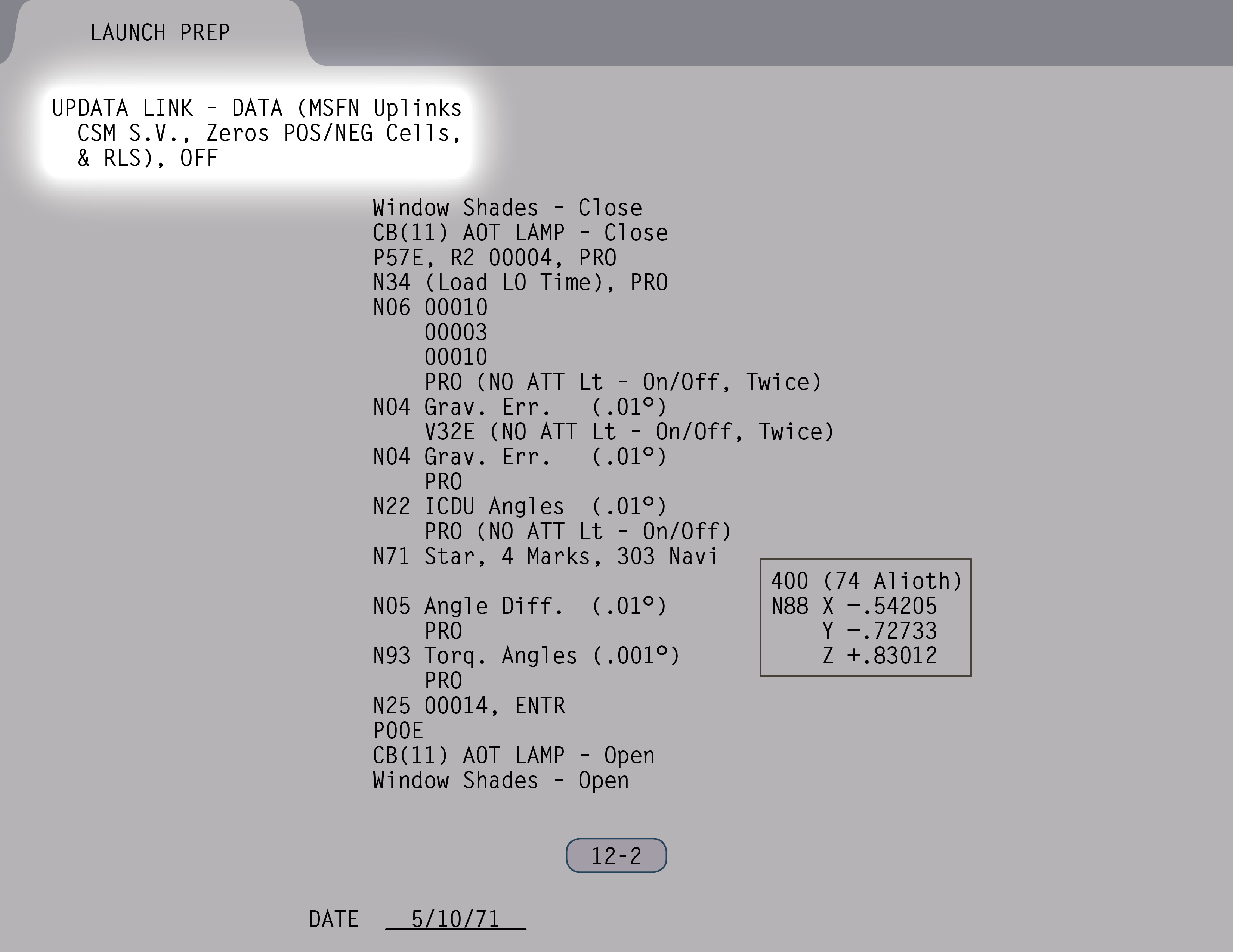 P-00Program Zero-Zero (AGC Idling) und Daten (SUR 12-2). (Pause)