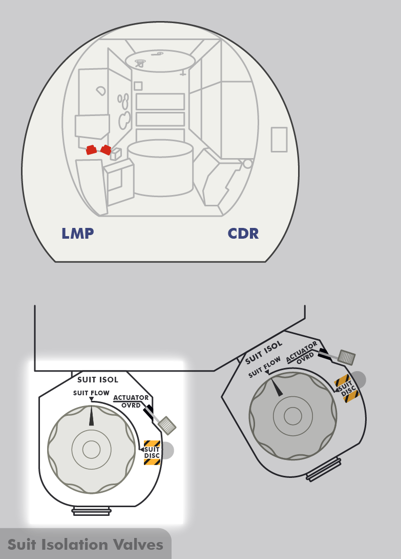LMLunar Module) ist angeschlossen und ich stelle auf Durchfluss (ECS – Sauerstoffversorgung).