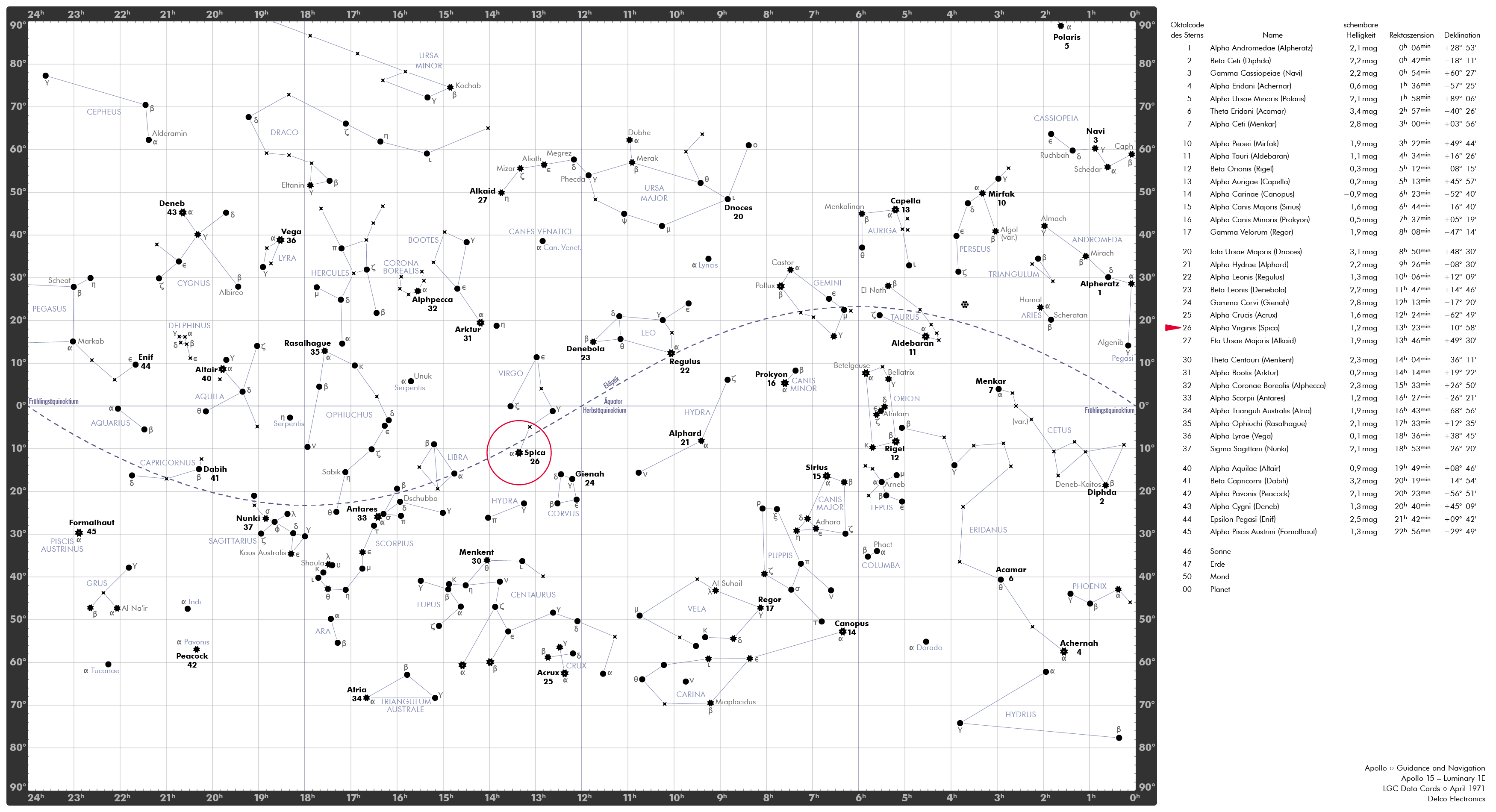 Ephemeriden sind vorausberechnete Datenreihen zu Positionen und Bewegungen des Raumschiffs.