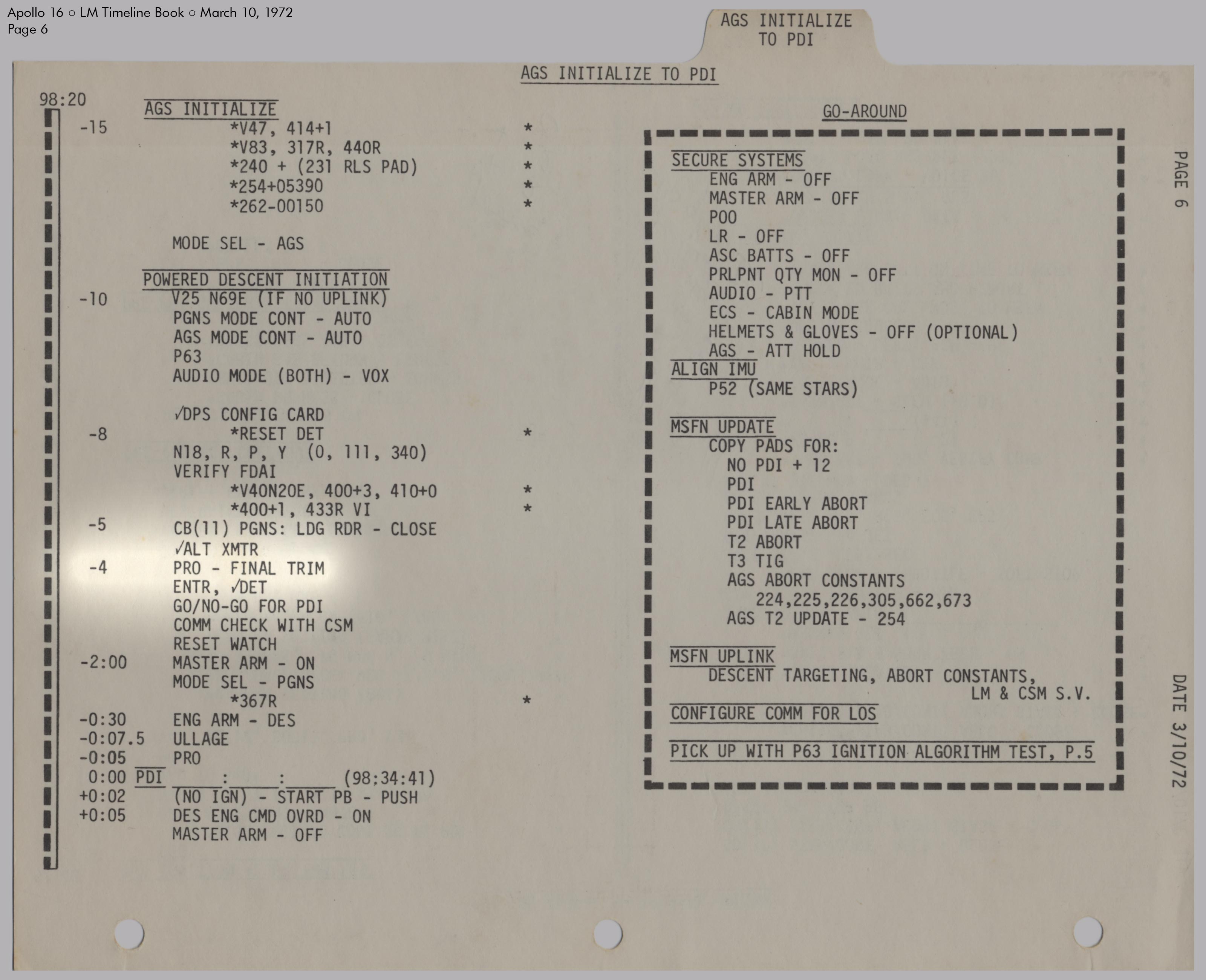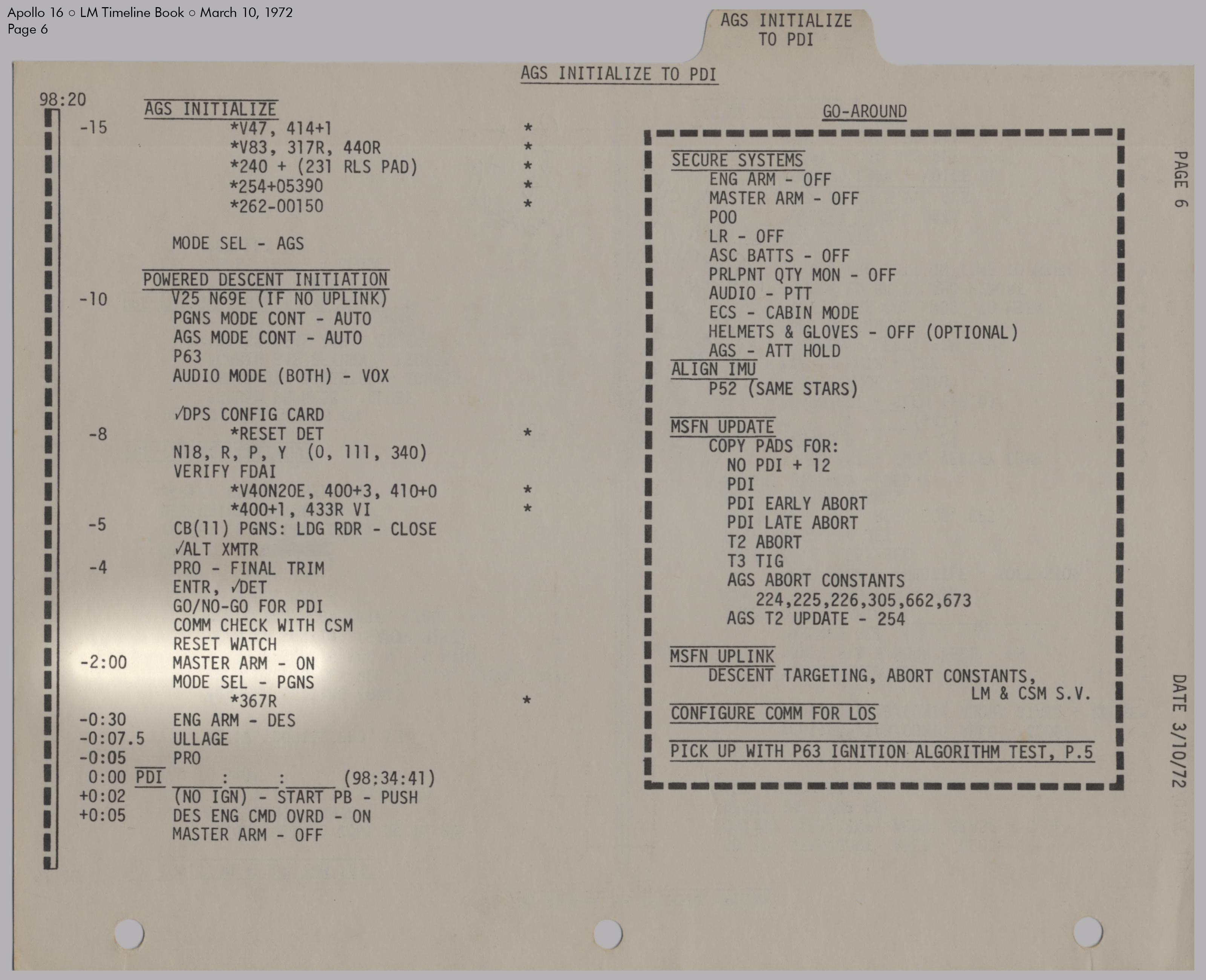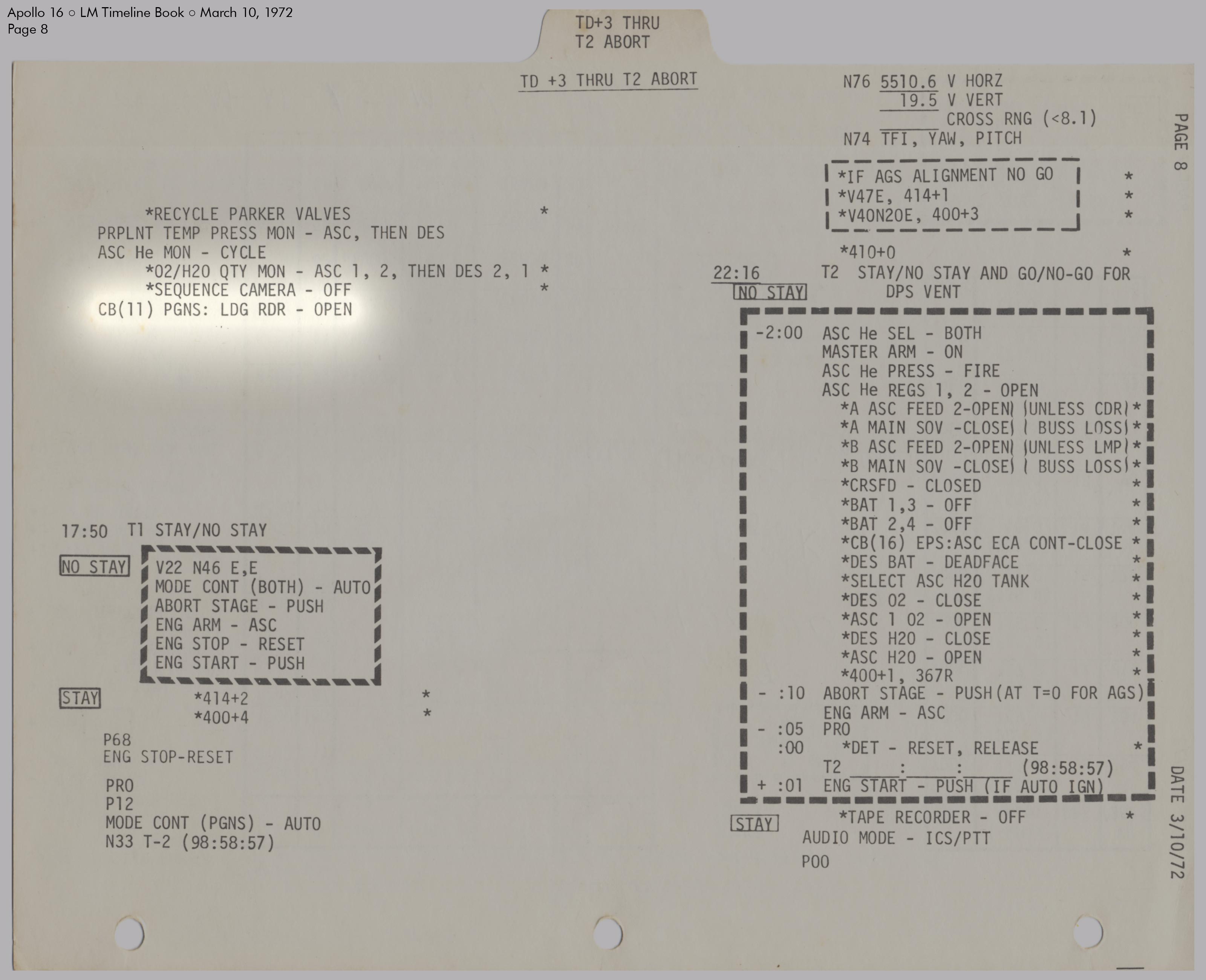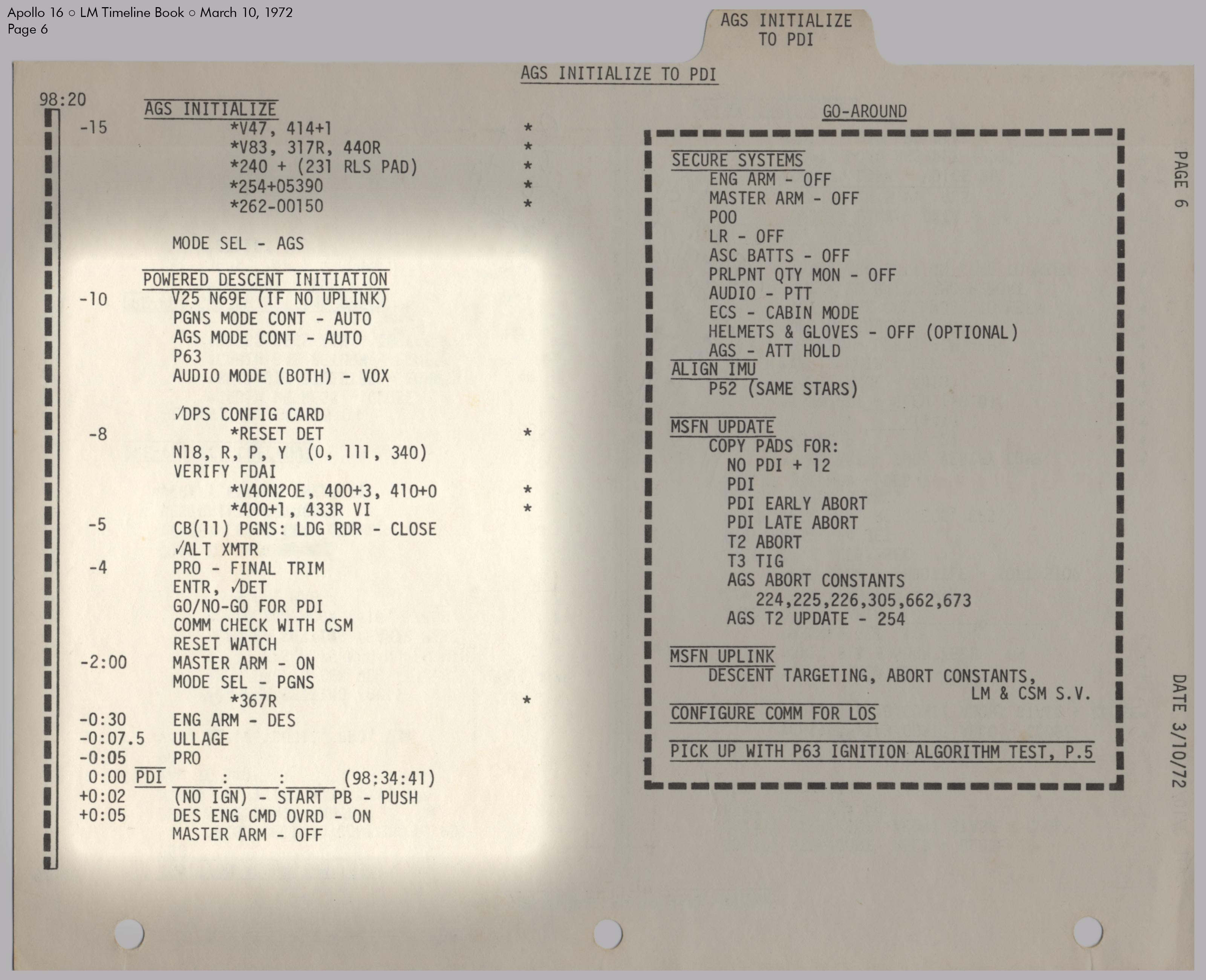 LMLunar Module schlug in ihrer Checkliste den Abschnitt für das abgesagte Landemanöver auf und konfigurierte die Systeme für den Flug im Orbit.