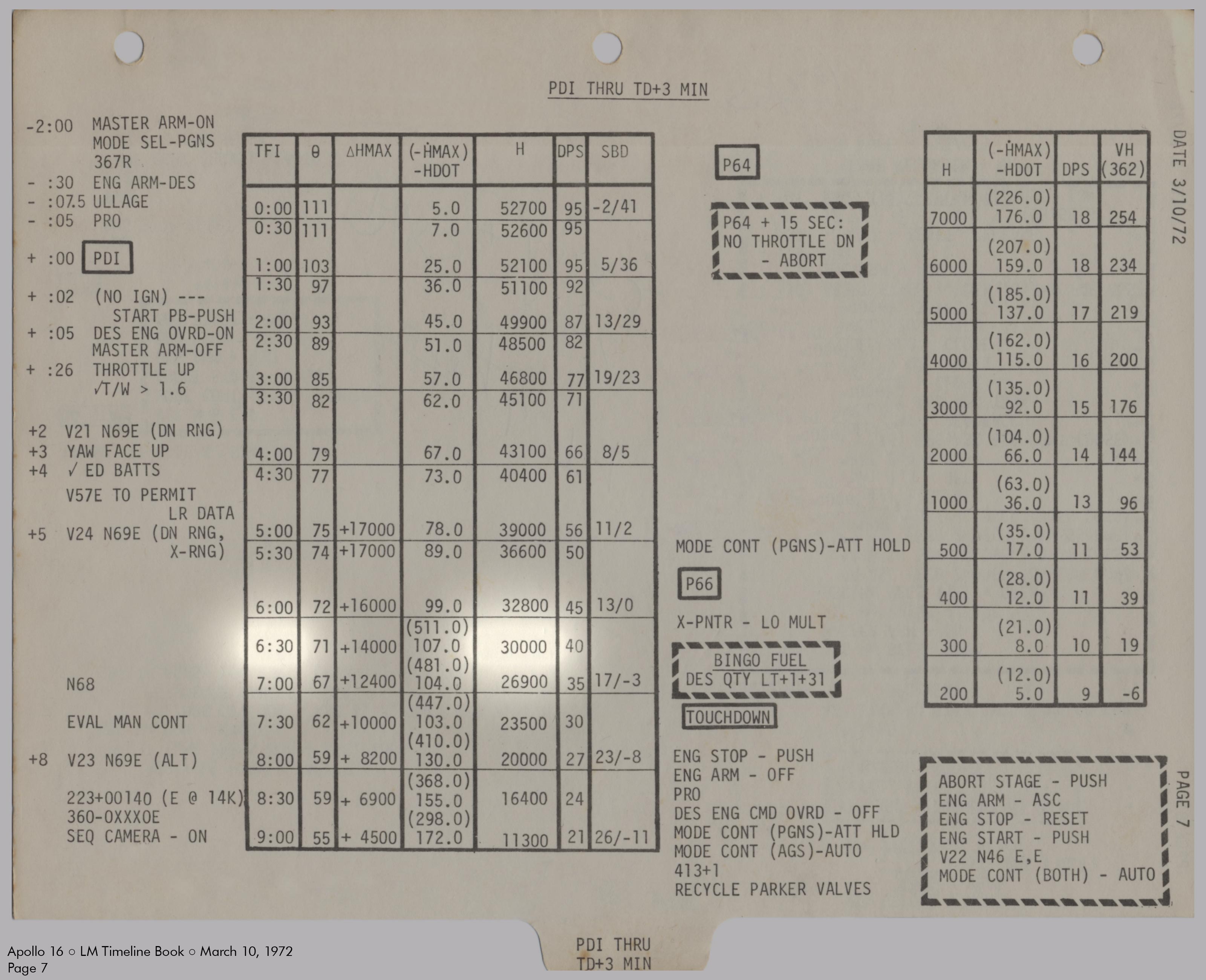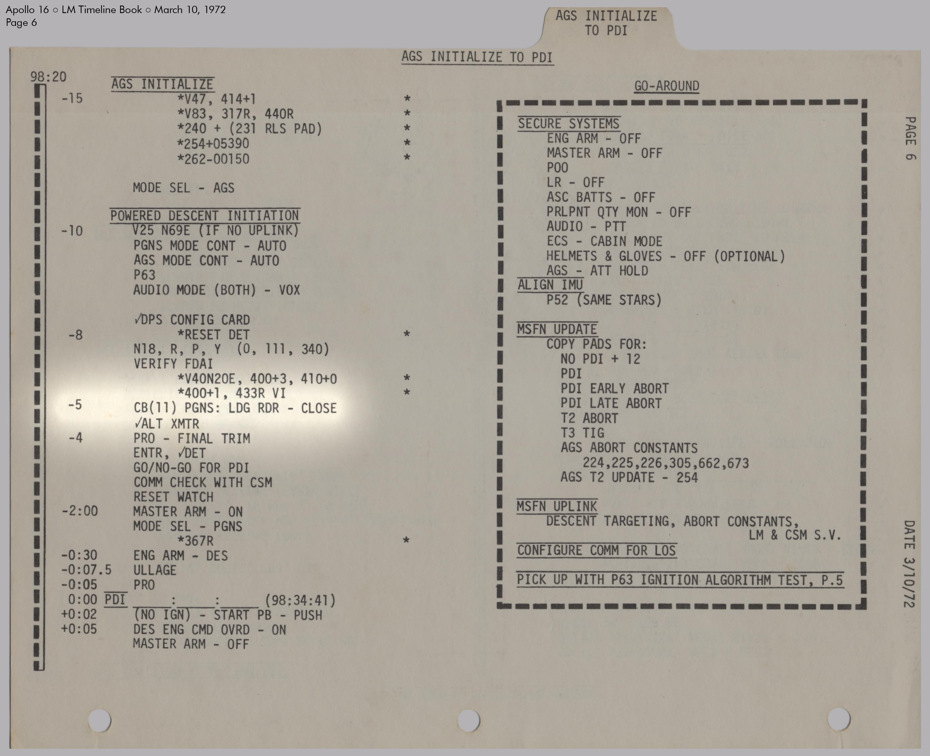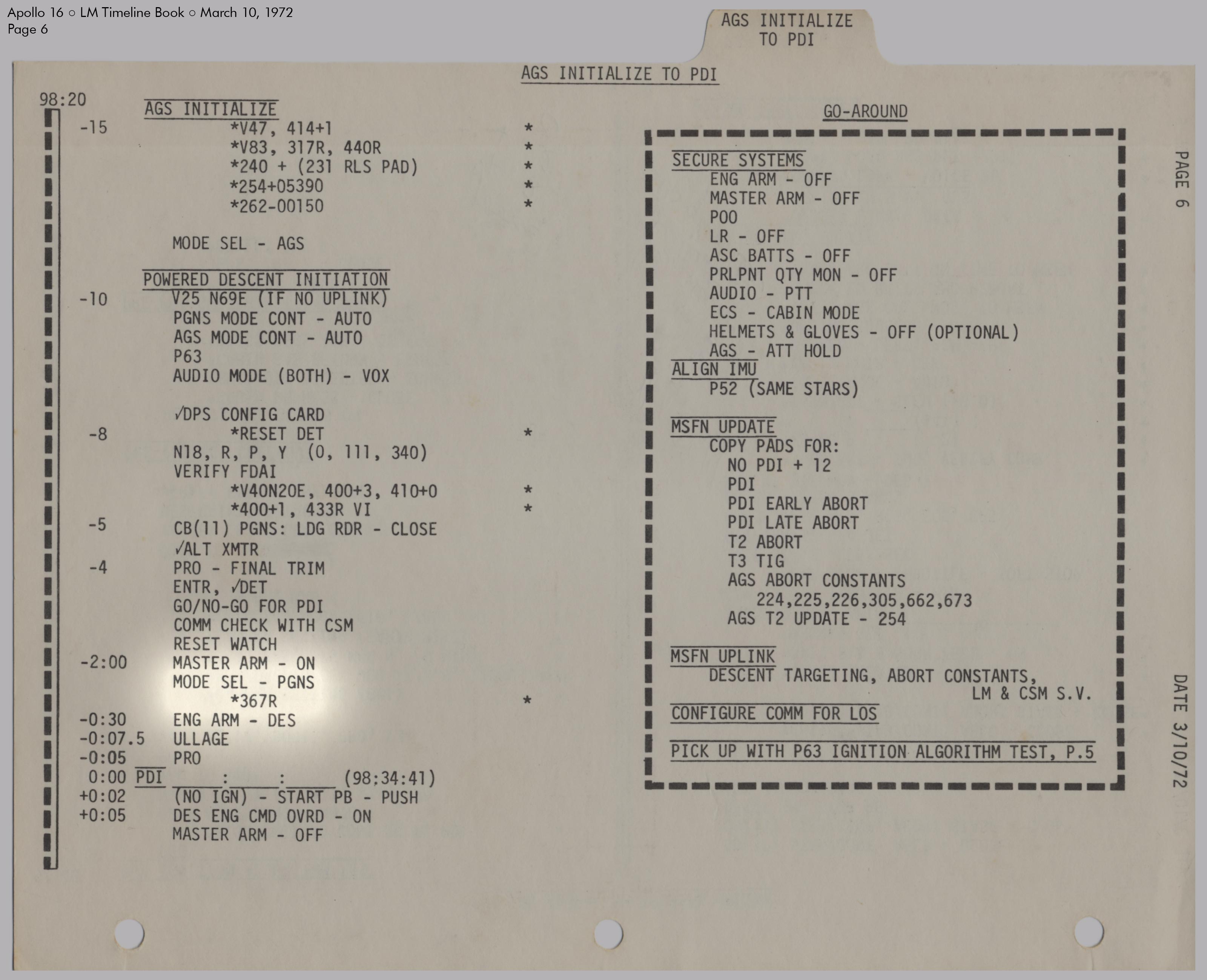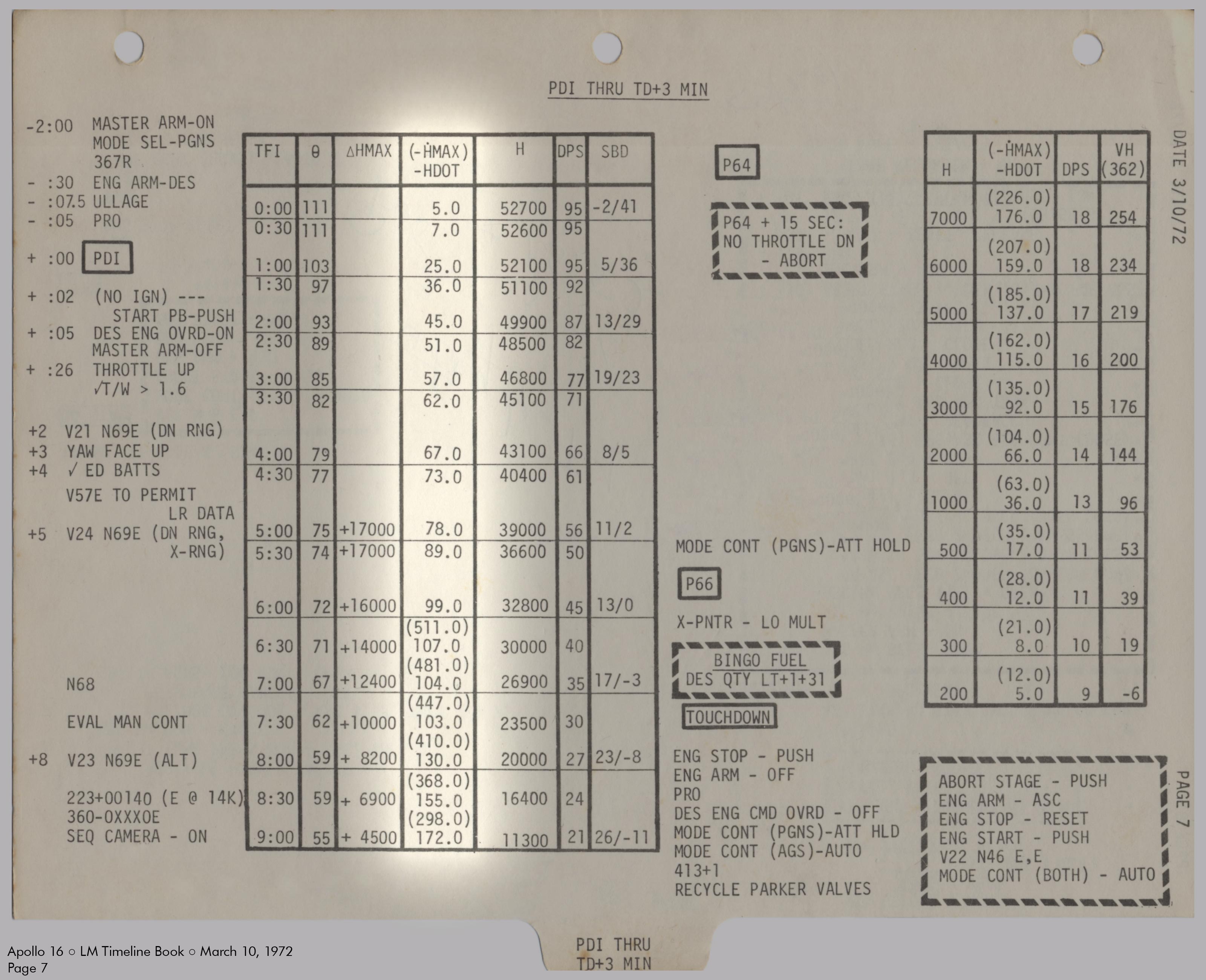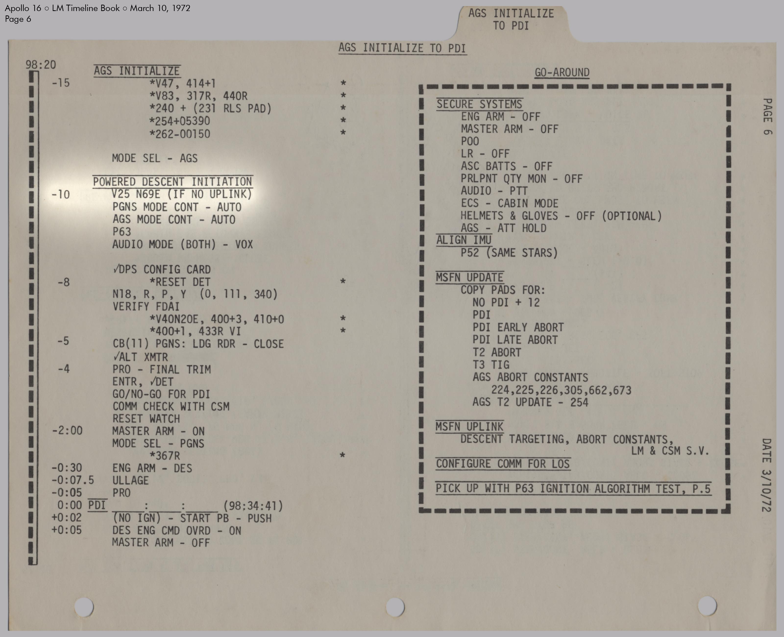 LMLunar Module schlug in ihrer Checkliste den Abschnitt für das abgesagte Landemanöver auf und konfigurierte die Systeme für den Flug im Orbit.