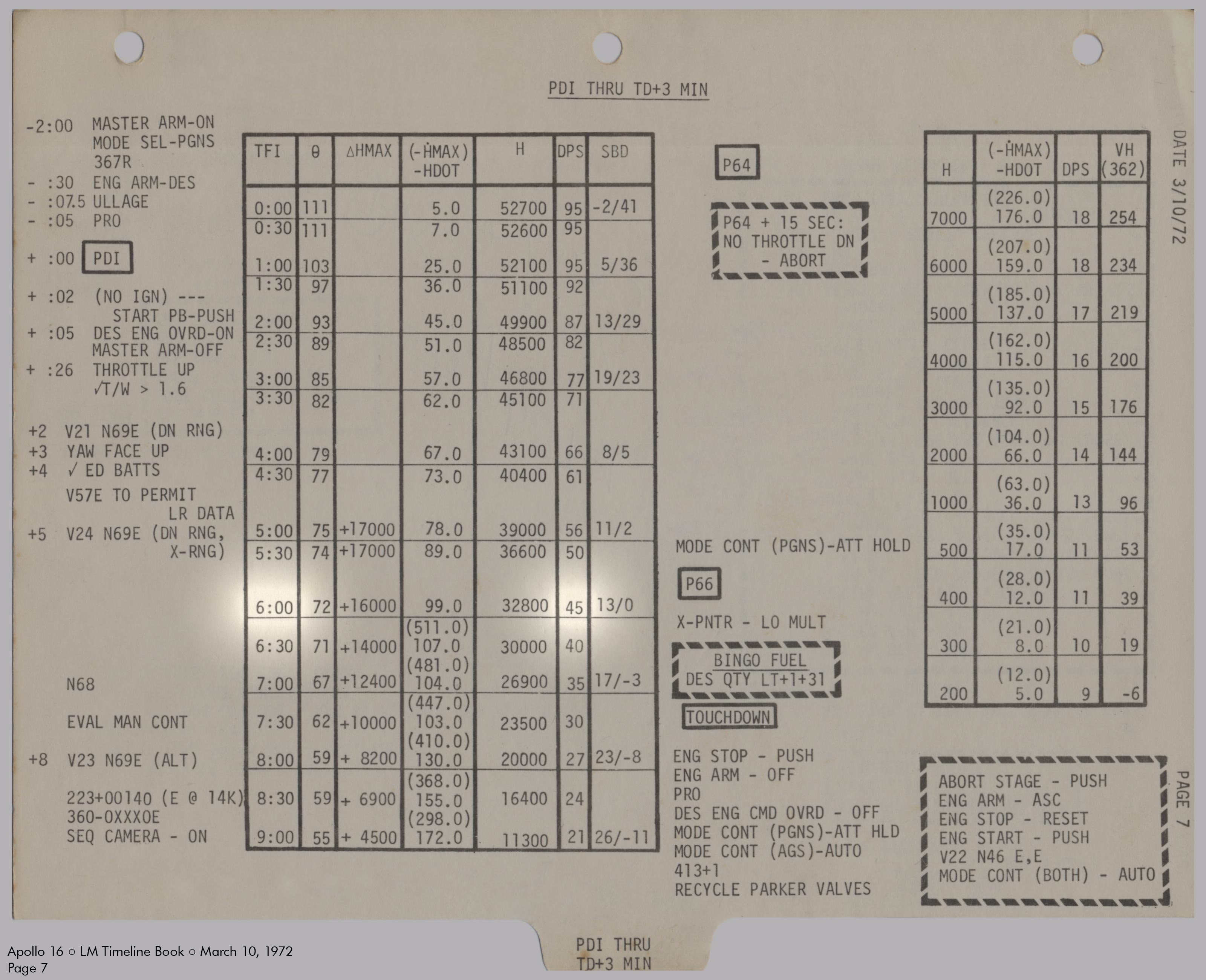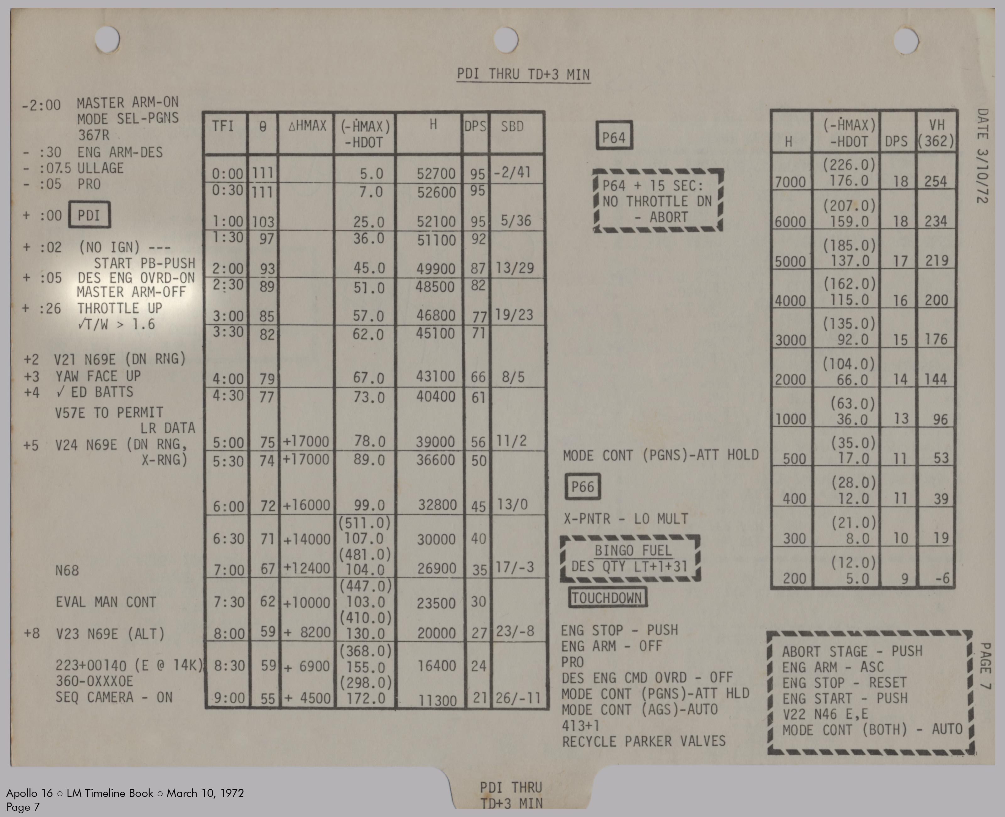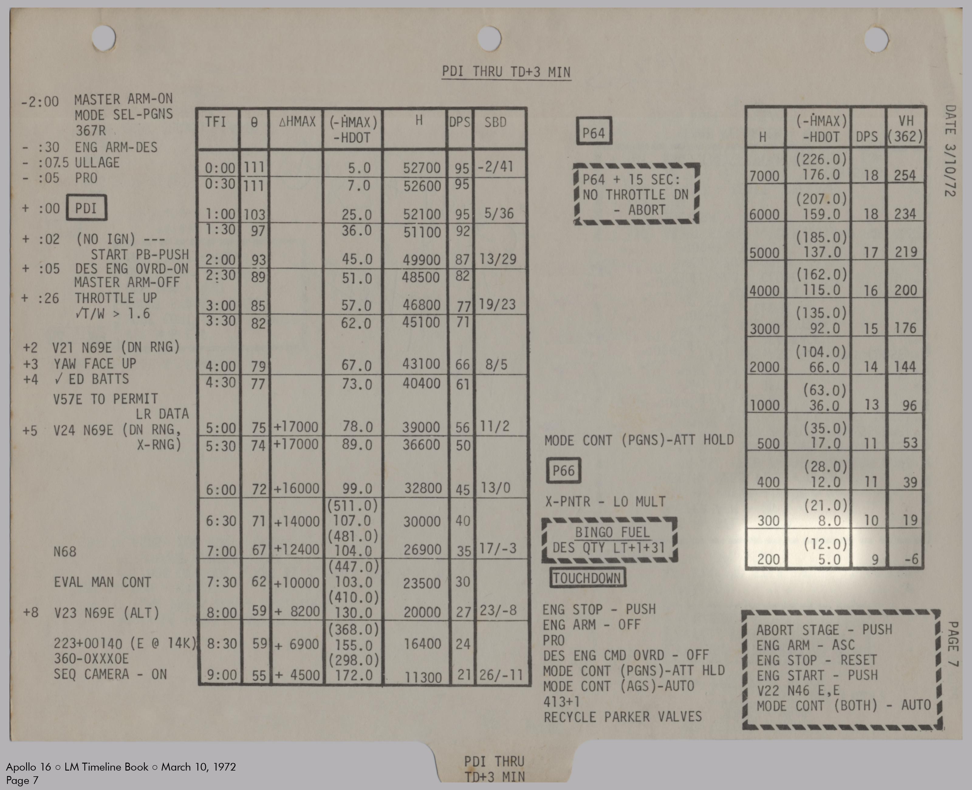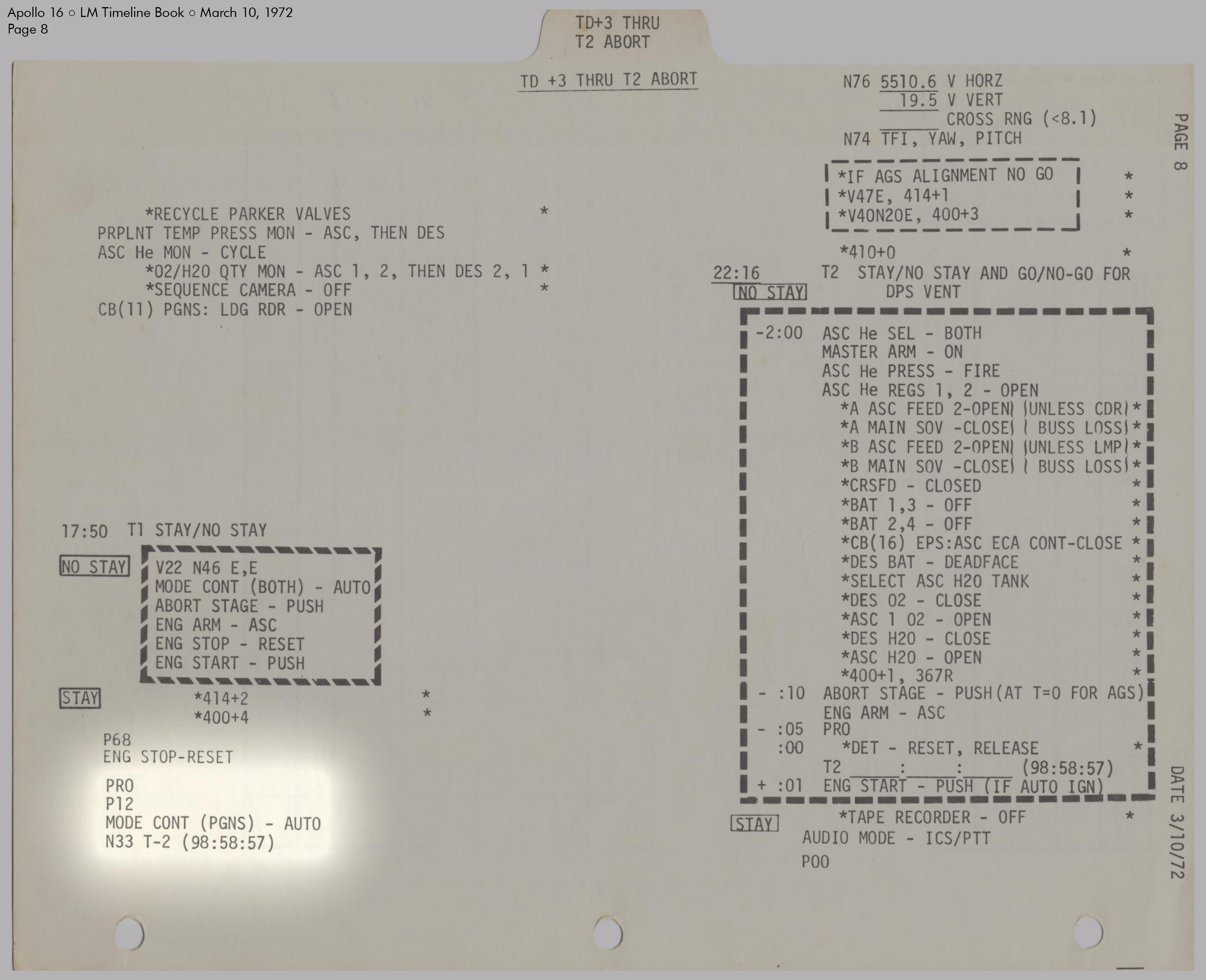 LMLunar Module schlug in ihrer Checkliste den Abschnitt für das abgesagte Landemanöver auf und konfigurierte die Systeme für den Flug im Orbit.