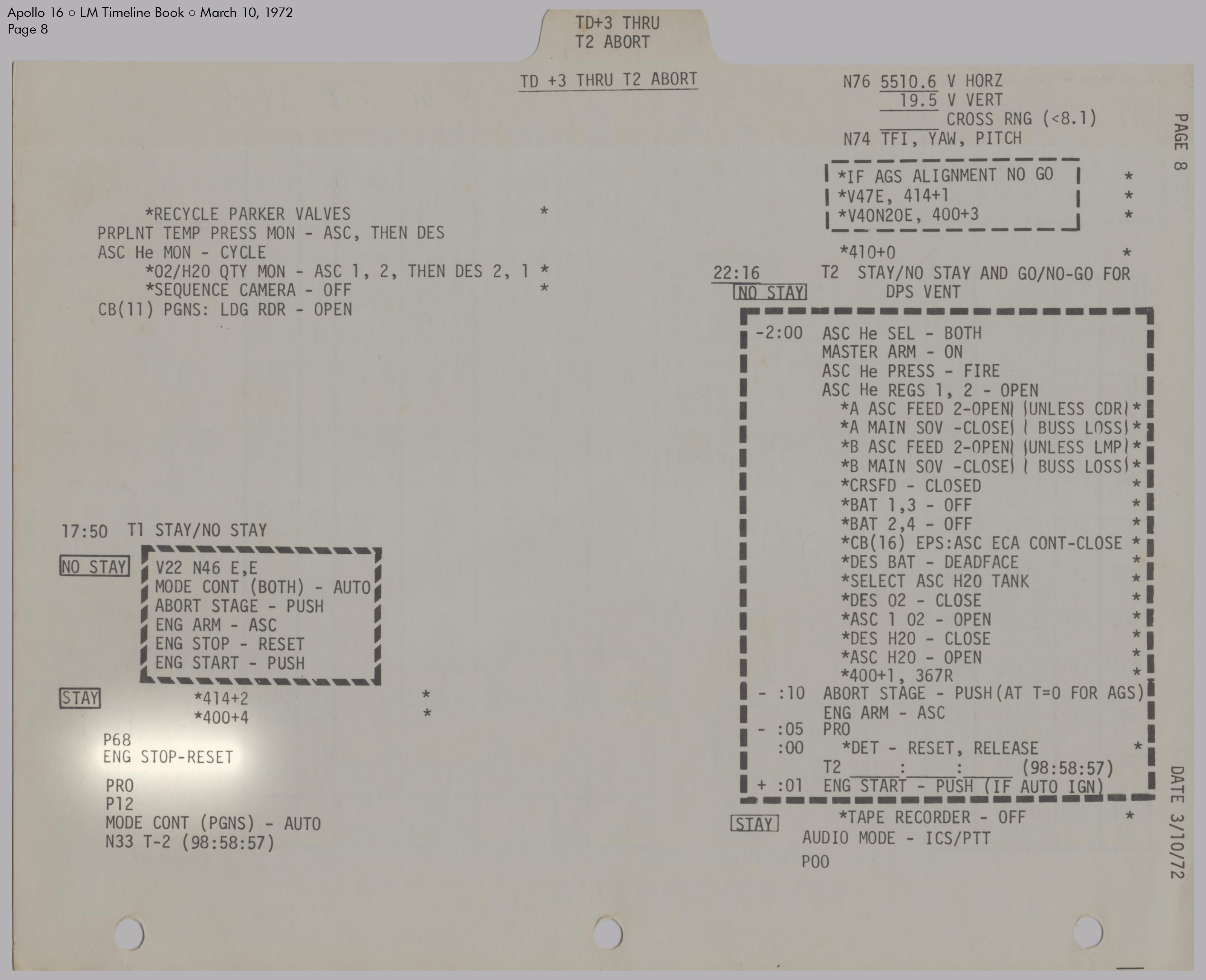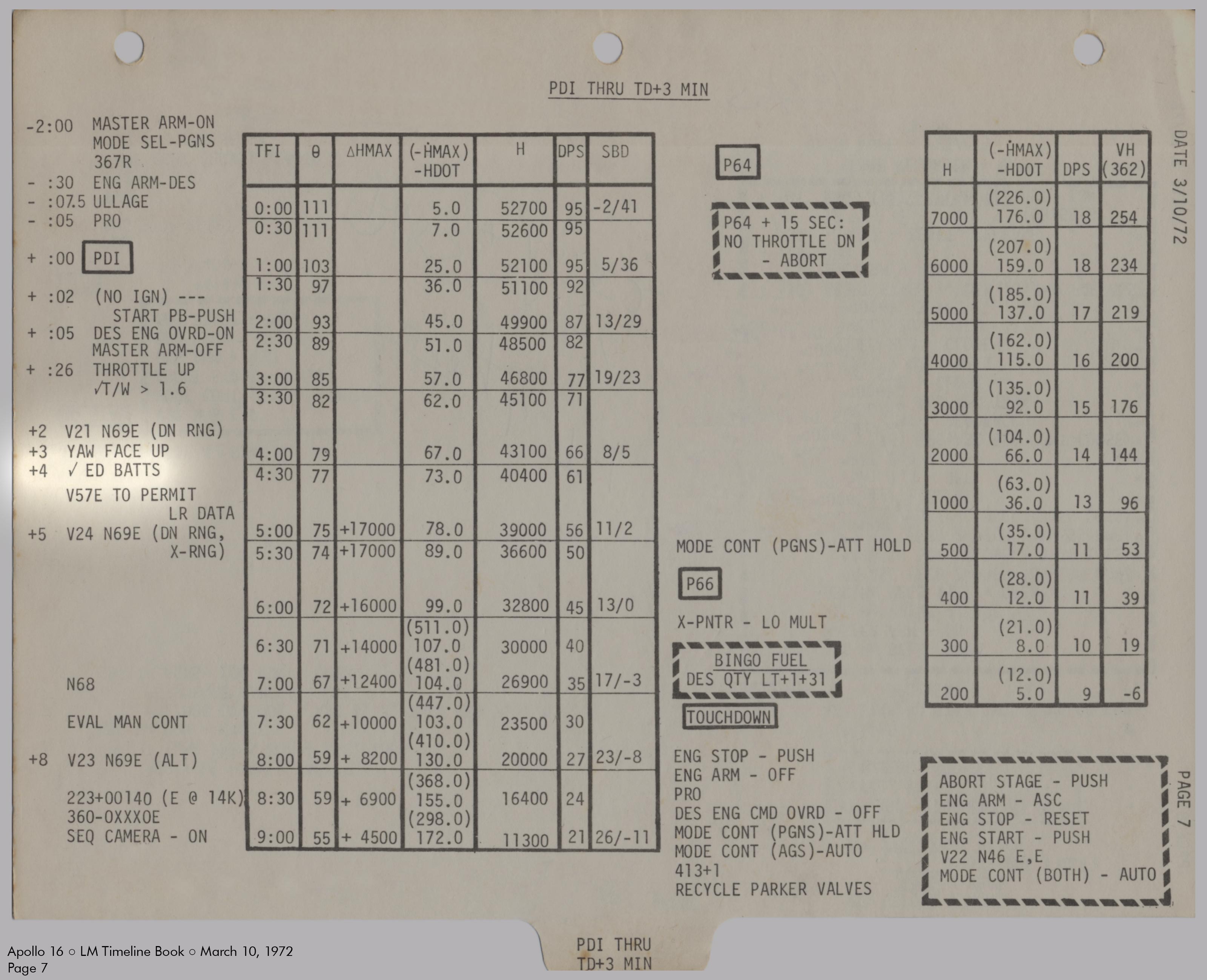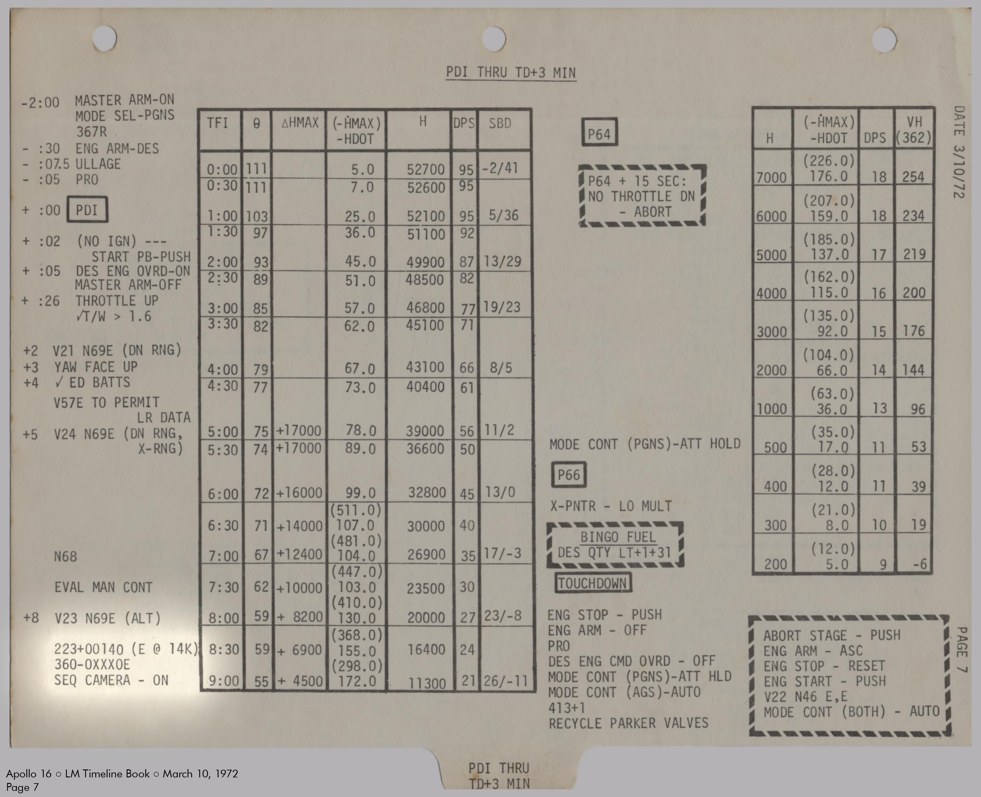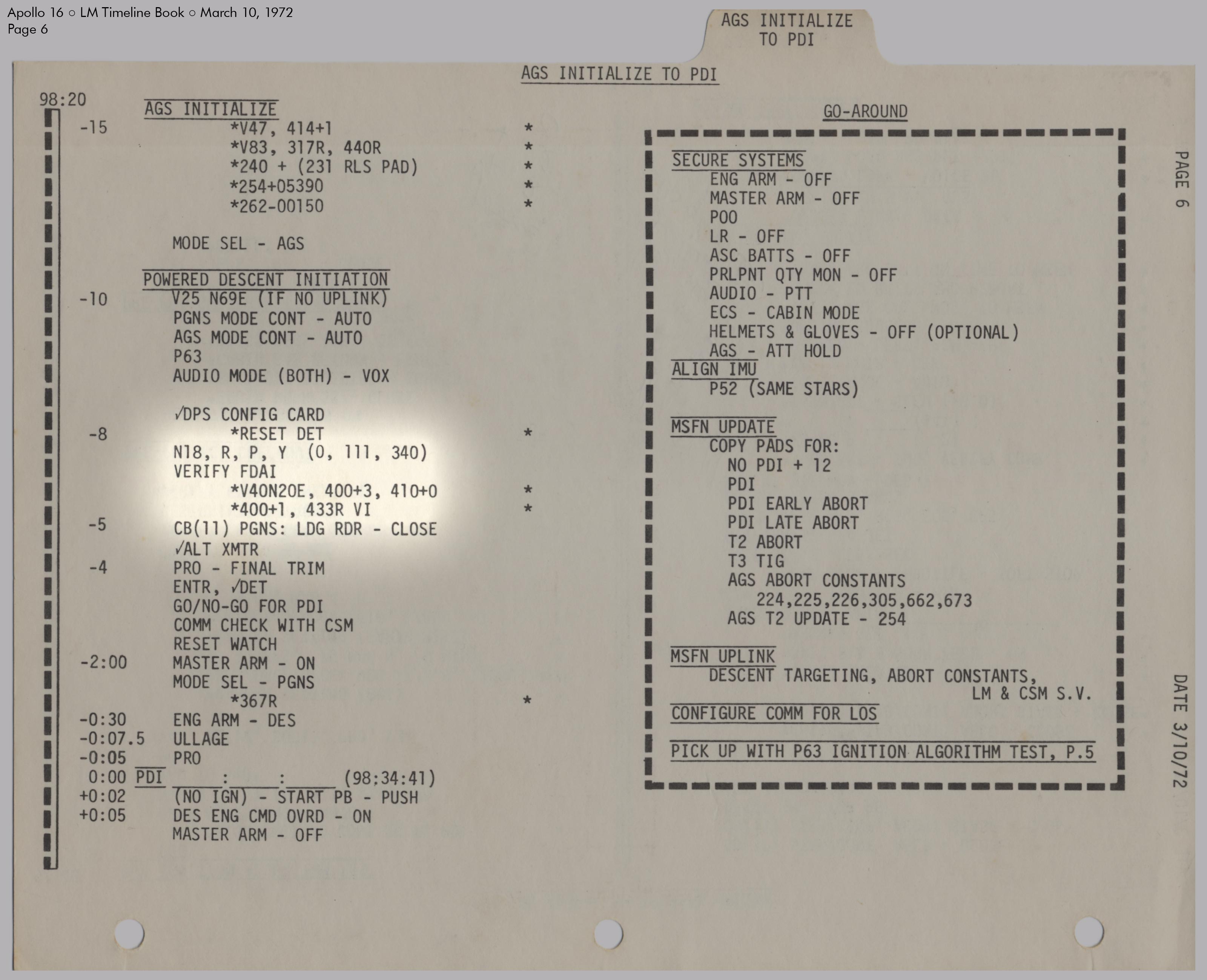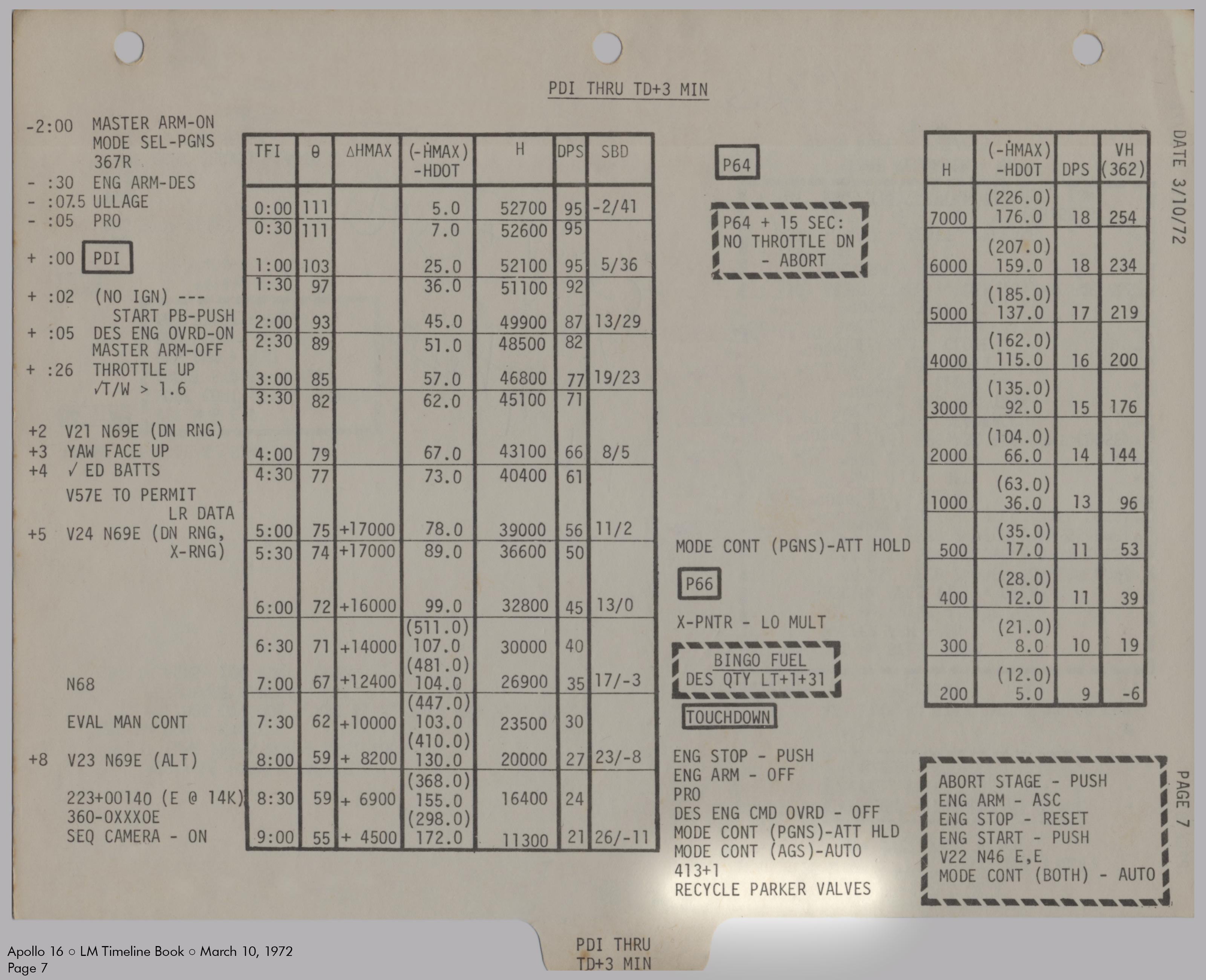 LMLunar Module schlug in ihrer Checkliste den Abschnitt für das abgesagte Landemanöver auf und konfigurierte die Systeme für den Flug im Orbit.