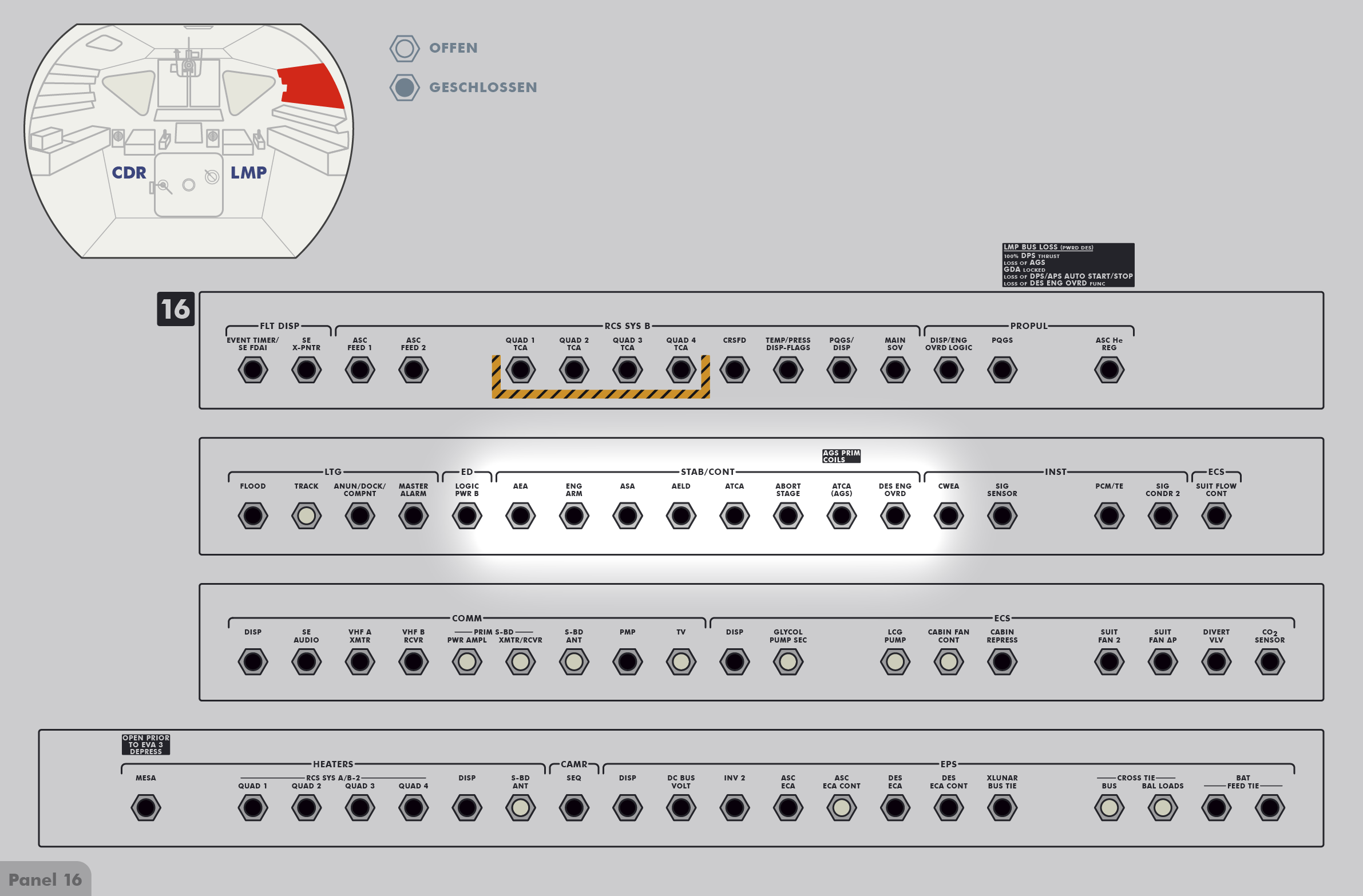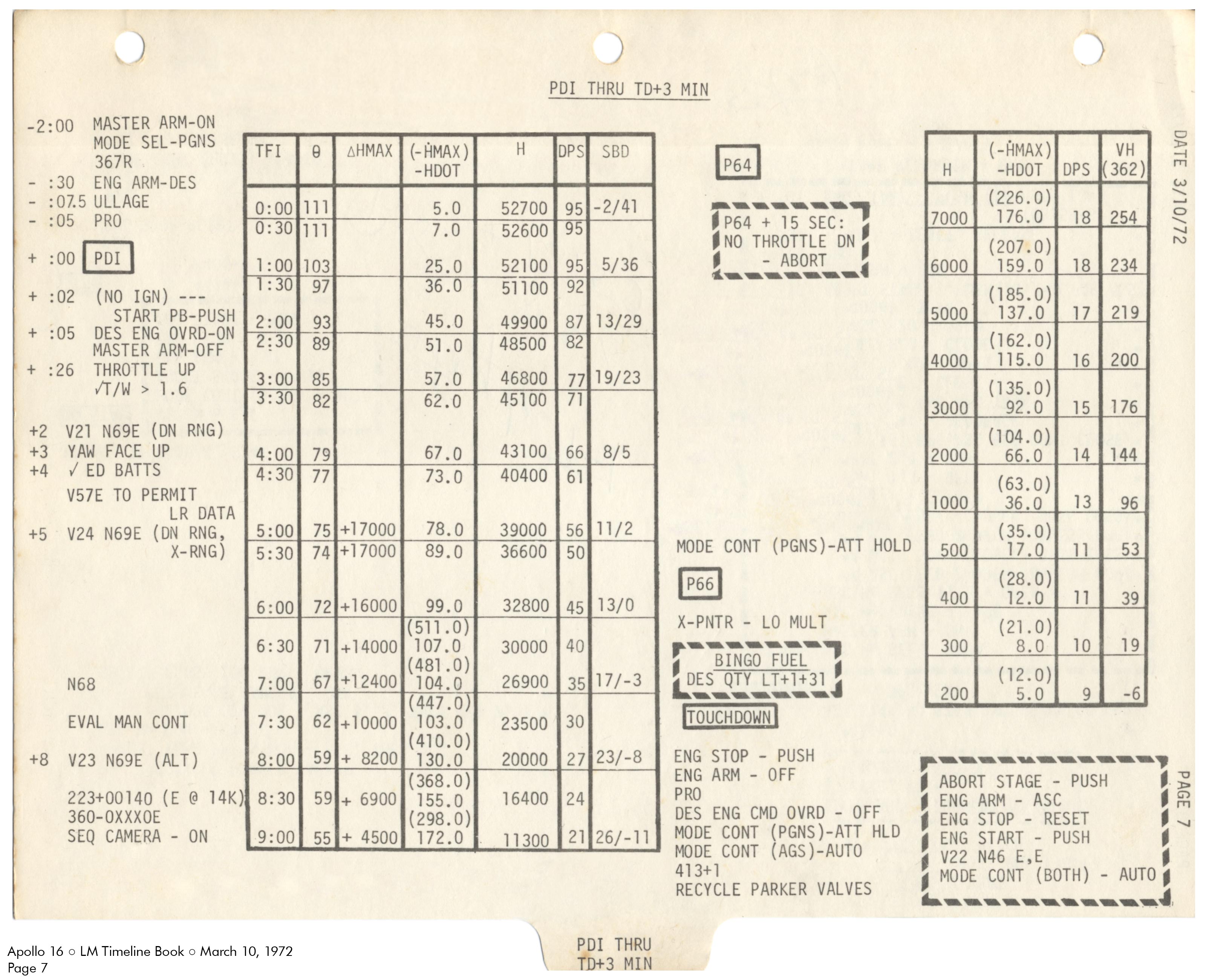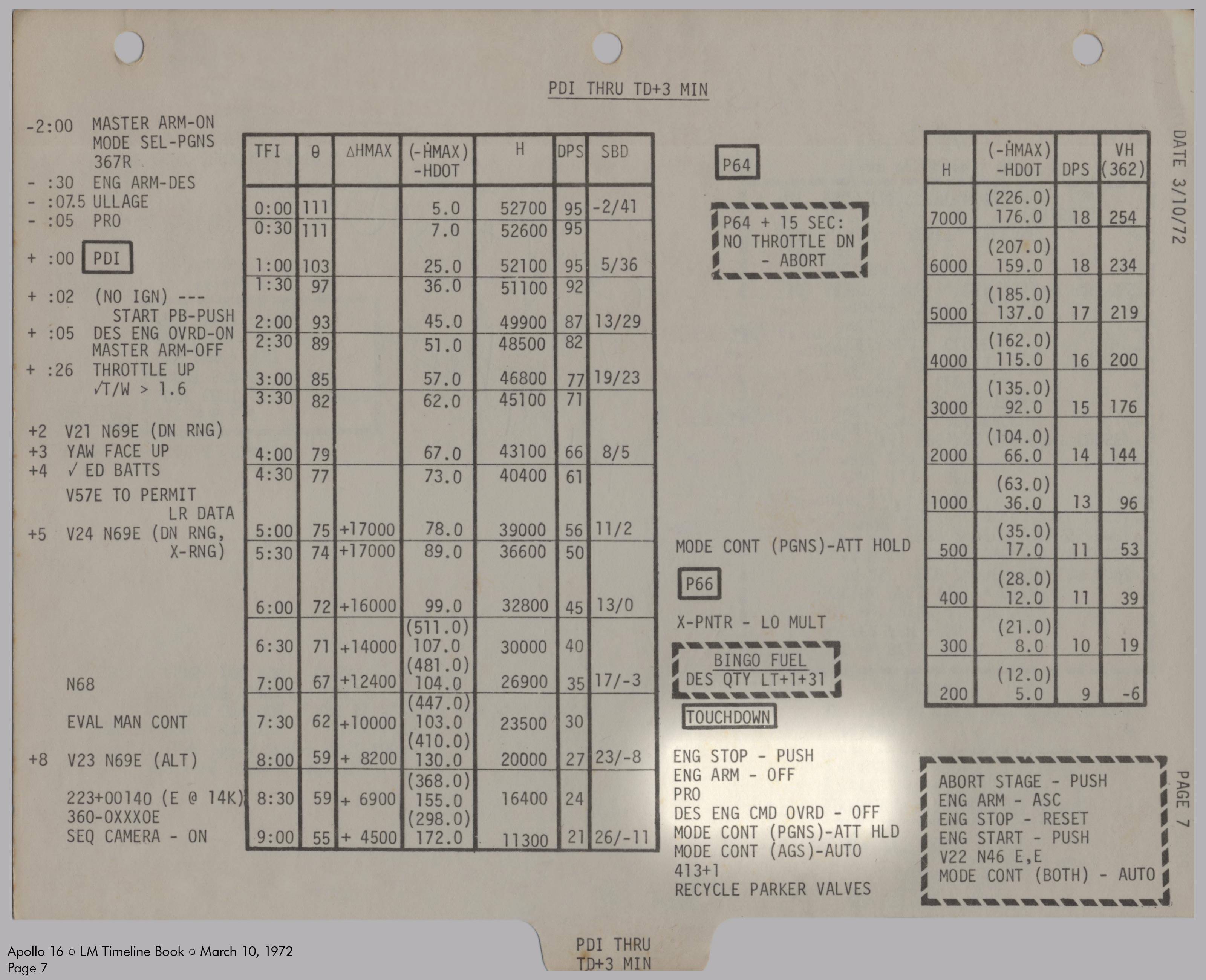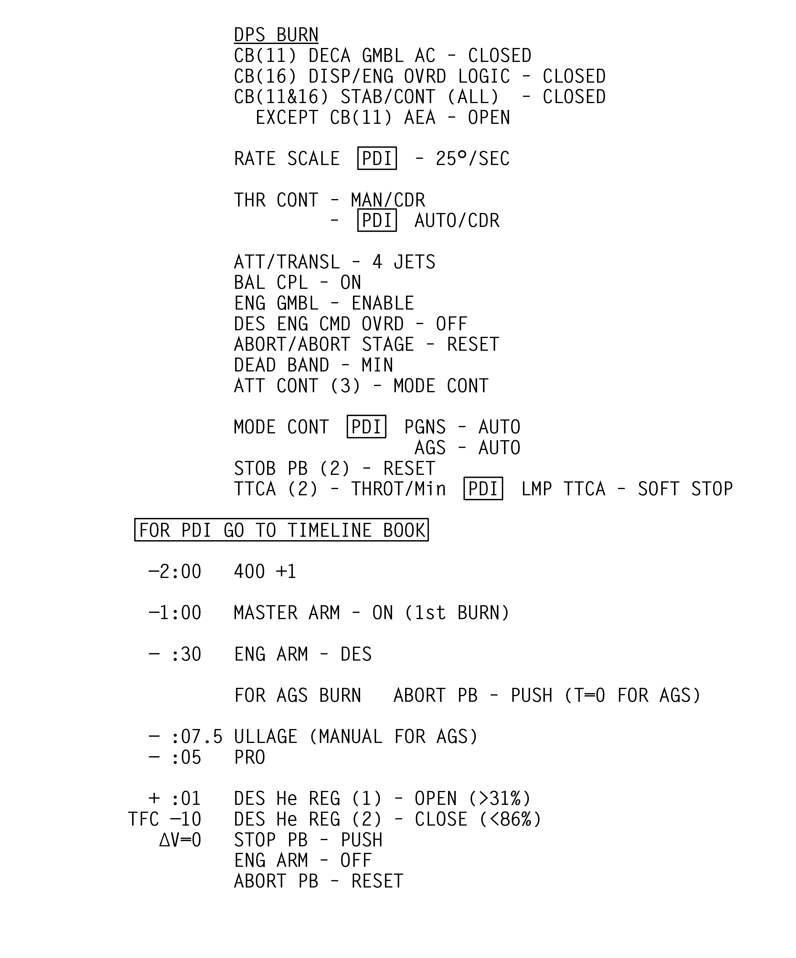 LMLunar Module schlug in ihrer Checkliste den Abschnitt für das abgesagte Landemanöver auf und konfigurierte die Systeme für den Flug im Orbit.