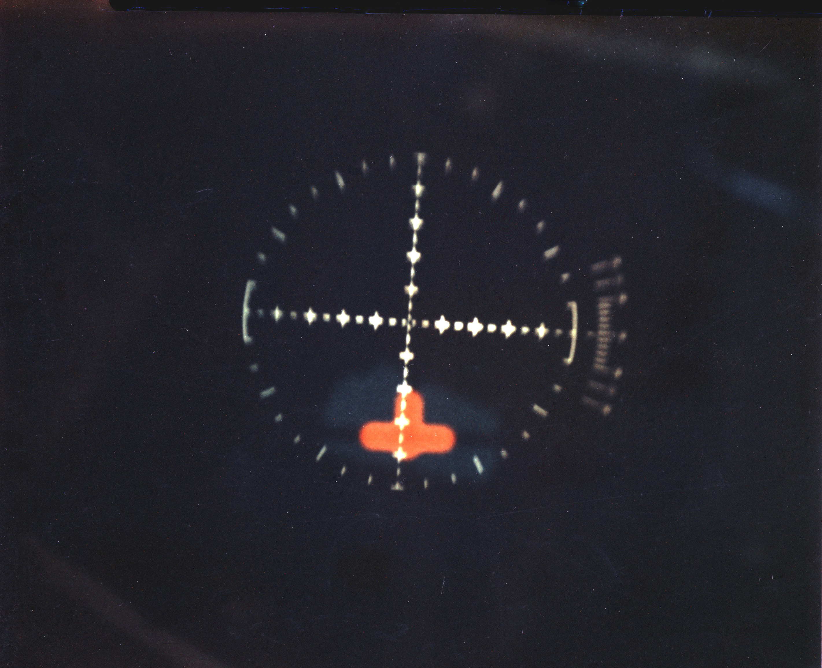 The COAS provides the Commander with gross range cues and closing rate cues during the docking maneuver. The closing operation, from 150 feet to contact, is an ocular, kinesthetic coordination that requires control with minimal use of fuel and time. The COAS provides the Commander with a fixed line-of-sight attitude reference image, which appears to be the same distance away as the target.