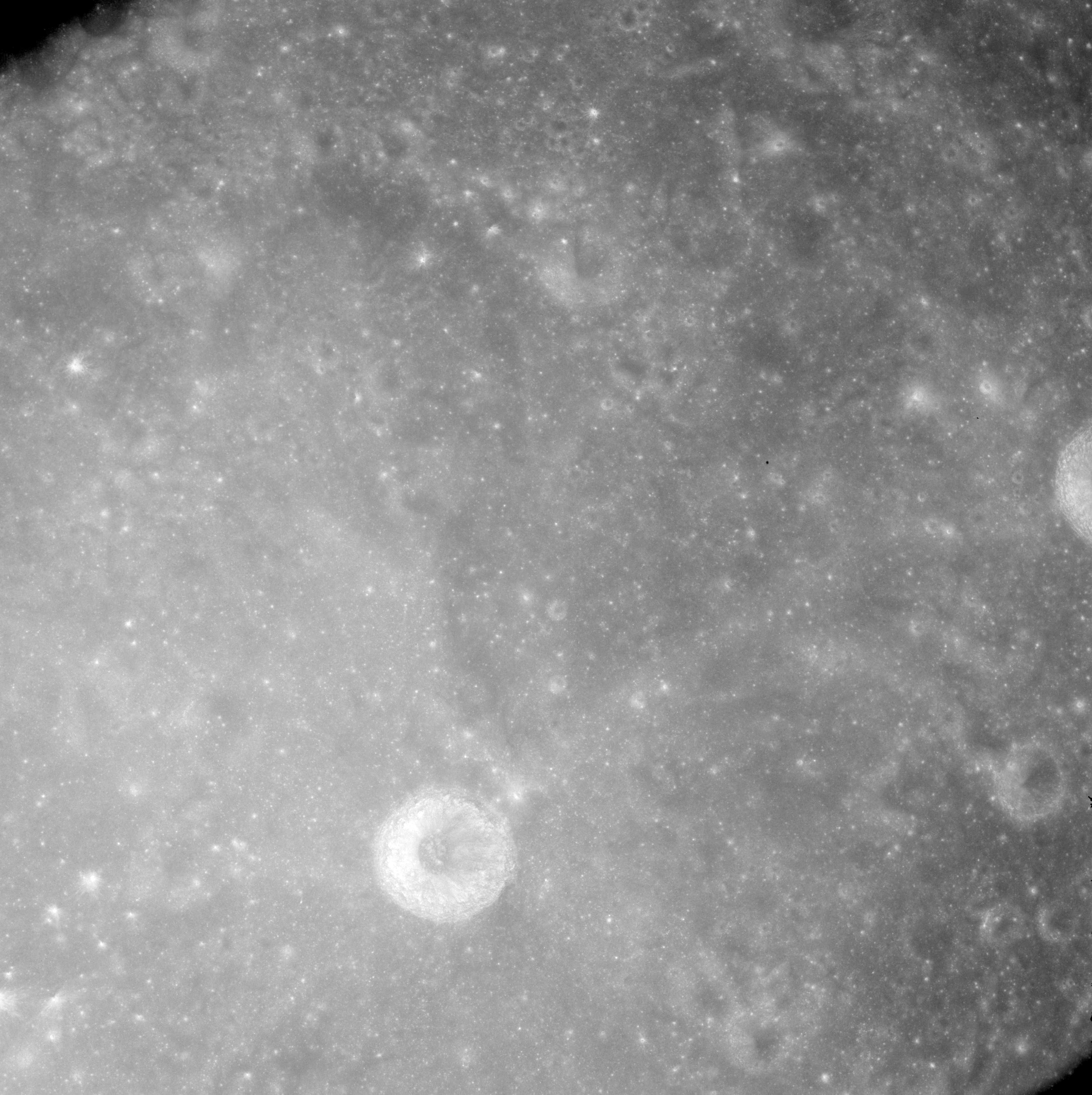 075:46:47 Anders (onboard): The impact crater was at - just prior to subsolar point on the south side, in the floor of it, [garble] - There is one dark hole, and I couldn't get a quick enough look at it to see if it might be anything volcanic.